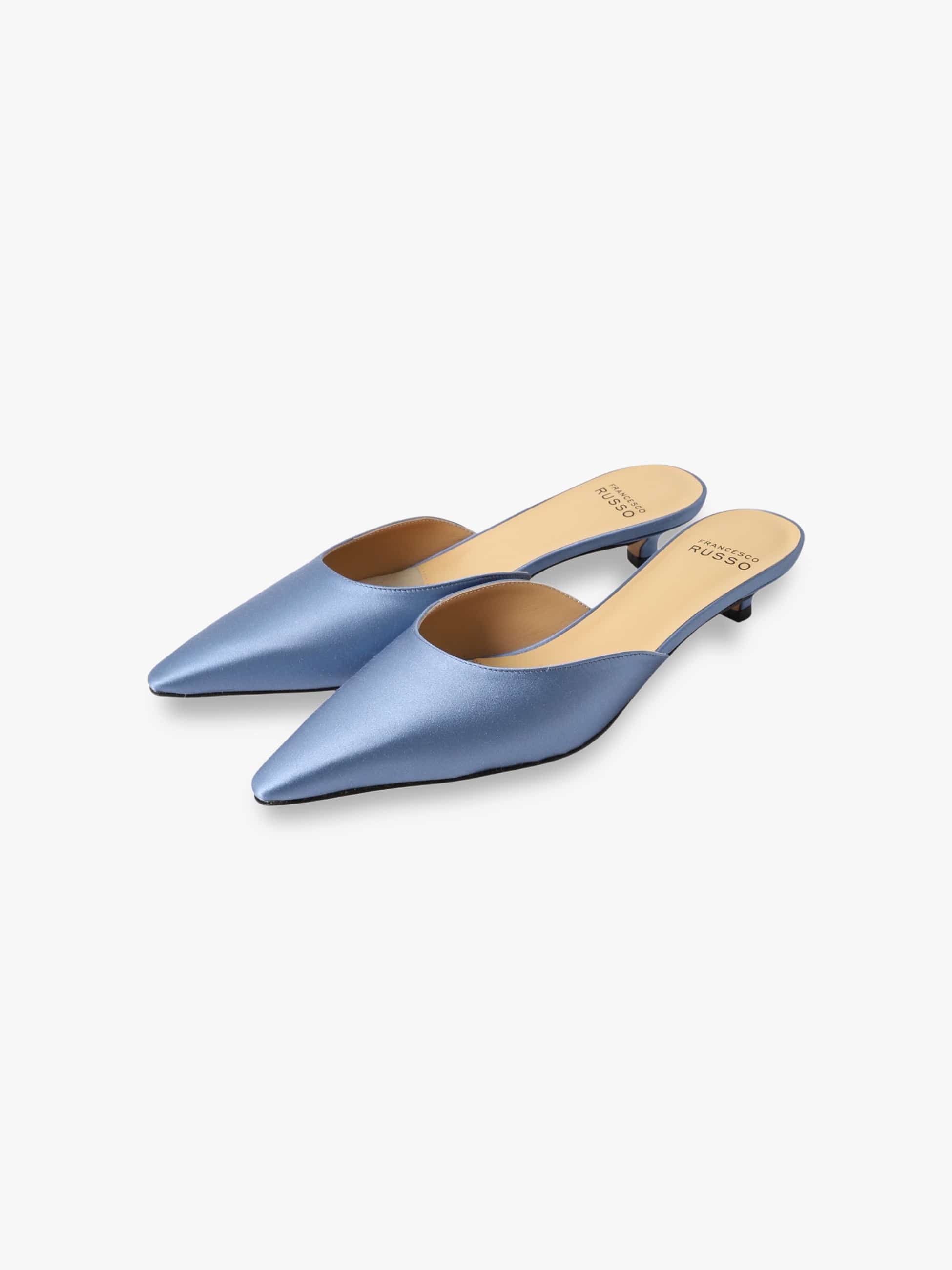- 昨シーズンに好評いただいたヒールミュール「Kitten」を、26SSシーズンはモカブラウンとダスティブルーでカラー別注しました。存在感を醸すヒールミュールは、カジュアルなスタイリングから、ドレスまで幅広いスタイリングに映える1足で、足元に華やかさと上品さをプラスします。Francesco Russoらしい美しいフォルムと馴染みのよい履き心地をぜひお楽しみください。