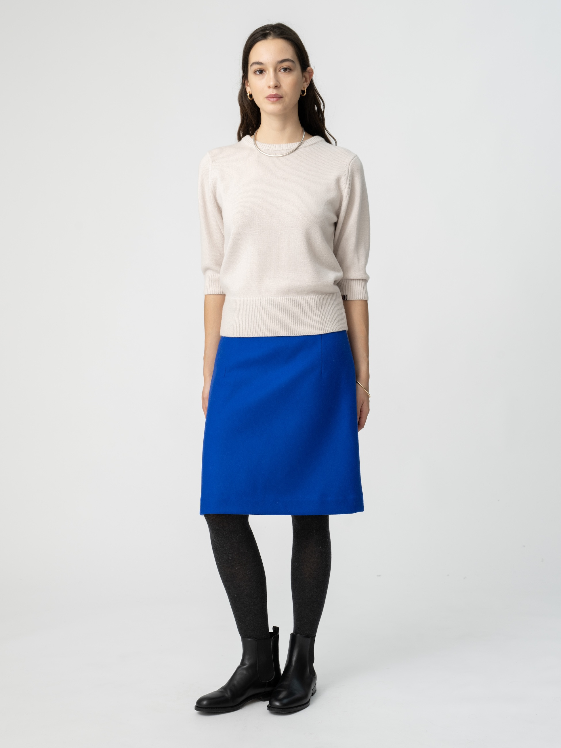 上質なカシミア素材を100%贅沢に使用したニットトップス"well lumb"です。贅沢な厚手のニットで作られた1着で、ヒジまである長めの袖と、フィット感のあるリブデザインがポイントに。どんなボトムスとも好相性です。