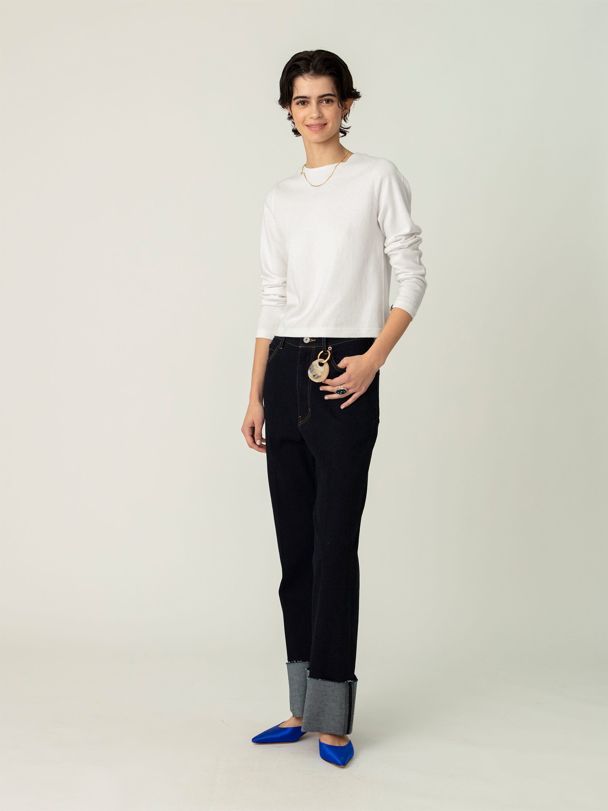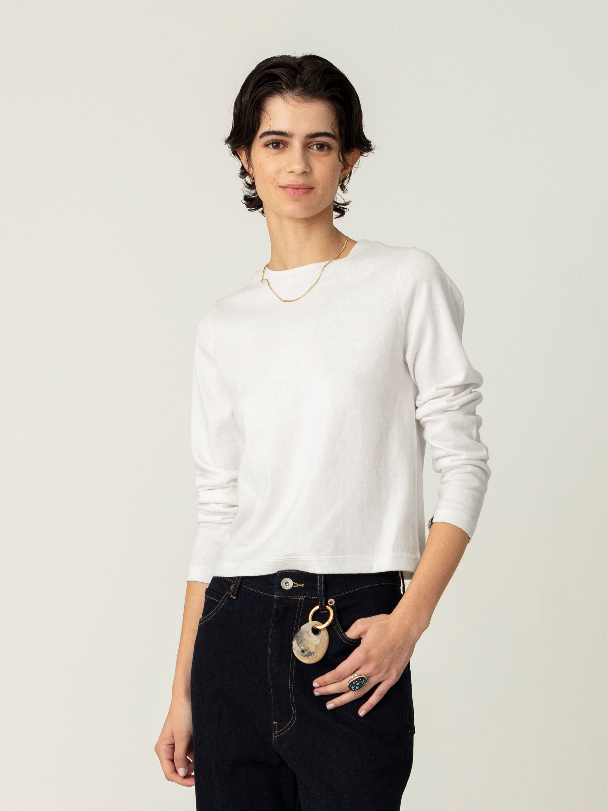 コットンカシミア混紡素材を使用したベーシックな長袖Tシャツ"lisa"は、ボトムを選ばない汎用性の高いシルエットと通気性の良さが特徴です。extreme cashmereらしい滑らかで心地良い肌触りを堪能いただけます。extreme cashmereのさまざまなアイテムを自由に組み合わせて、レイヤードスタイルをお楽しみください。