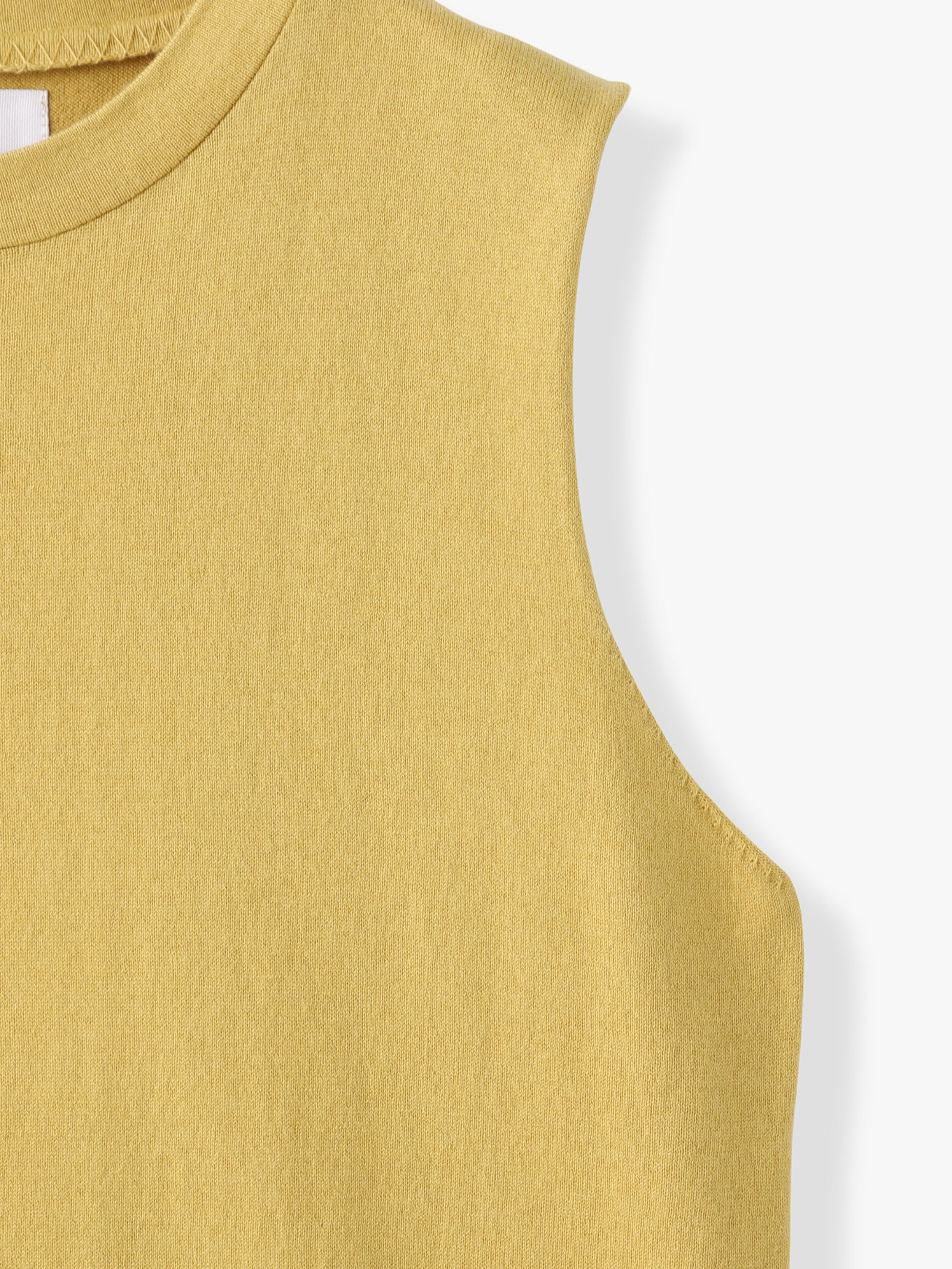 コットンカシミア混紡素材を使用したベーシックなスリーブレストップス"Player"は、ボトムを選ばない汎用性の高いシルエットと通気性の良さが特徴です。extreme cashmereらしい滑らかで心地良い肌触りを堪能いただけます。extreme cashmereのさまざまなアイテムを自由に組み合わせて、レイヤードスタイルをお楽しみください。