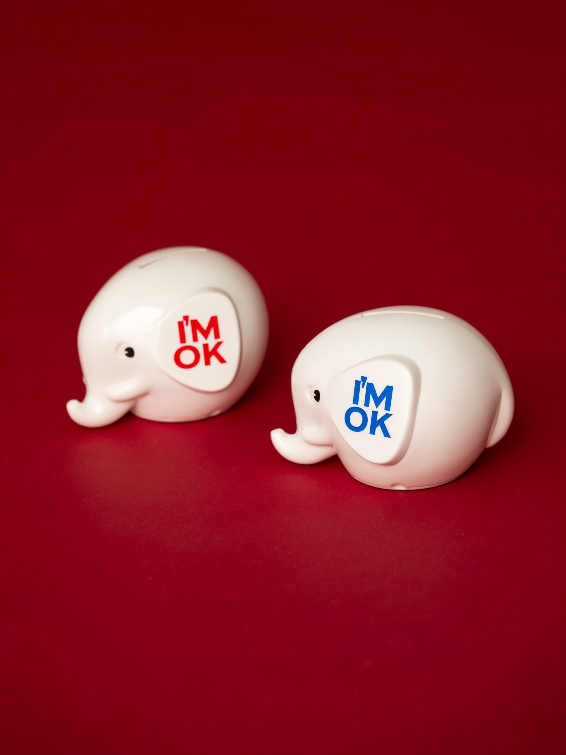 - ホワイトベースのエレファントに、I'MOK / Ron Hermanのコーポレートカラーをプリントした特別仕様の別注バンク。ホリデー限定のホワイトカラーで、インテリアとしても空間に馴染むデザインです。北欧で幸運の象徴とされるゾウのモチーフが、毎日の暮らしにさりげない幸せを添えます。クリスマスや季節の贈り物にもぴったりのアイテムです。