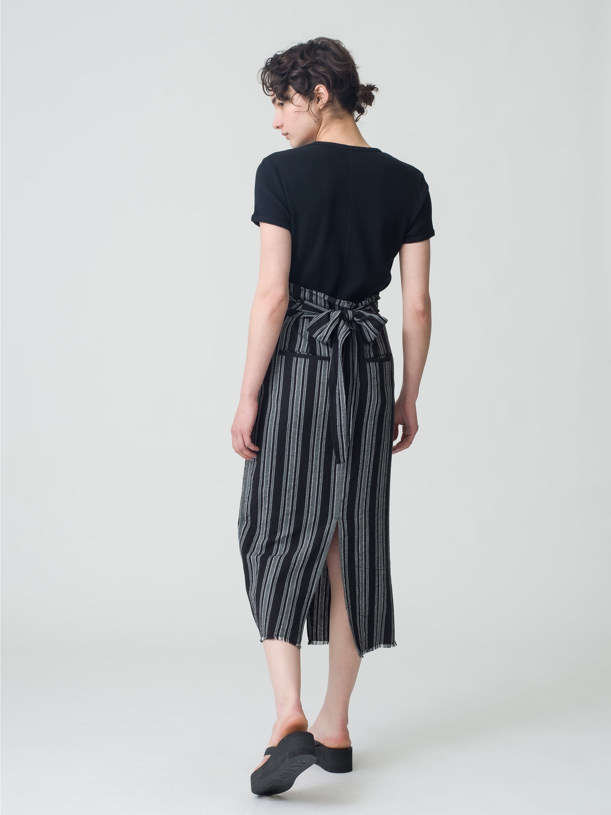 - RHC ロンハーマンで以前ご好評いただいたタイパンツのウエストディテールをスカートに落とし込みました。深めのスリットで足さばきが良く、マルチストライプ柄が目を惹く主役級の1本。夏らしいスタイリングをお楽しみいただけます。
