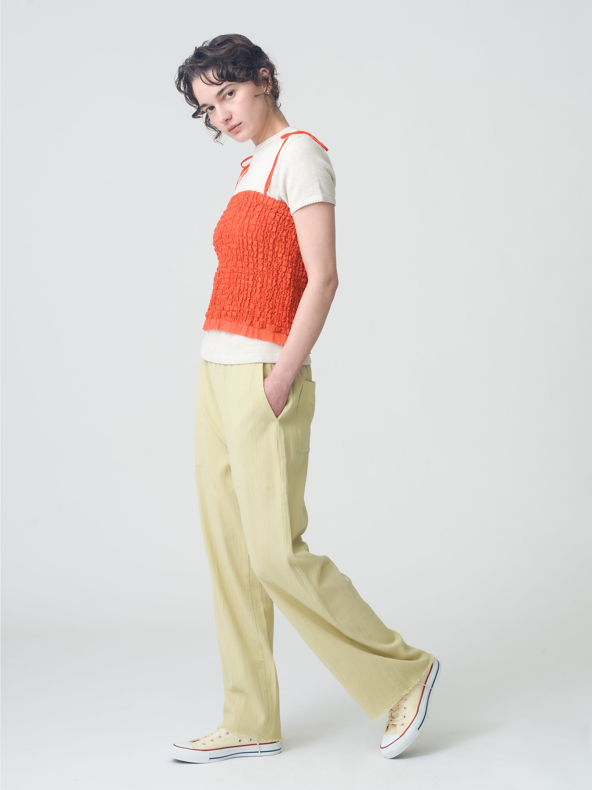 楊柳素材を使用した、夏にぴったりな涼やかな穿き心地のイージーパンツです。ラフな切りっぱなしデザインがアクセントとなり、こなれた印象に。ゆったりとしたシルエットで快適さを追求し、大人のリラックススタイルを上品に演出する1本です。