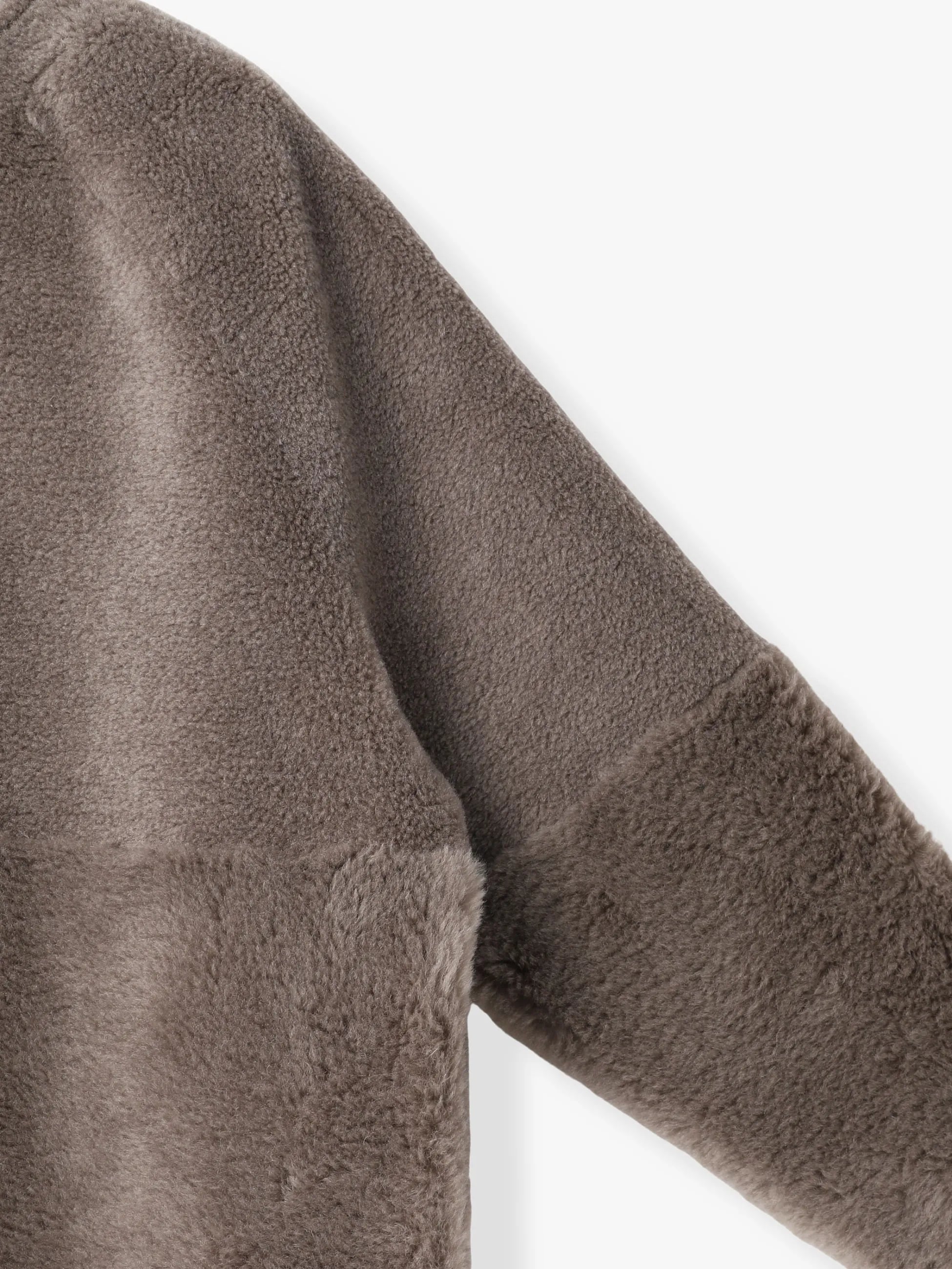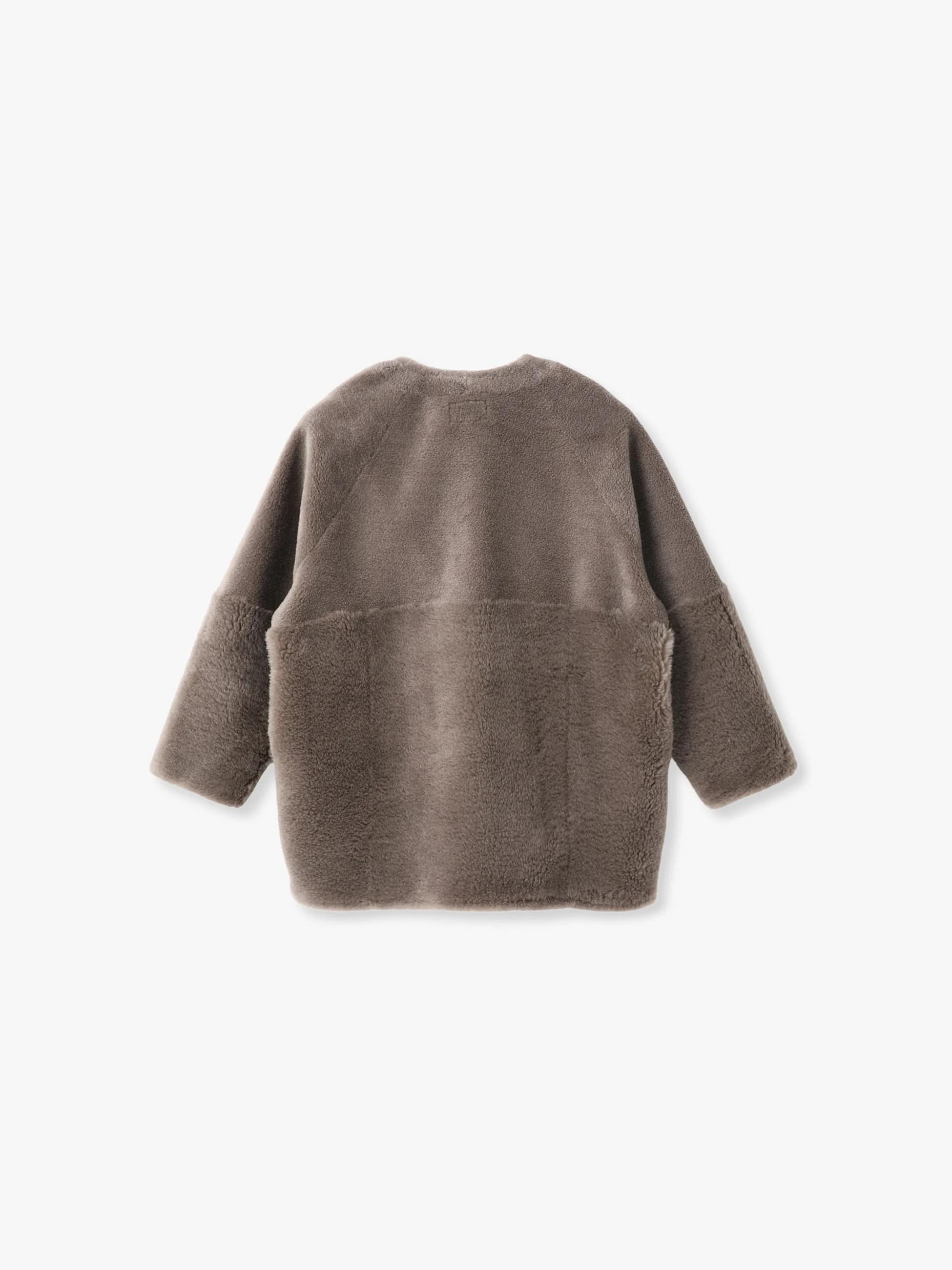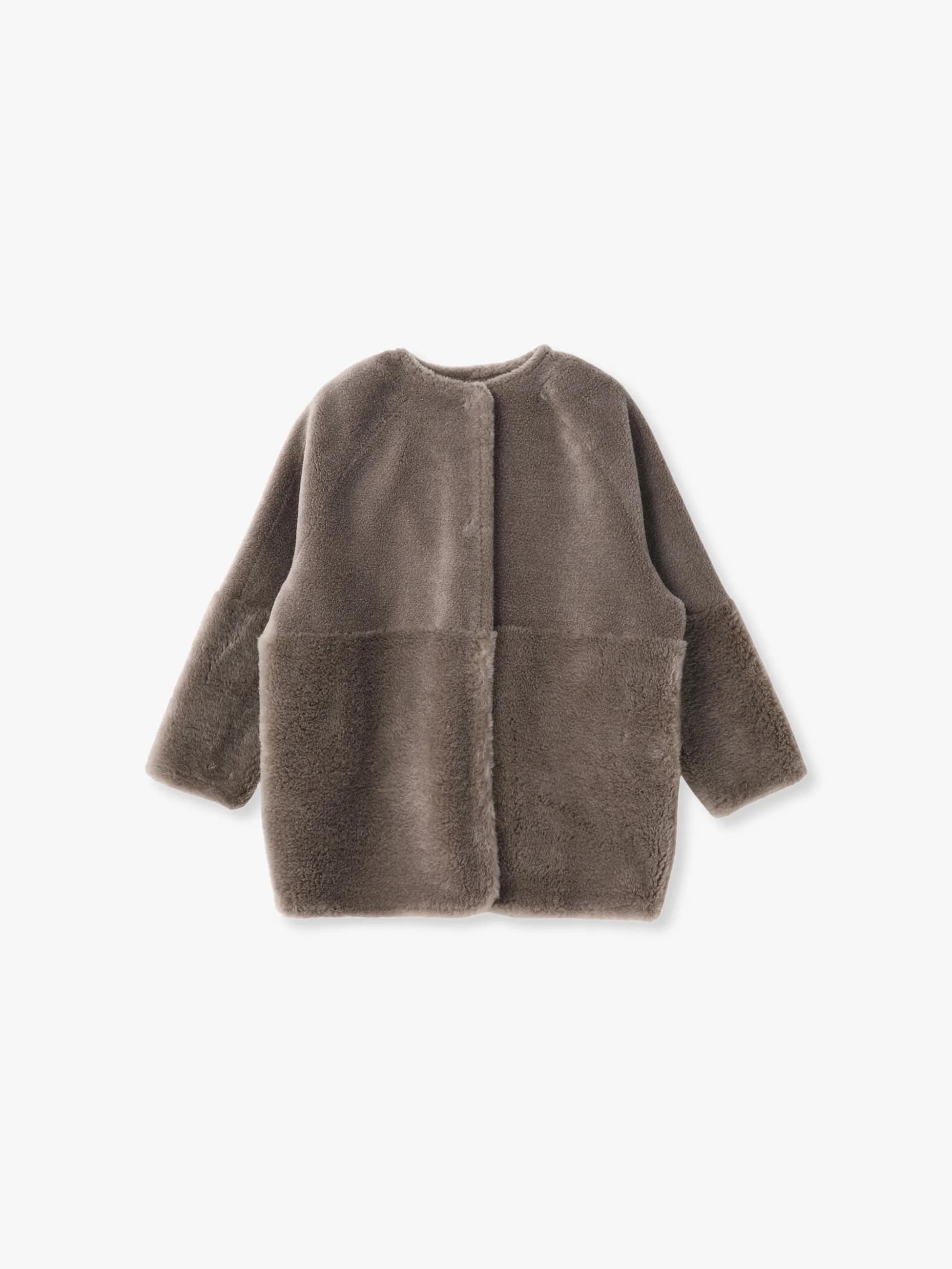 - 保温性の高いウールを贅沢に100%使用したボアジャケットが、25FWシーズンはベージュとチャコールグレーの2色展開で登場です。ミリタリーライナーのシルエットをベースに、フロントはボタン仕様でシンプルに、女性らしさのあるデザインにアレンジしています。見た目にもあたたかく軽い着心地で、毛足の長さの異なる2種類の生地がコーディネートのアクセントに。デニムと合わせてカジュアルに、ドレスと合わせてエレガントに、様々なコーディネートにマッチするアイテムです。
