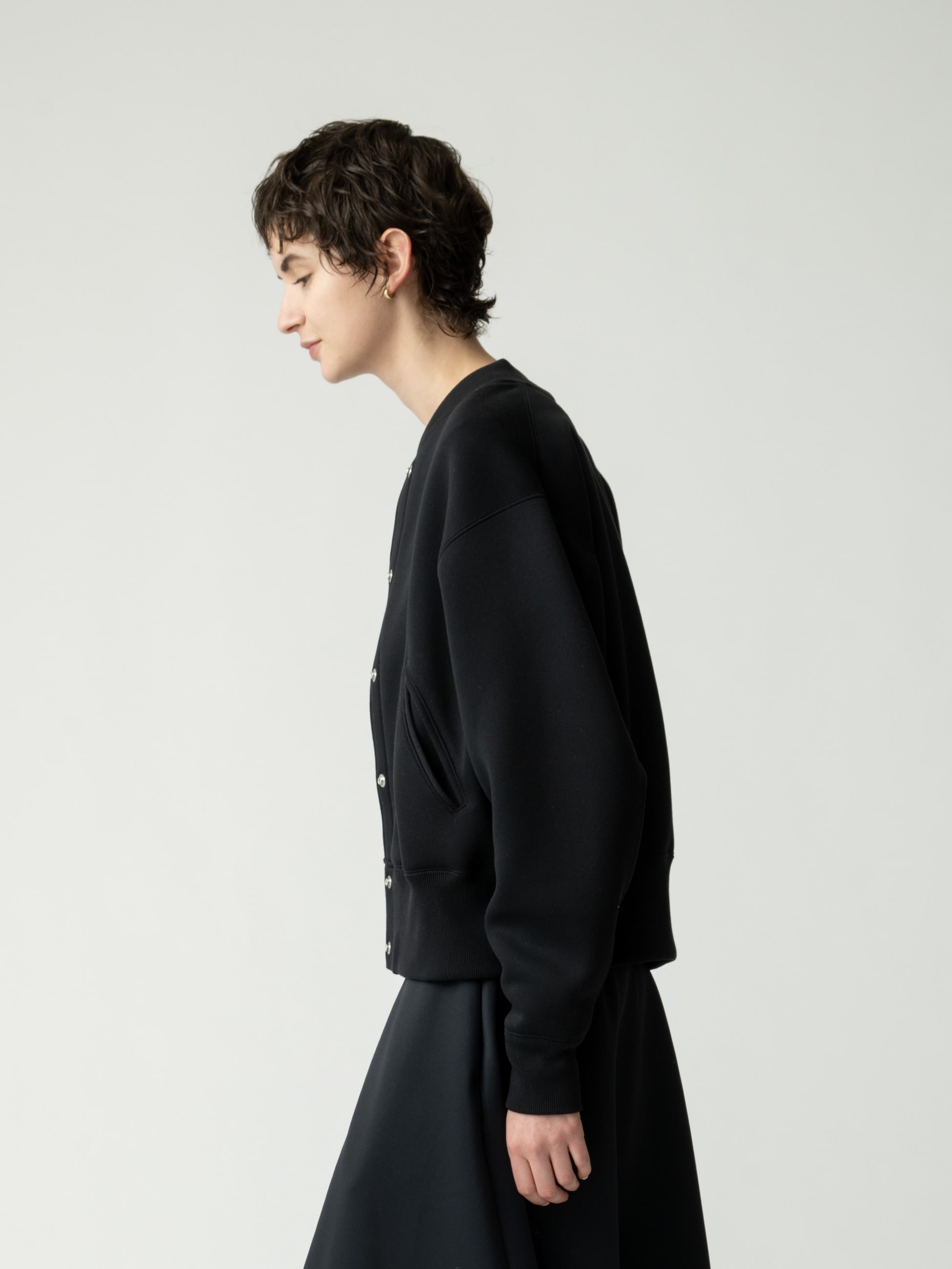- リサイクルポリエステルのベアダンボール素材を使用したブルゾンは、スタジャンをベースに仕立て、スポーティーでありながら、付属を同色で揃えることで落ち着いた印象の一枚です。軽やかな羽織り心地で、春先や秋口の季節の変わり目にも重宝します。