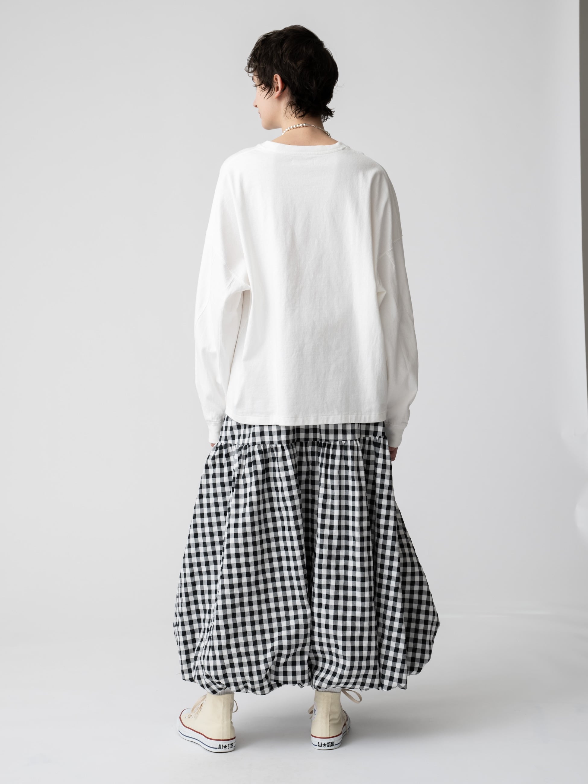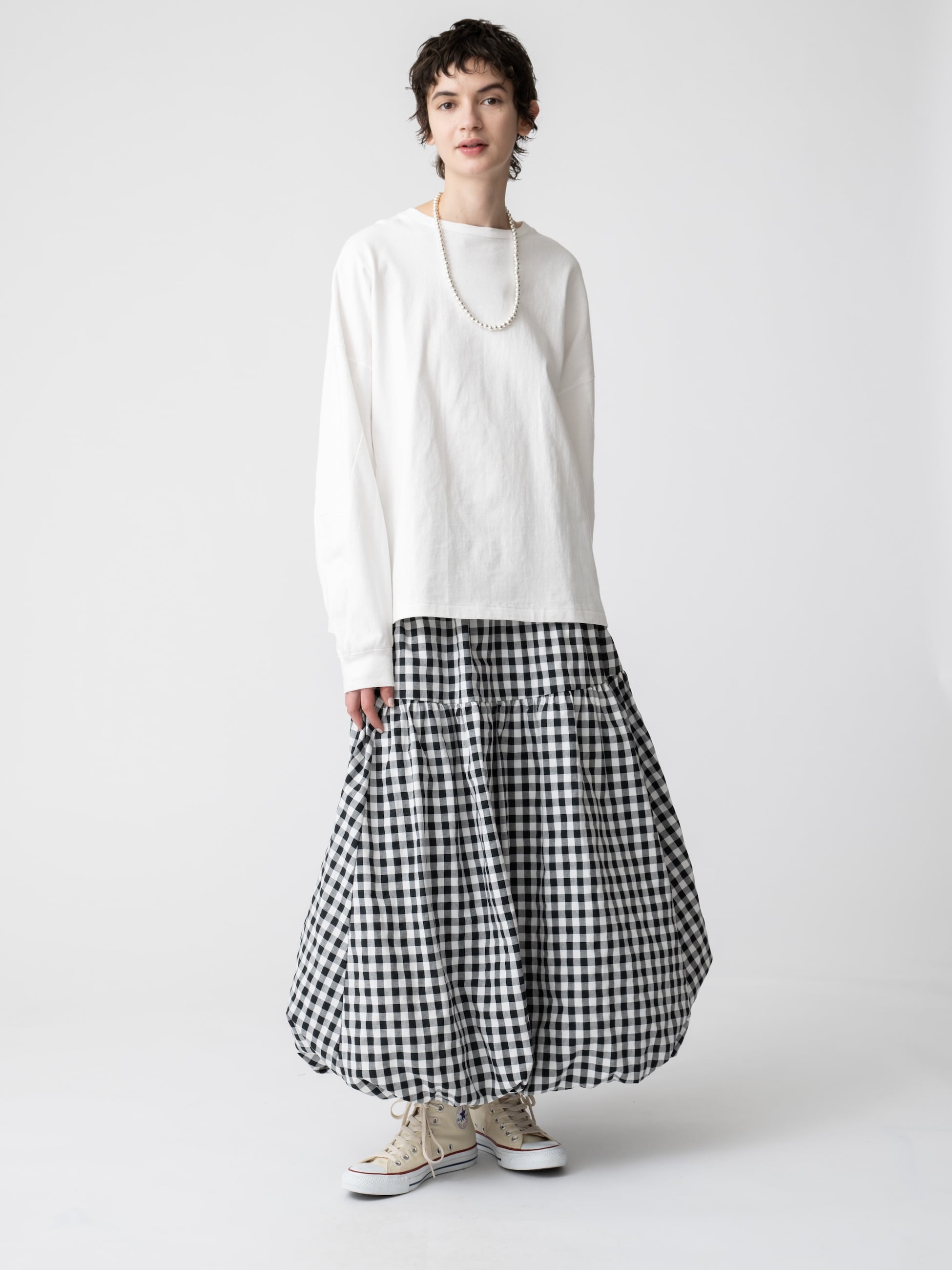 ボリュームのある立体的なシルエットが可愛らしいバルーンスカートは、ギンガムチェック柄がガーリーな印象をプラスします。ウエストゴム仕様でストレスフリーな穿き心地なのも嬉しいポイント。ドライなタッチで速乾性も兼ね備え、オールシーズン着用いただけます。
