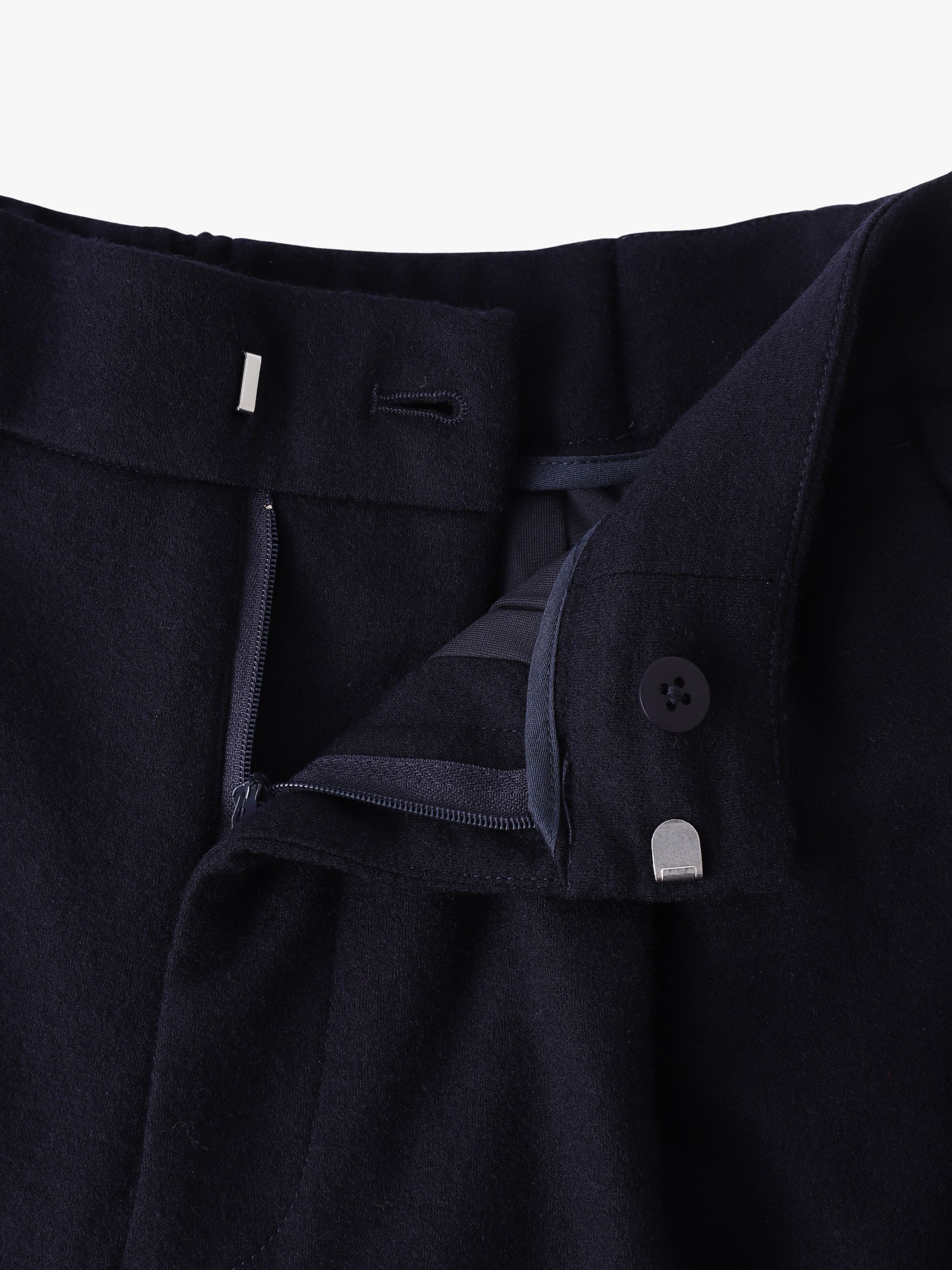 - しなやかな圧縮ウール生地を使用したパンツは、レッグラインを綺麗に見せてくれるテーパードシルエットが特徴です。ウエストは前開きできれい見えしつつ、背中側はゴム仕様でイージーなはき心地なのも嬉しいポイント。差し色にぴったりなレッドとシックなネイビーの2色展開で、オーバーサイズのシャツやカジュアルなトップスとも好相性です。