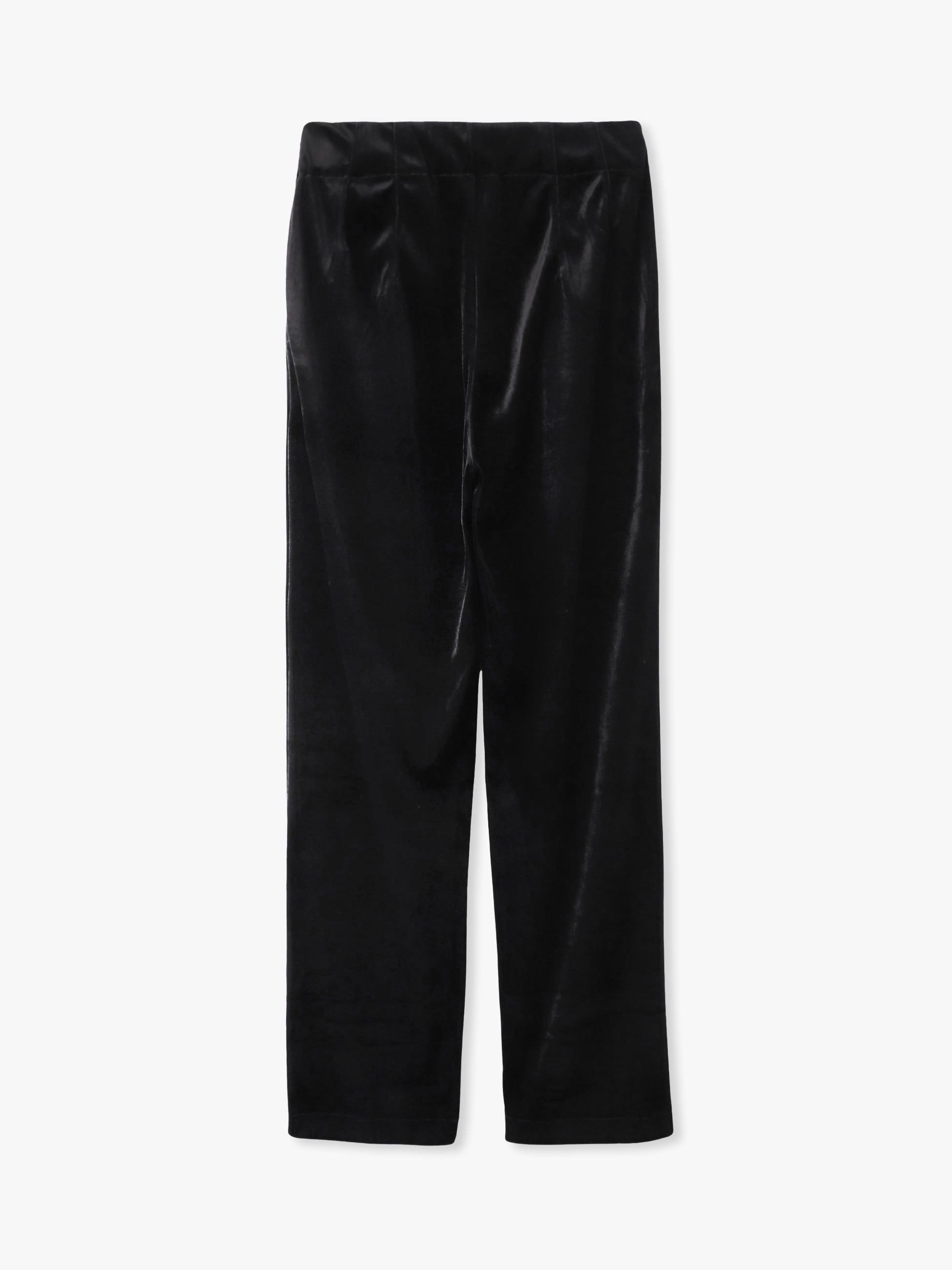 - すっきりとしたシルエットのベロア素材のイージーパンツは、シルクのような上質な光沢感と、しなやかで軽やかな着心地が特徴です。落ち感のあるベロア生地で、脚のラインも美しく惹きたて、トップスはオーバーサイズのニットやスウェットを合わせていただくと、バランス良く着用いただけます。同シリーズのバイカラー ベロアトップスもございます。