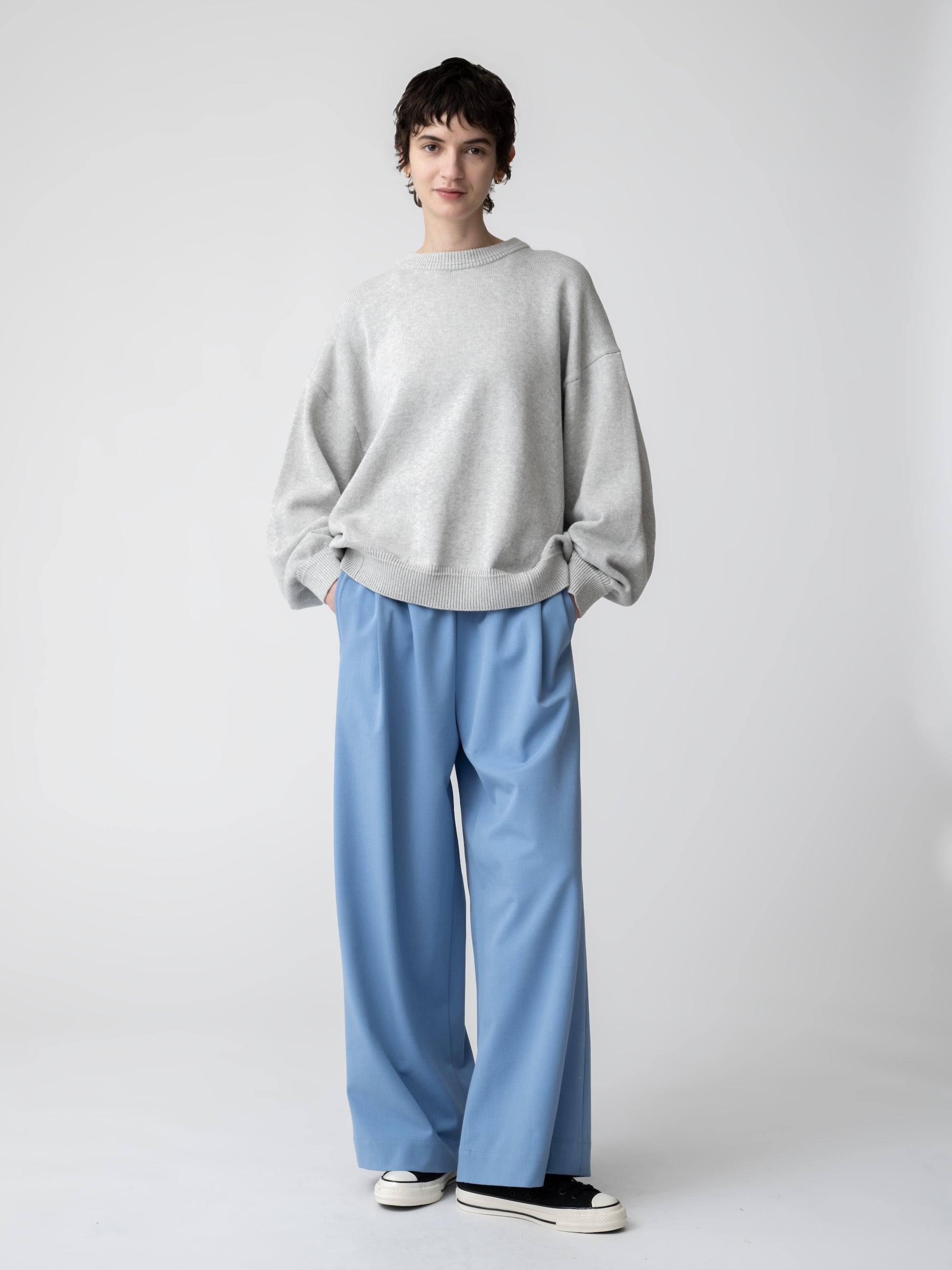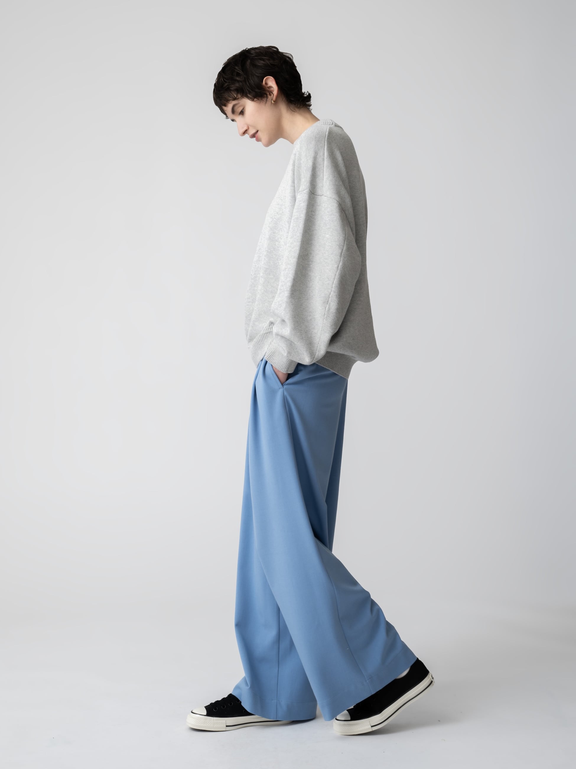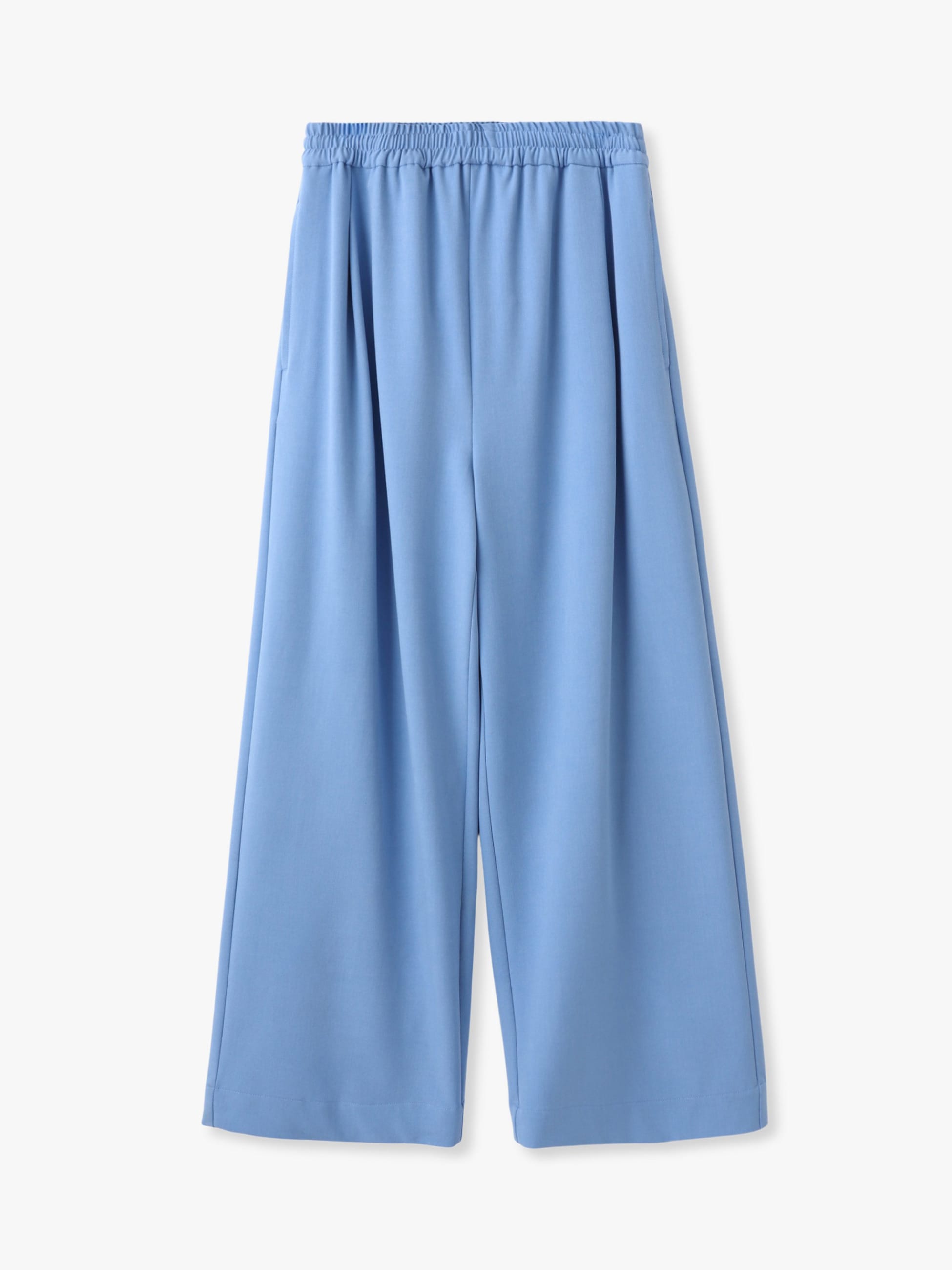 ワイドシルエットのイージーパンツは、サイド寄りに配置したタックがウエストをすっきりと見せ、リラクシーな落ち感がある立体的なシルエットを演出します。さらっとした肌触りが心地良く、長いシーズンで穿いていただけます。