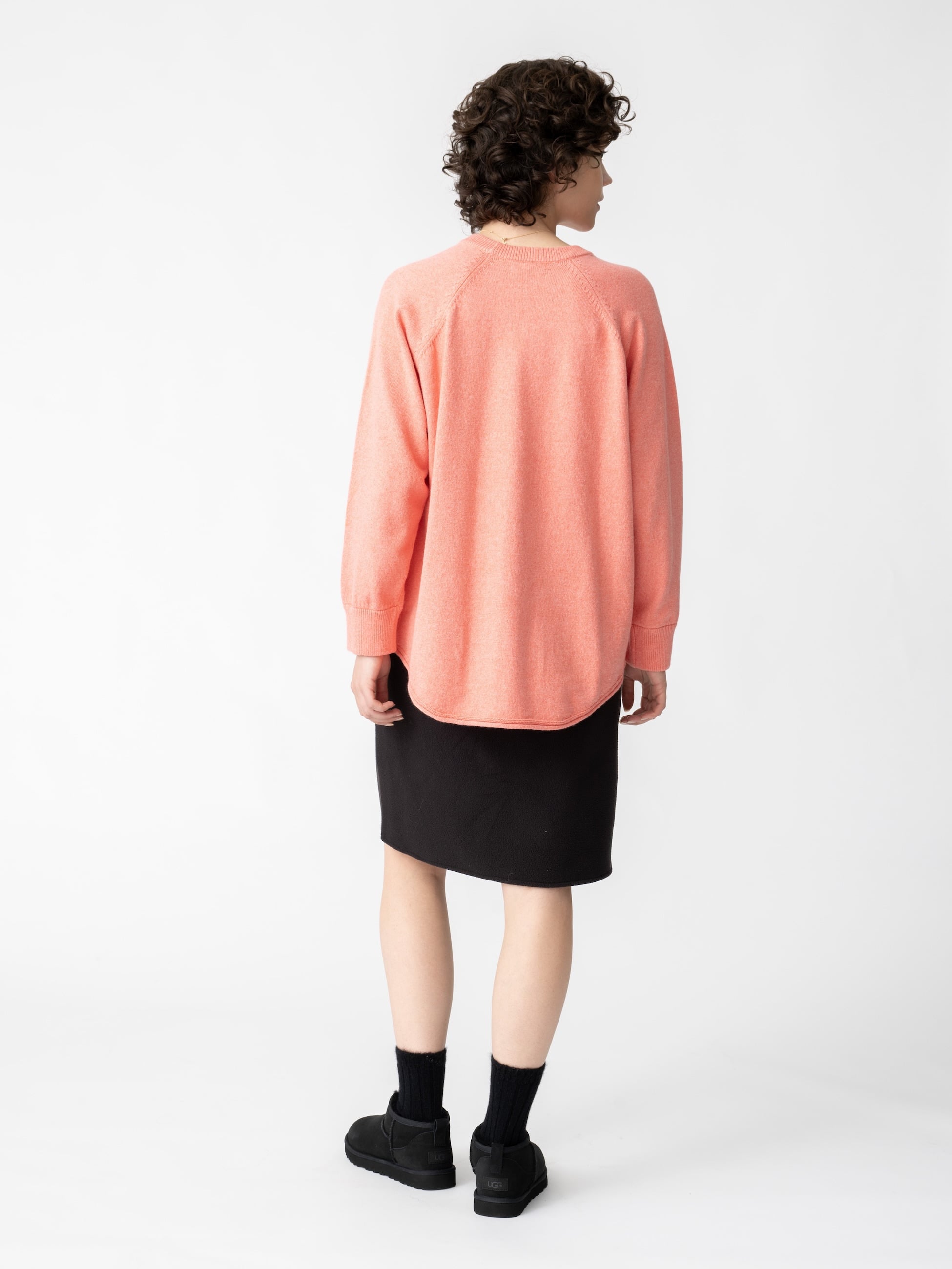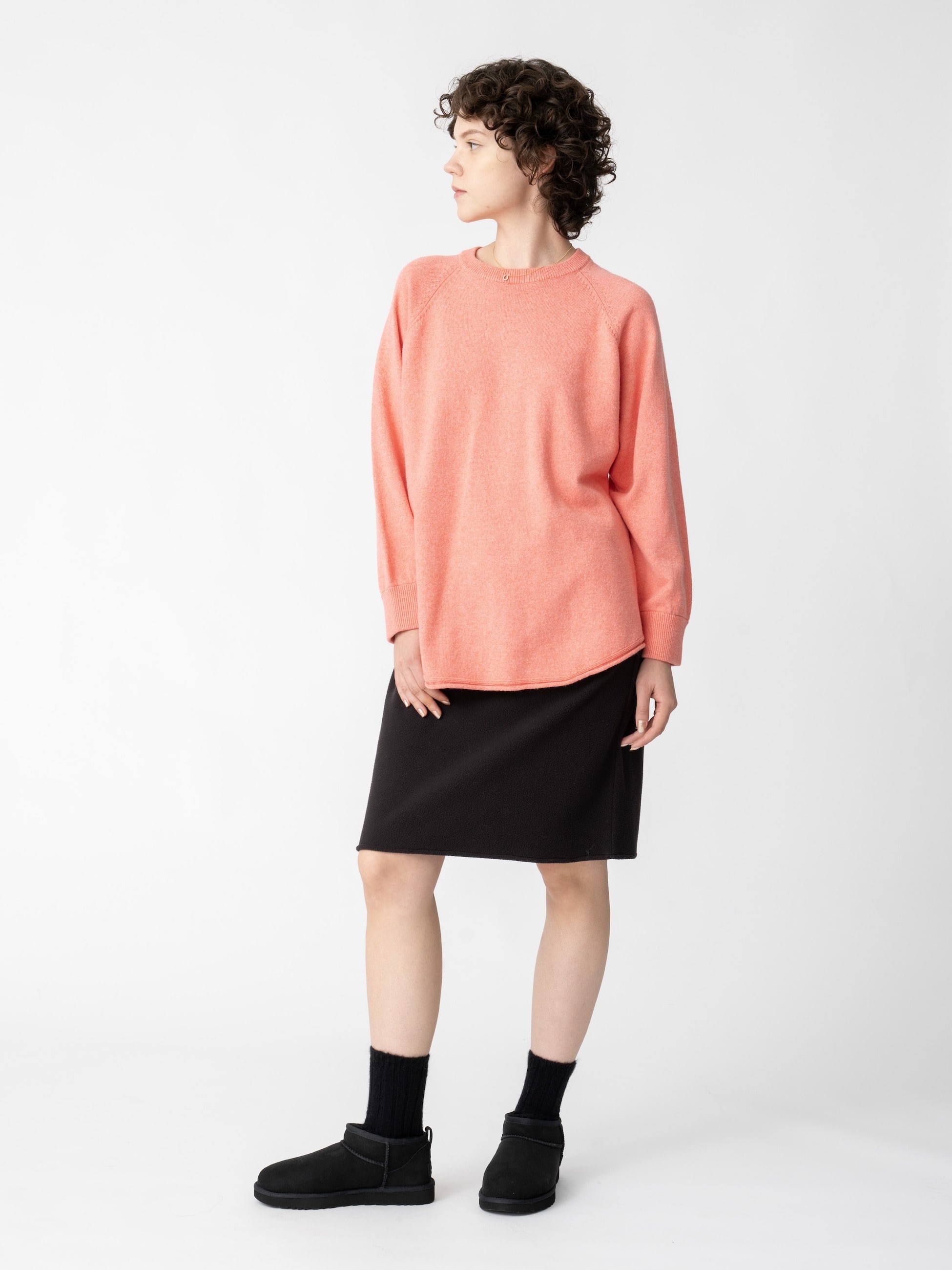 - 24FWシーズンに好評いただいたオーガニックコットン×リサイクルナイロンを使用したオーバーサイズのニットプルオーバーから、ライトグレーとピンクの新色を迎え、再び登場です。長めの着丈とラウンドヘム、ラグランスリーブが特徴で、スウェットのような感覚で気負わずラフに着ていただけます。軽量であたたかく、秋冬シーズンに重宝します。