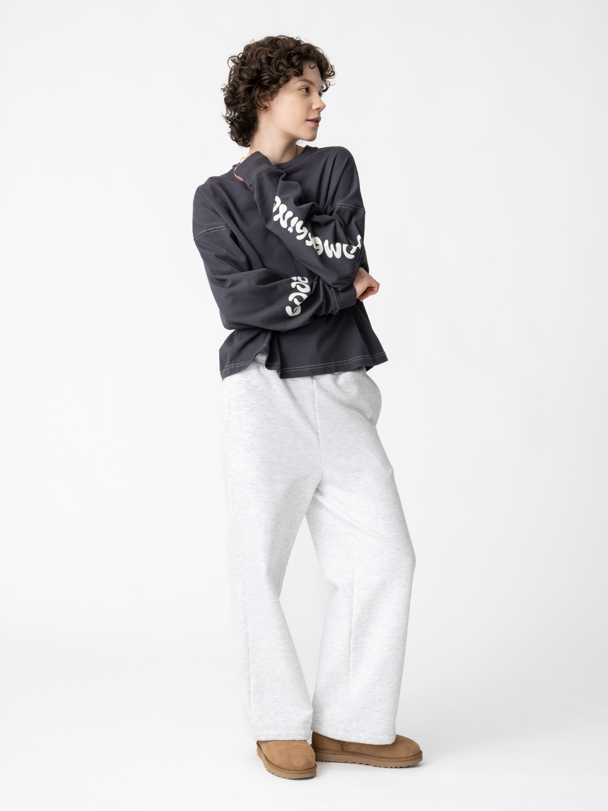 袖にあしらわれた、2025FWシーズンのサブテーマのプリントがデザインポイントのロングスリーブTシャツです。オーガニックコットンの落ち綿を使用した、細かいネップ調の表情もポイント。シンプルながらもアクセントが効いた1着です。
