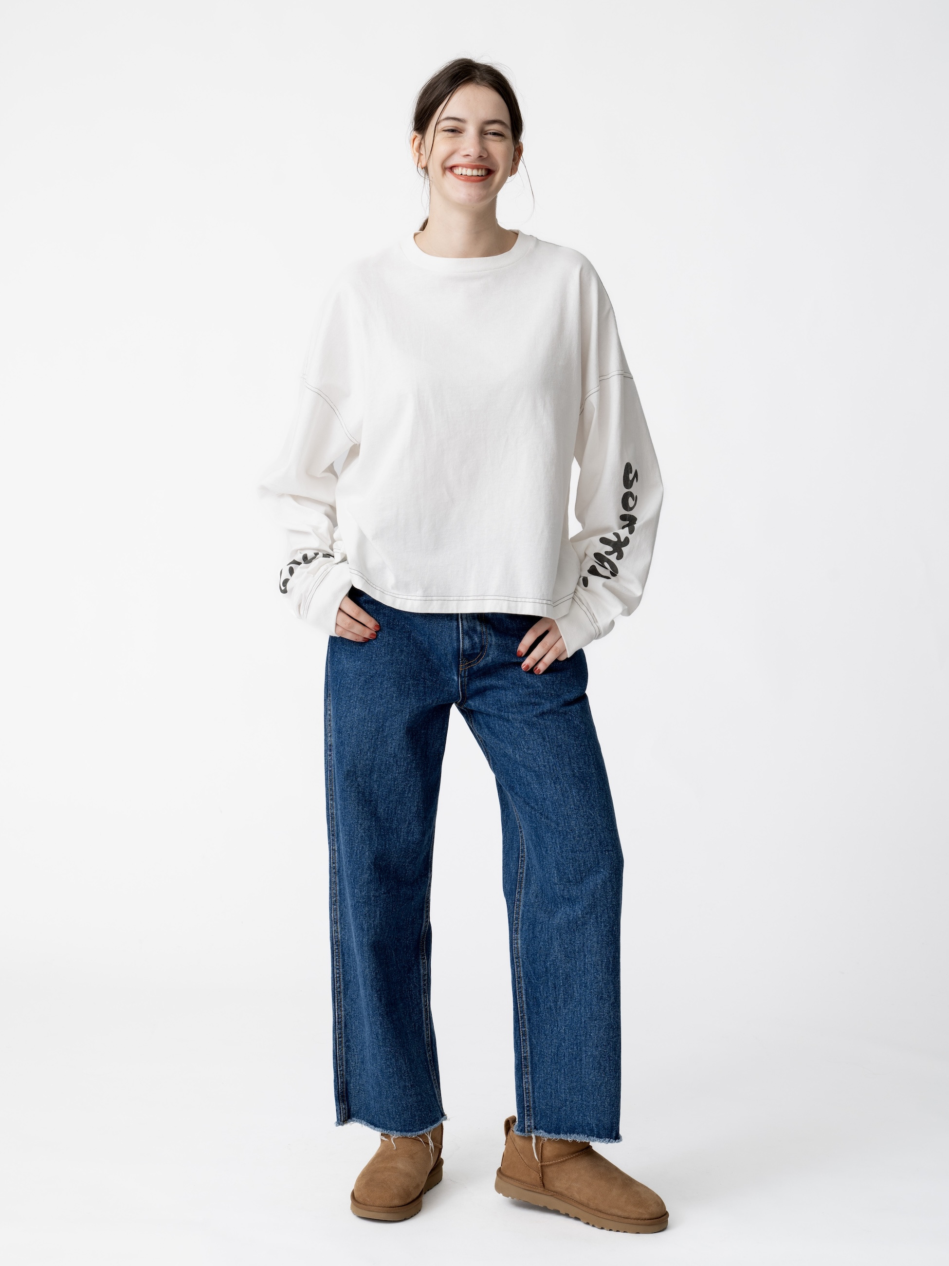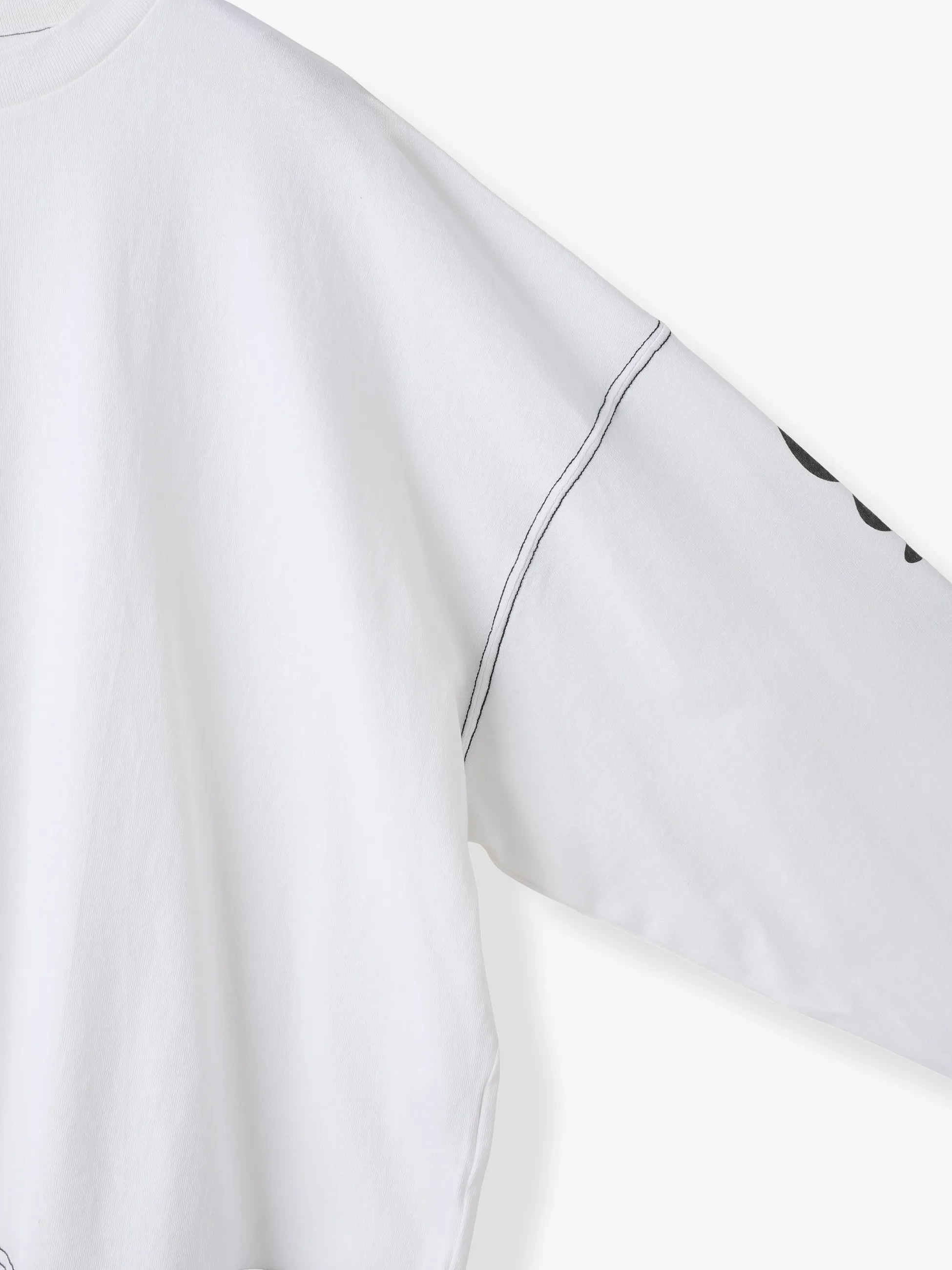 - 袖にあしらわれた、2025FWシーズンのサブテーマのプリントがデザインポイントのロングスリーブTシャツです。オーガニックコットンの落ち綿を使用した、細かいネップ調の表情もポイント。シンプルながらもアクセントが効いた1着です。