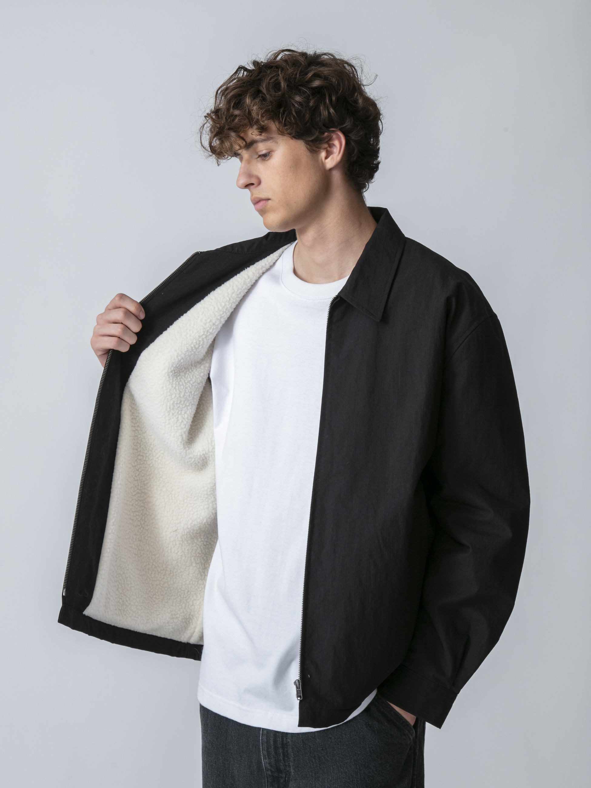 - 表面にリップストップ素材と裏地にボアを配したジップジャケット。ふんわりとしたボア素材は、優れた保温性と柔らかな肌触りが特徴です。また、丈夫なリップストップ素材は、様々なシーンでもラフに着用できます。ゆったりとしたフィットは、デイリーユースしやすい一着です。
