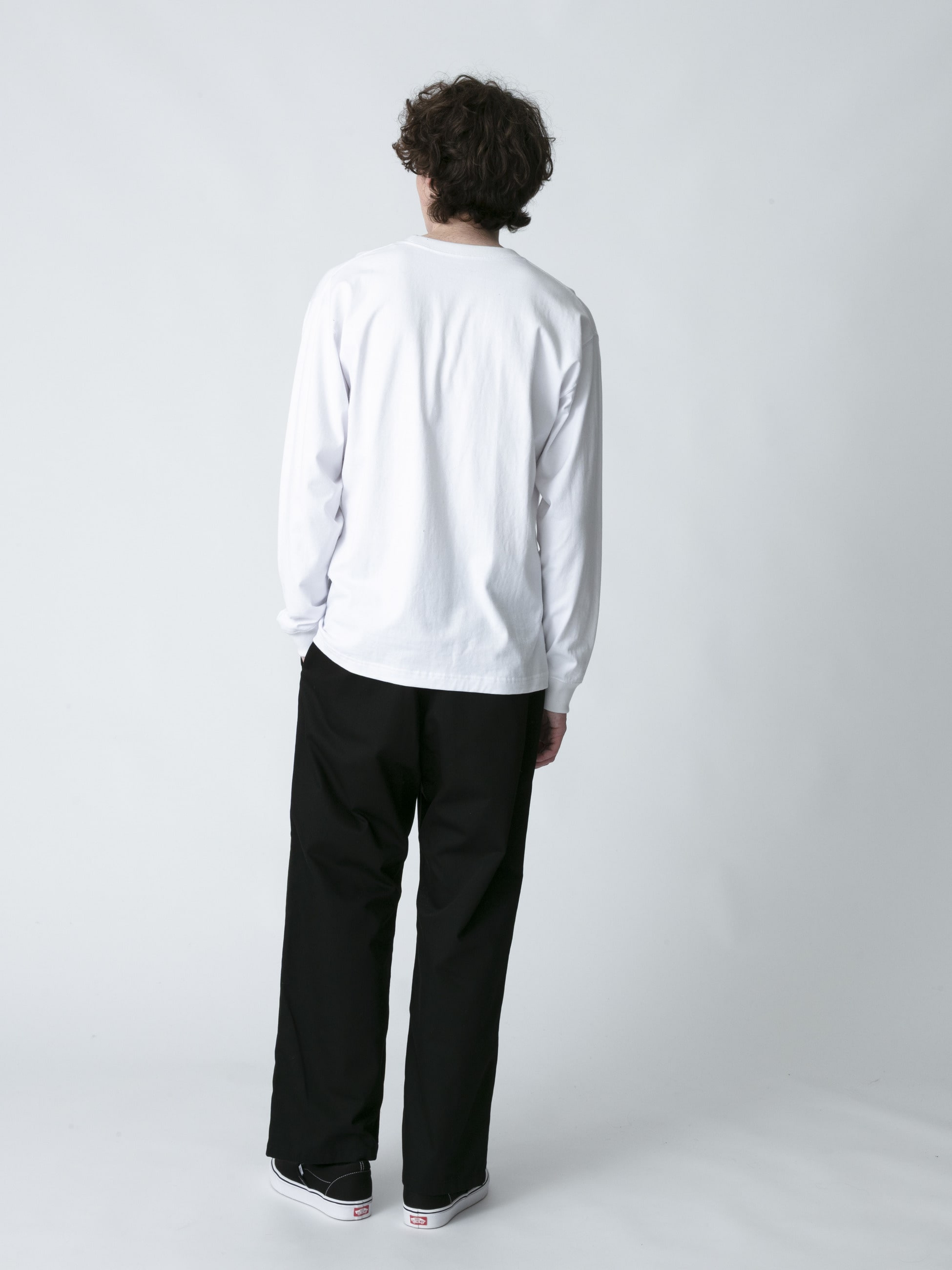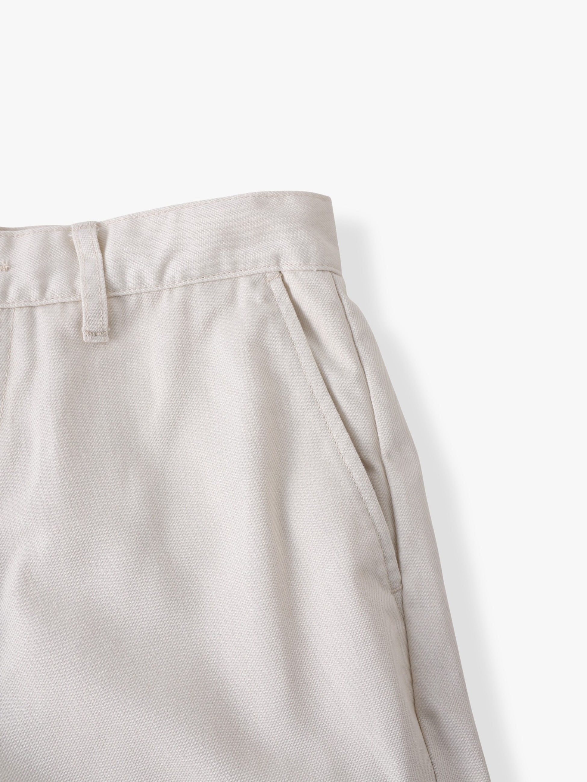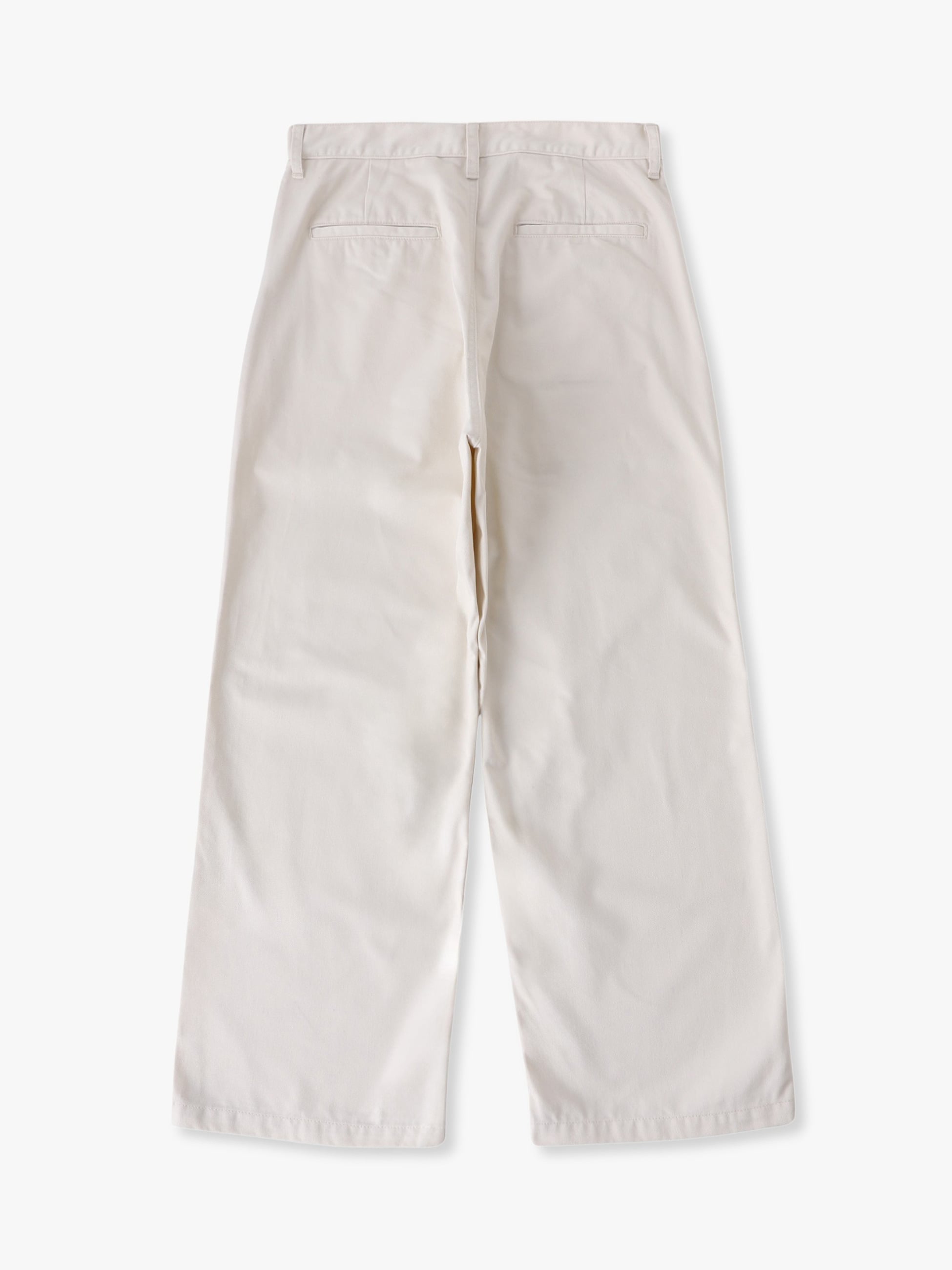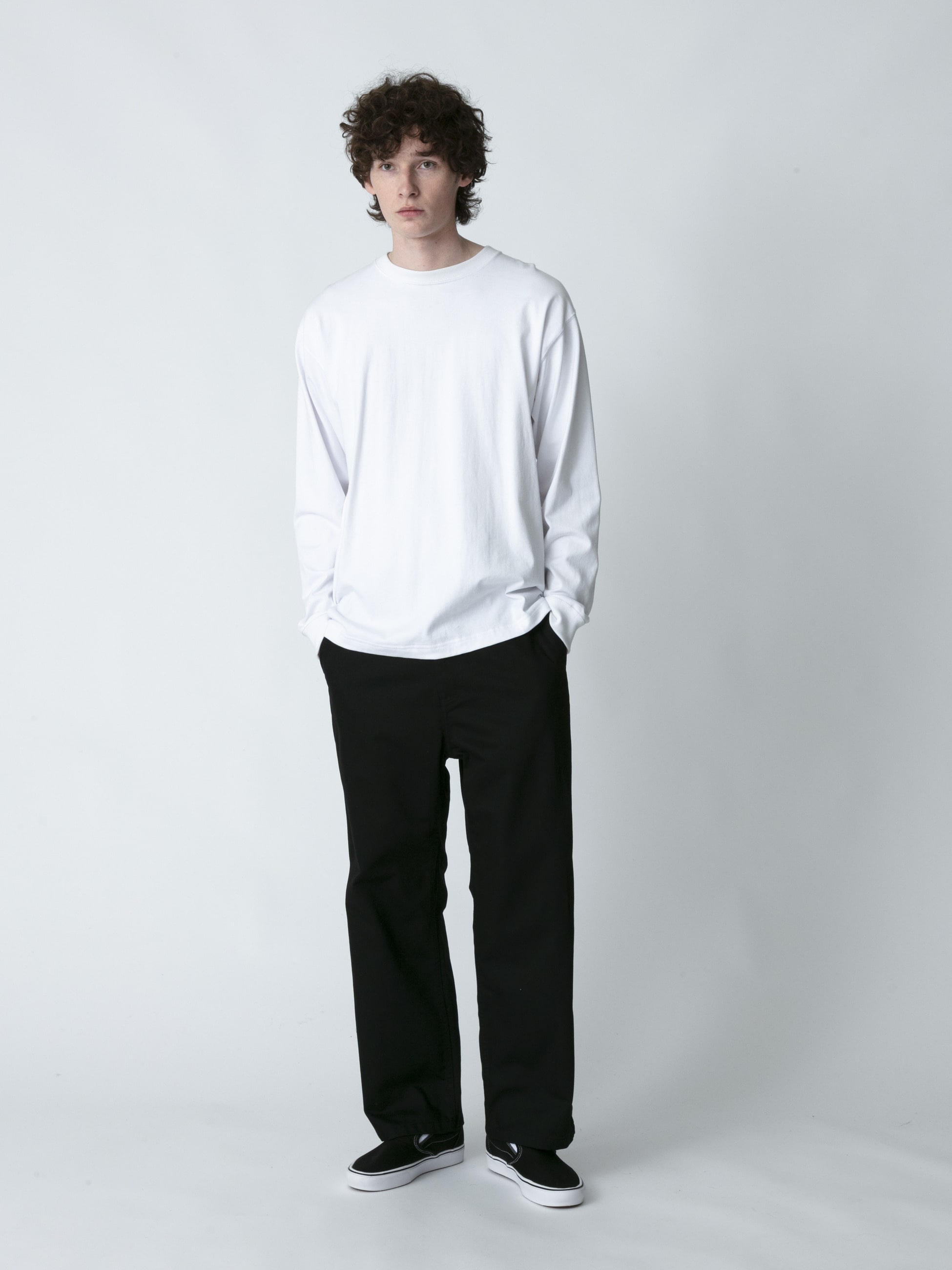 - 太番手のポリエステルとコットンの混紡糸を高密度で織り上げカツラギ素材を使用したパンツ。さらっとした肌触りと優れた速乾性は、快適な穿き心地を実現しています。また、落ち感のある生地による上な表情も魅力のひとつ。ゆったりとしたワイドフィットは、シンプルなコーディネートに取り入れやすく、汎用性の高い一着です。