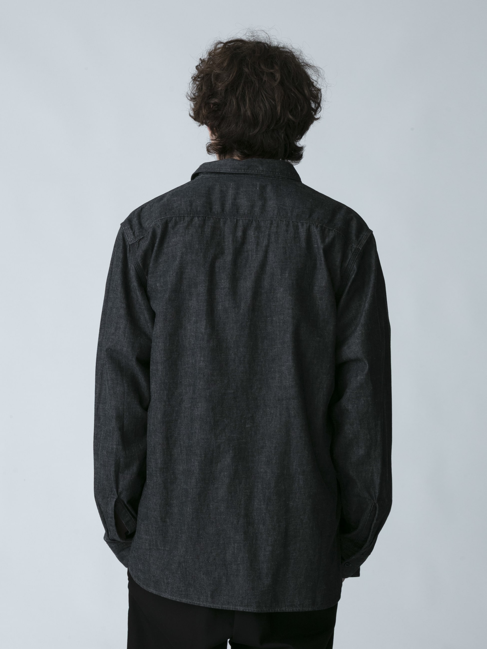 - ライトオンスのセルビッチデニムを使用したワークシャツ。ヴィンテージワークシャツをベースに、トリプルステッチで縫製されたしっかりとした作りが特徴です。また、裾脇のマチに配された赤耳と言われる赤い糸によるほつれ止めを採用した仕様もアクセントになっています。ドレスシャツのように程よくすっきりとしたレギュラーフィットは、様々なコーディネートに合わせやすく、汎用性の高い一着です。