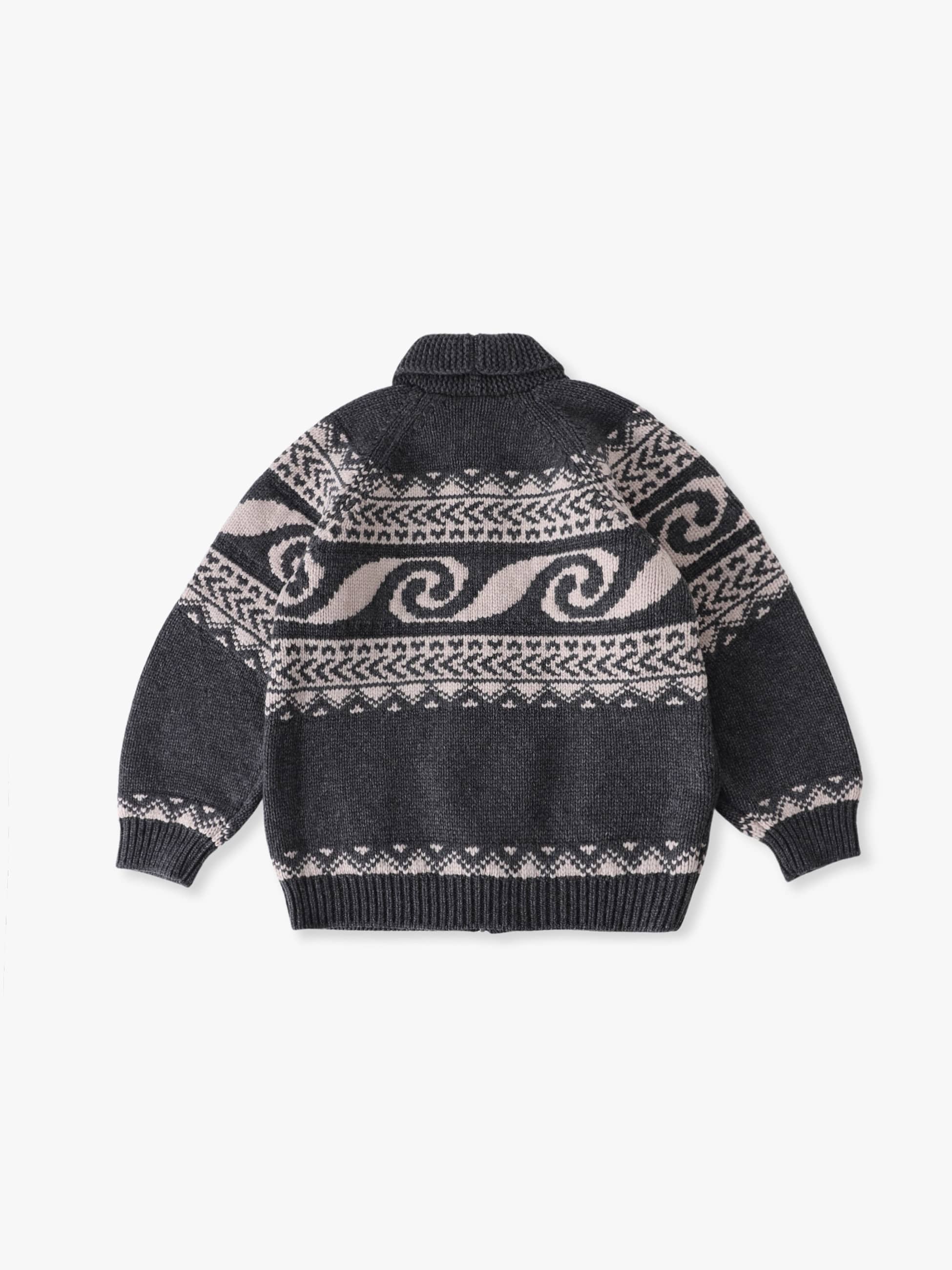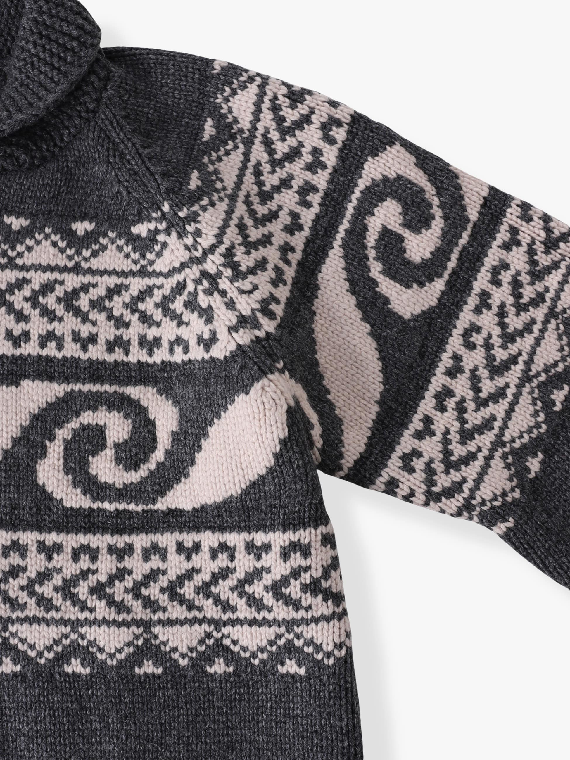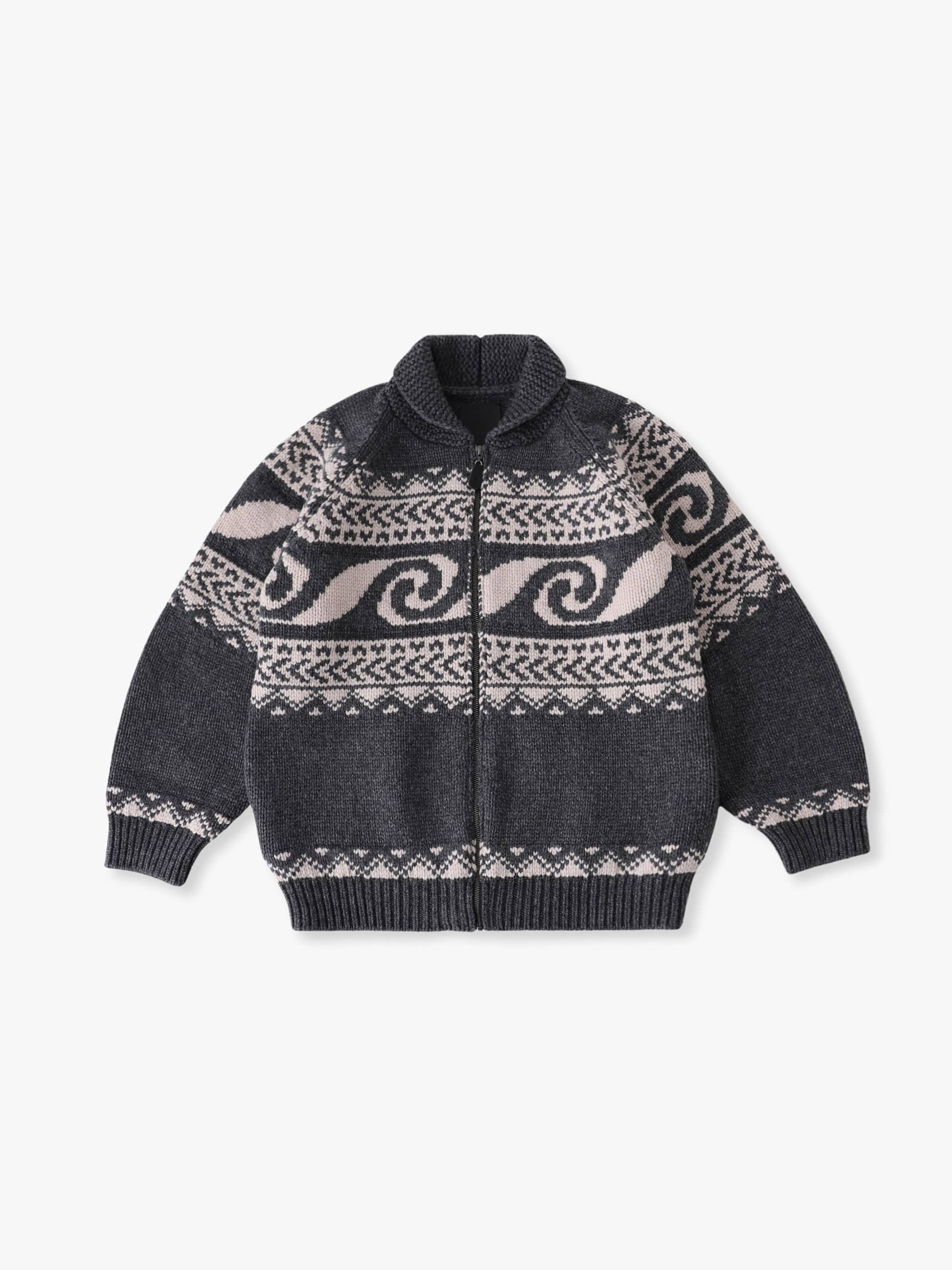 - 上質なウールとカシミアを混紡したカウチンニットカーディガン。オリジナルで製作されたウェーブパターンをジャカード織りで表現したデザインは、優れた技術力を持つ新潟県のニッターによって編まれています。また、非常に柔らかな肌触りや厚みのある生地感は、快適な着心地を実現しています。さらに、襟前端に配した変形ケーブルやレザーで製作されたオリジナルのブランドネームとファスナーの引手にもレザーを使用した細部まで拘ったつくりも魅力のひとつ。ゆったりとしたフィットは、デイリーユースしやすい一着です。