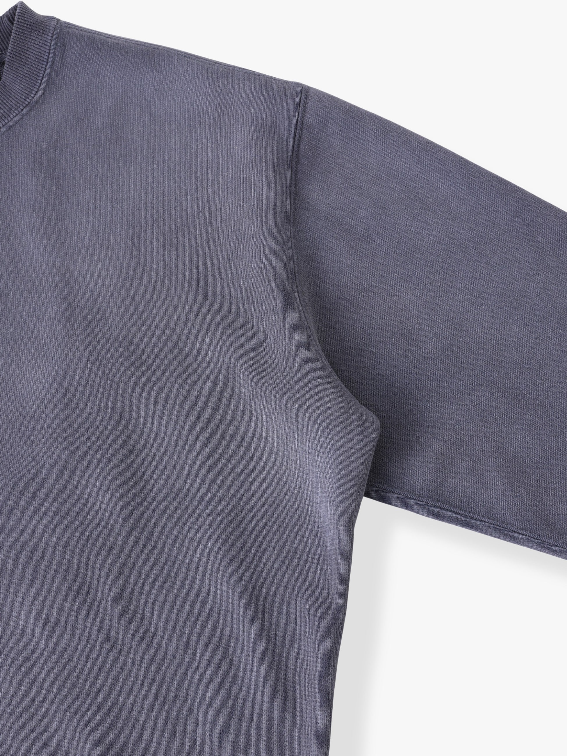 - 適度に肉厚の裏毛素材を使用したスウェットプルオーバーは、硫化染めとパウダー加工を施したフェードしたヴィンテージのようなカラーリングが特徴です。また、柔らかな風合いとコーディネートに合わせやすいカラー展開も魅力のひとつ。程よくゆったりとしたフィットは、デイリーユースしやすい一着です。