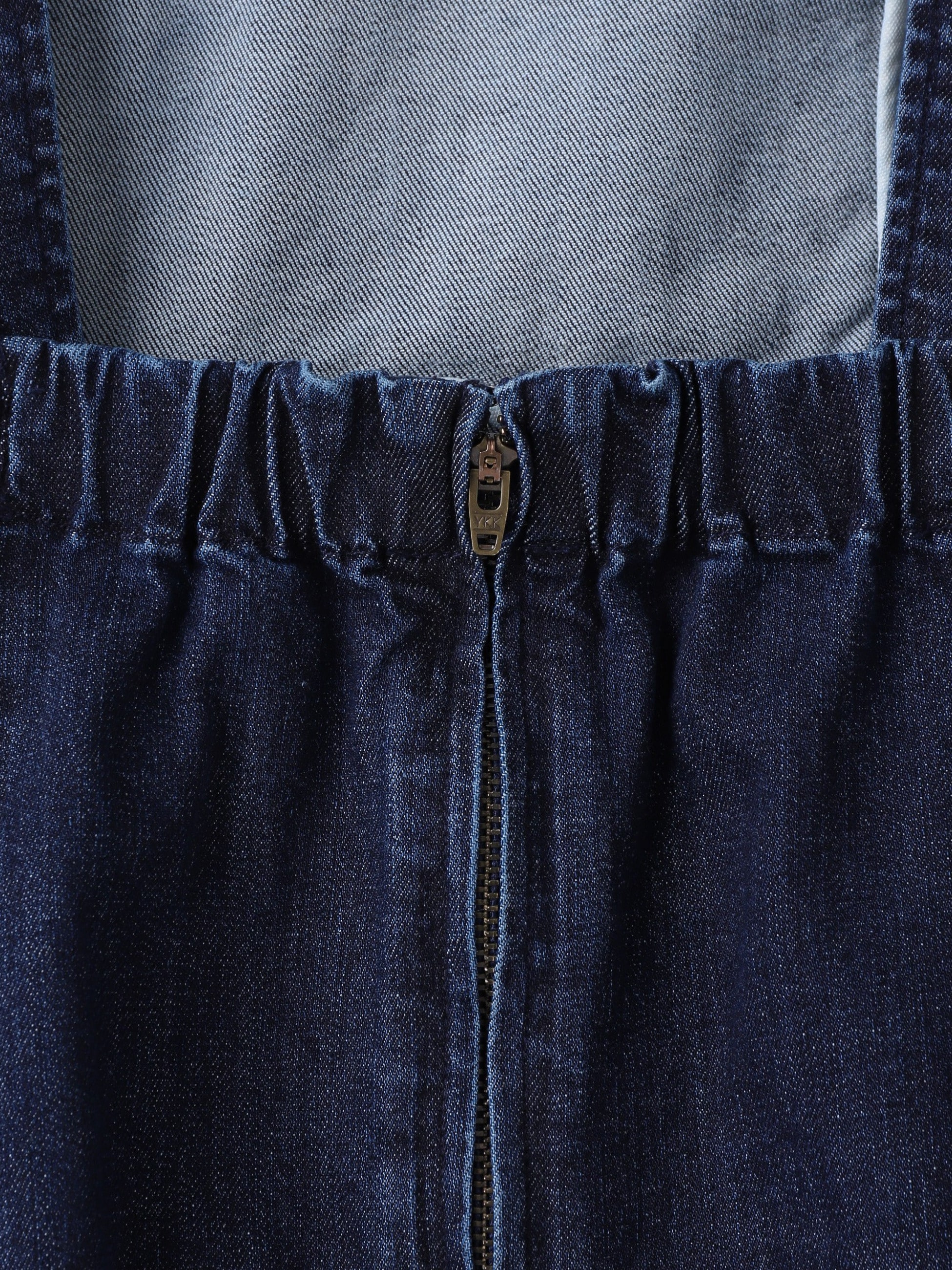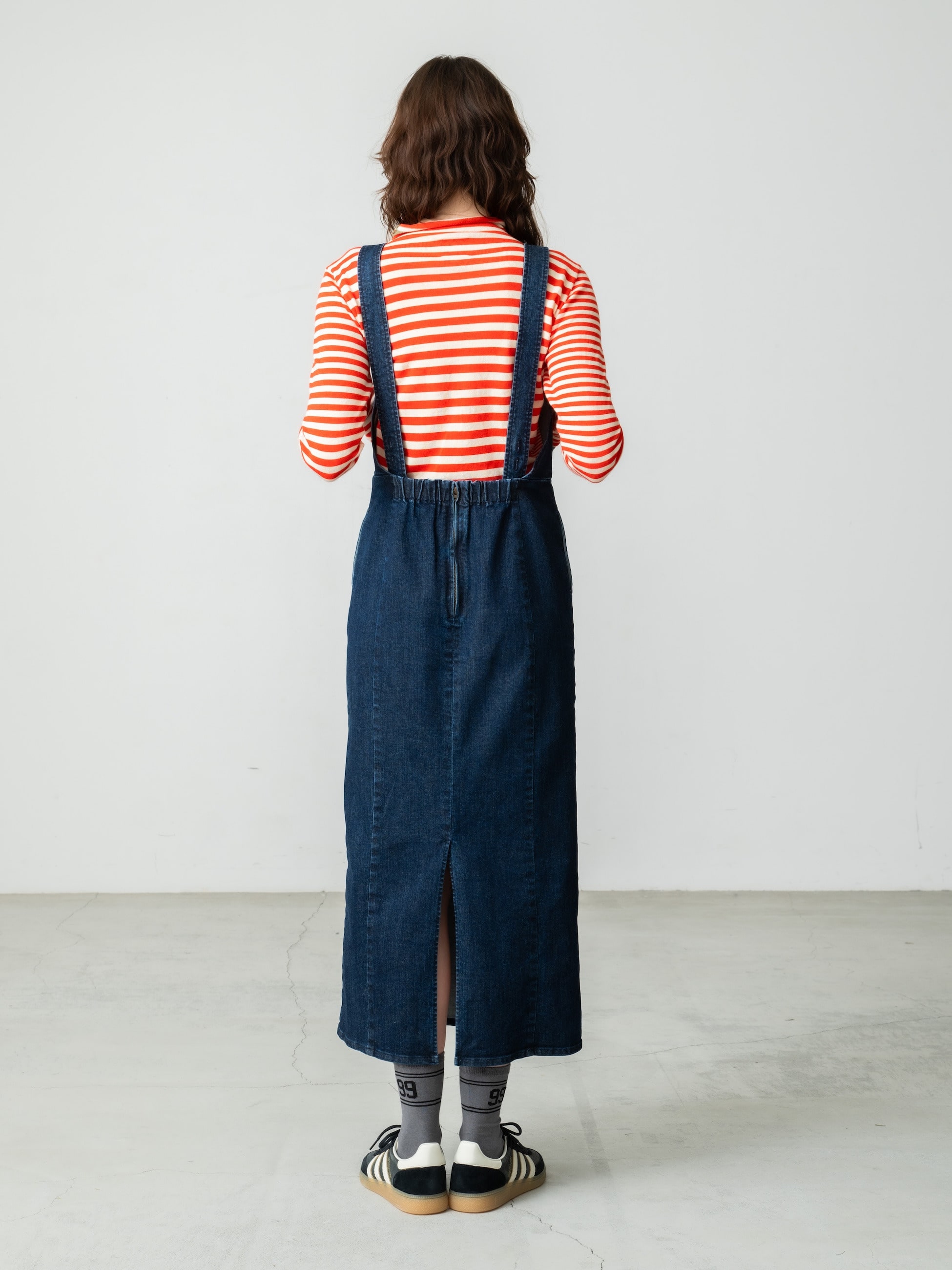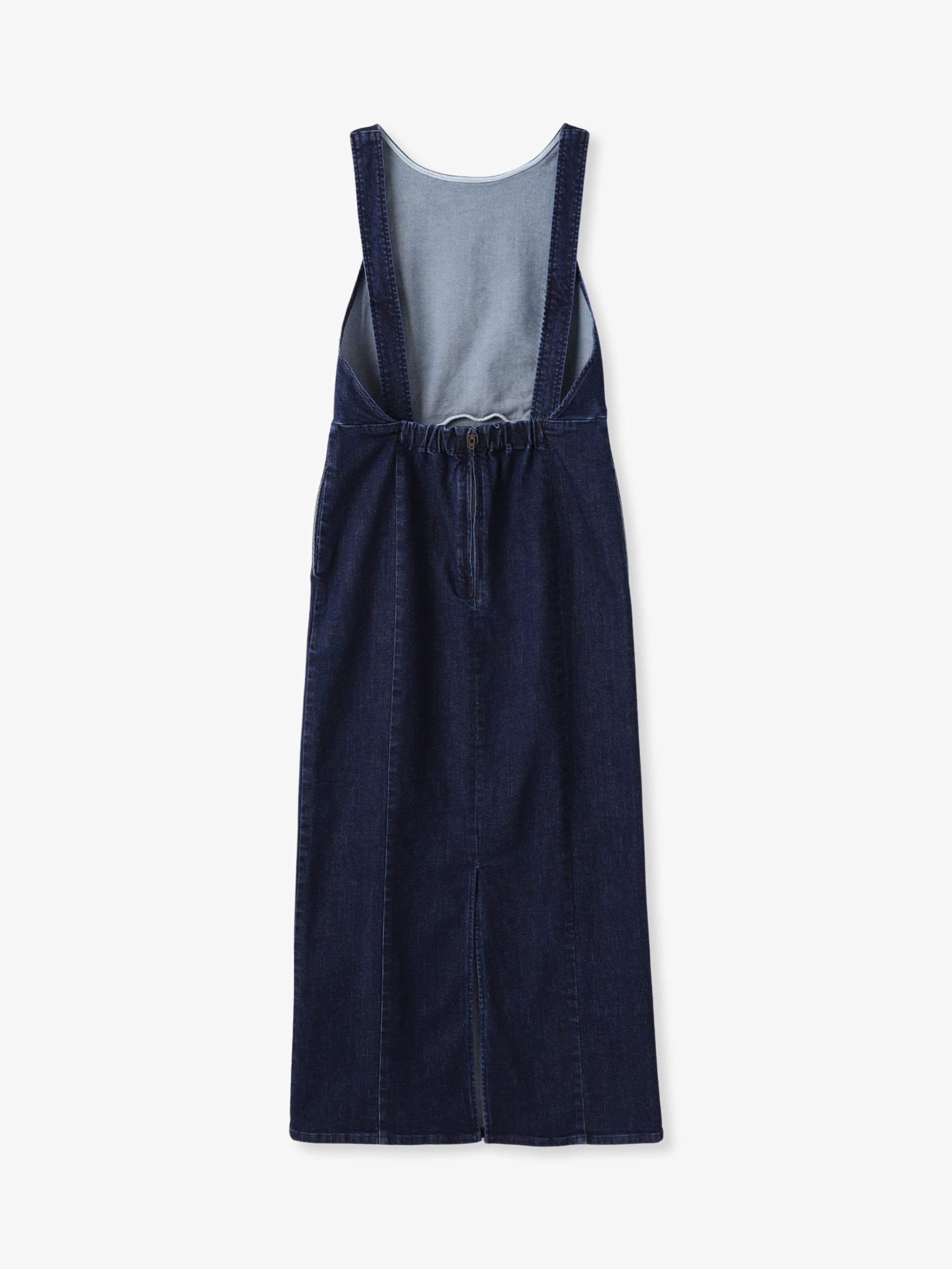 - すっきりとしたシルエットのエプロンドレスは、デニムのカジュアルな雰囲気と上品さのバランスが秀逸で、高めのウエスト位置がスタイルをより綺麗に見せてくれます。フィット感がありながらも、裾のスリットとストレッチの効いた生地が動きやすさをキープ。Tシャツやニット、スウェットなど、インナーを変えると長いシーズンでお楽しみいただけます。
