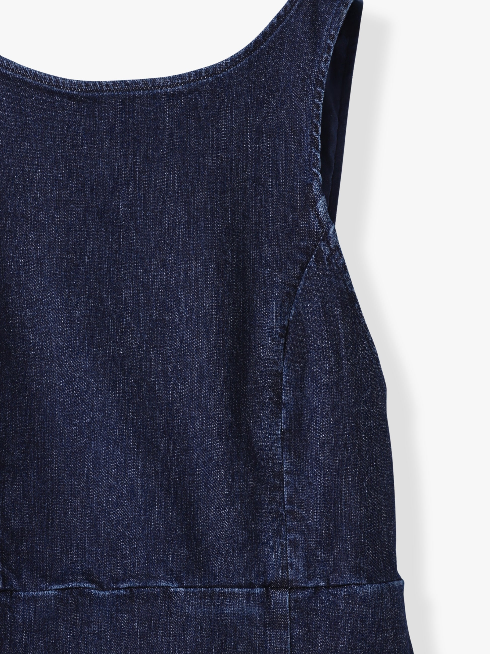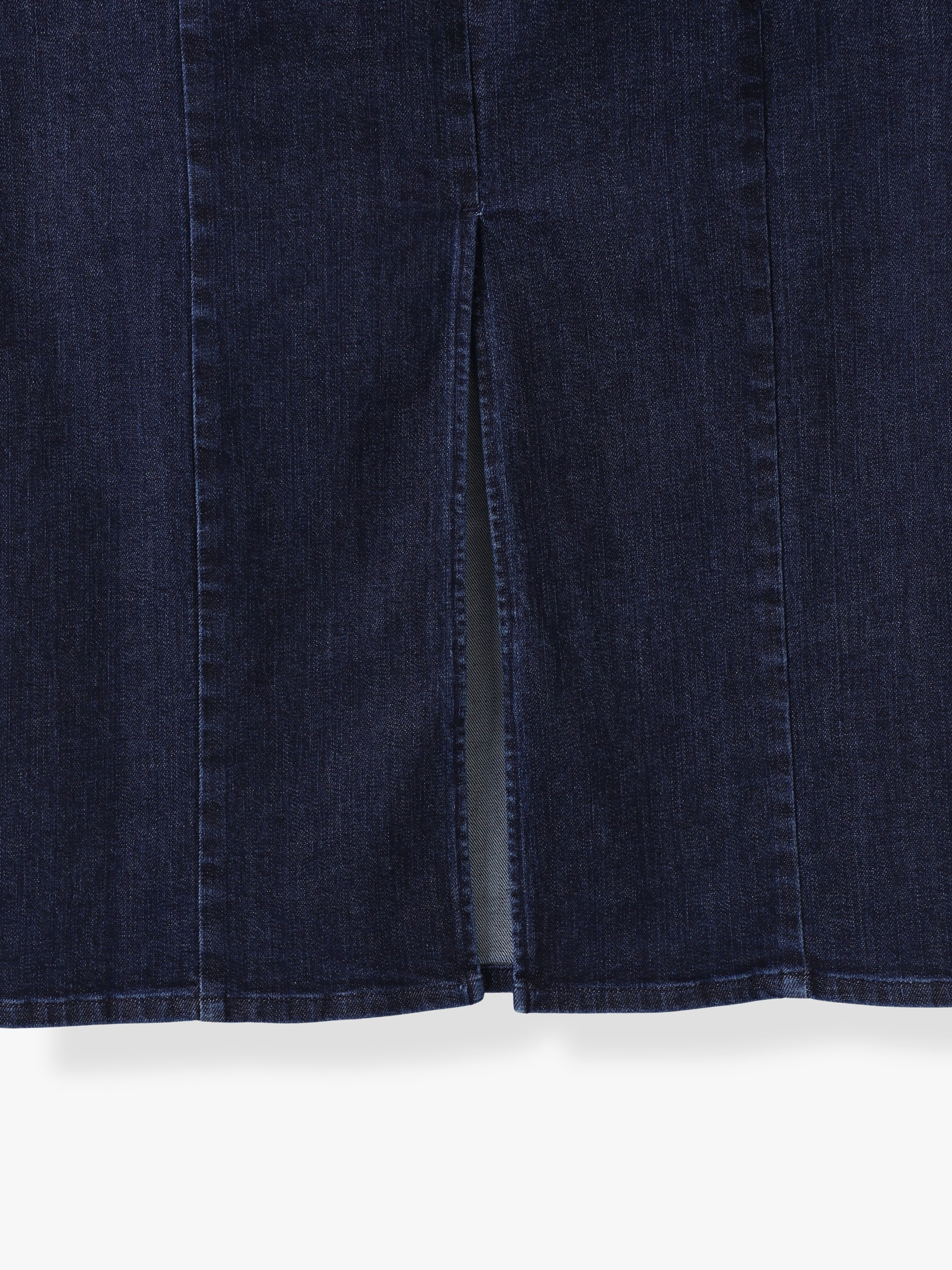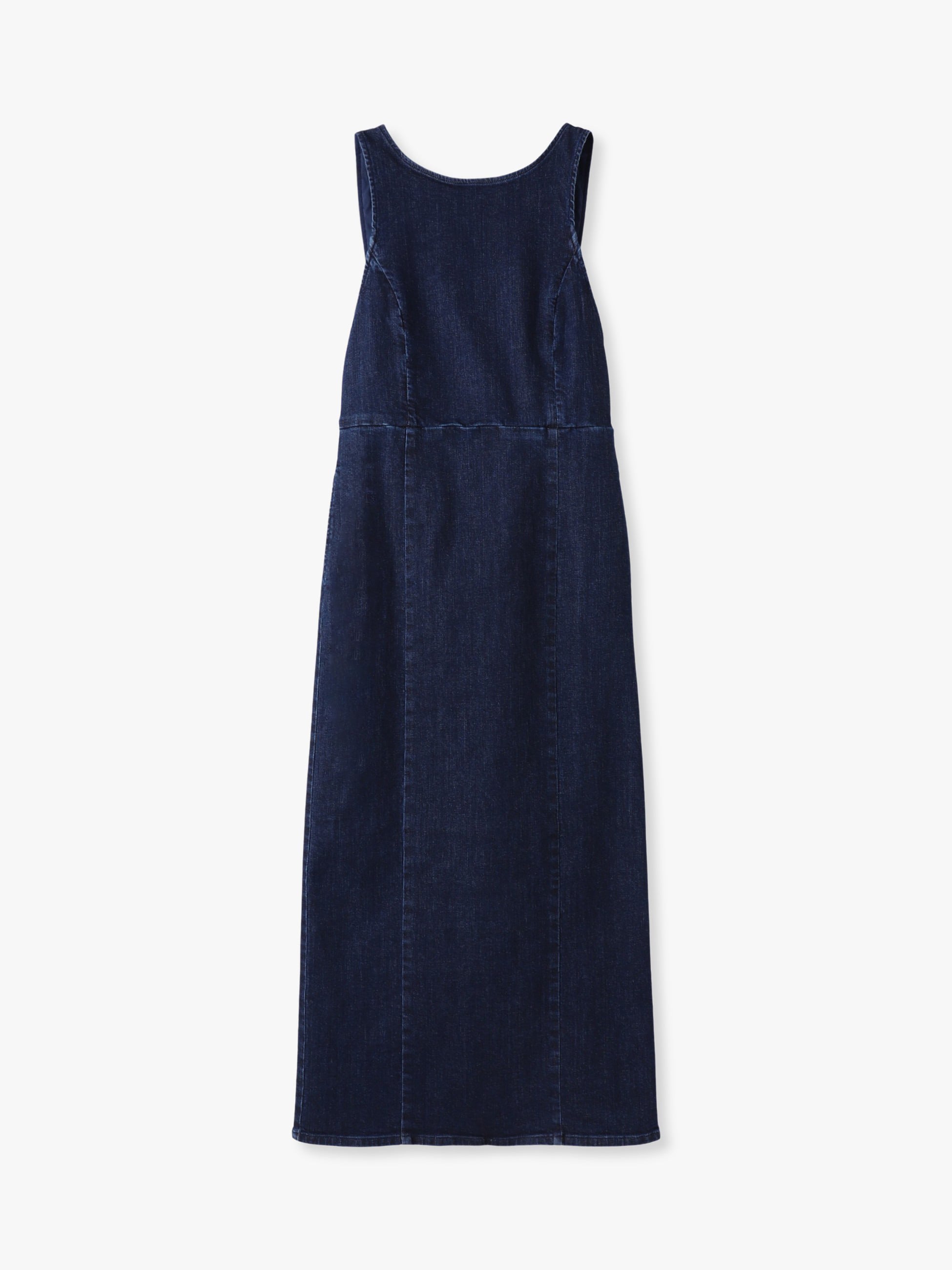 - すっきりとしたシルエットのエプロンドレスは、デニムのカジュアルな雰囲気と上品さのバランスが秀逸で、高めのウエスト位置がスタイルをより綺麗に見せてくれます。フィット感がありながらも、裾のスリットとストレッチの効いた生地が動きやすさをキープ。Tシャツやニット、スウェットなど、インナーを変えると長いシーズンでお楽しみいただけます。