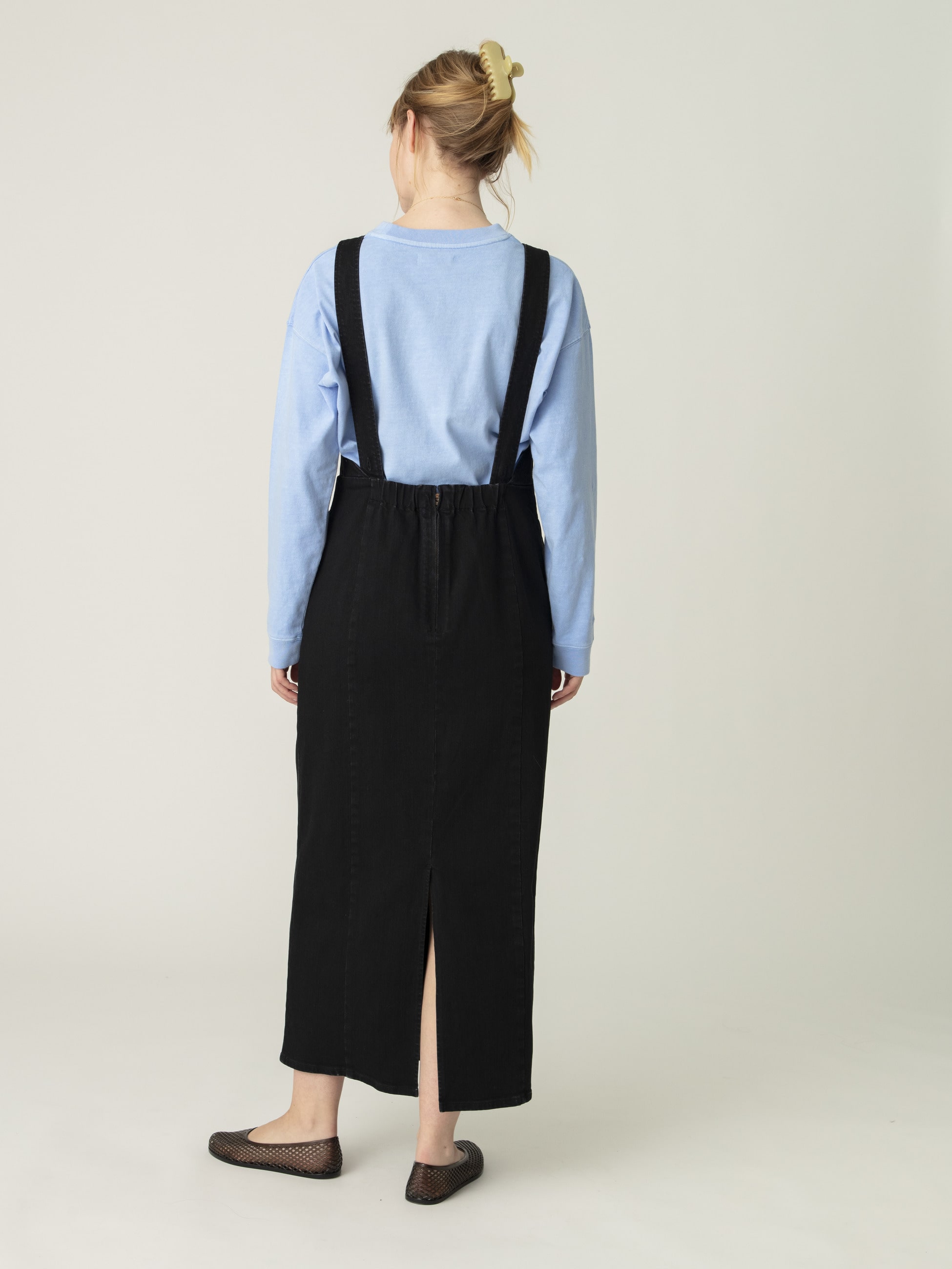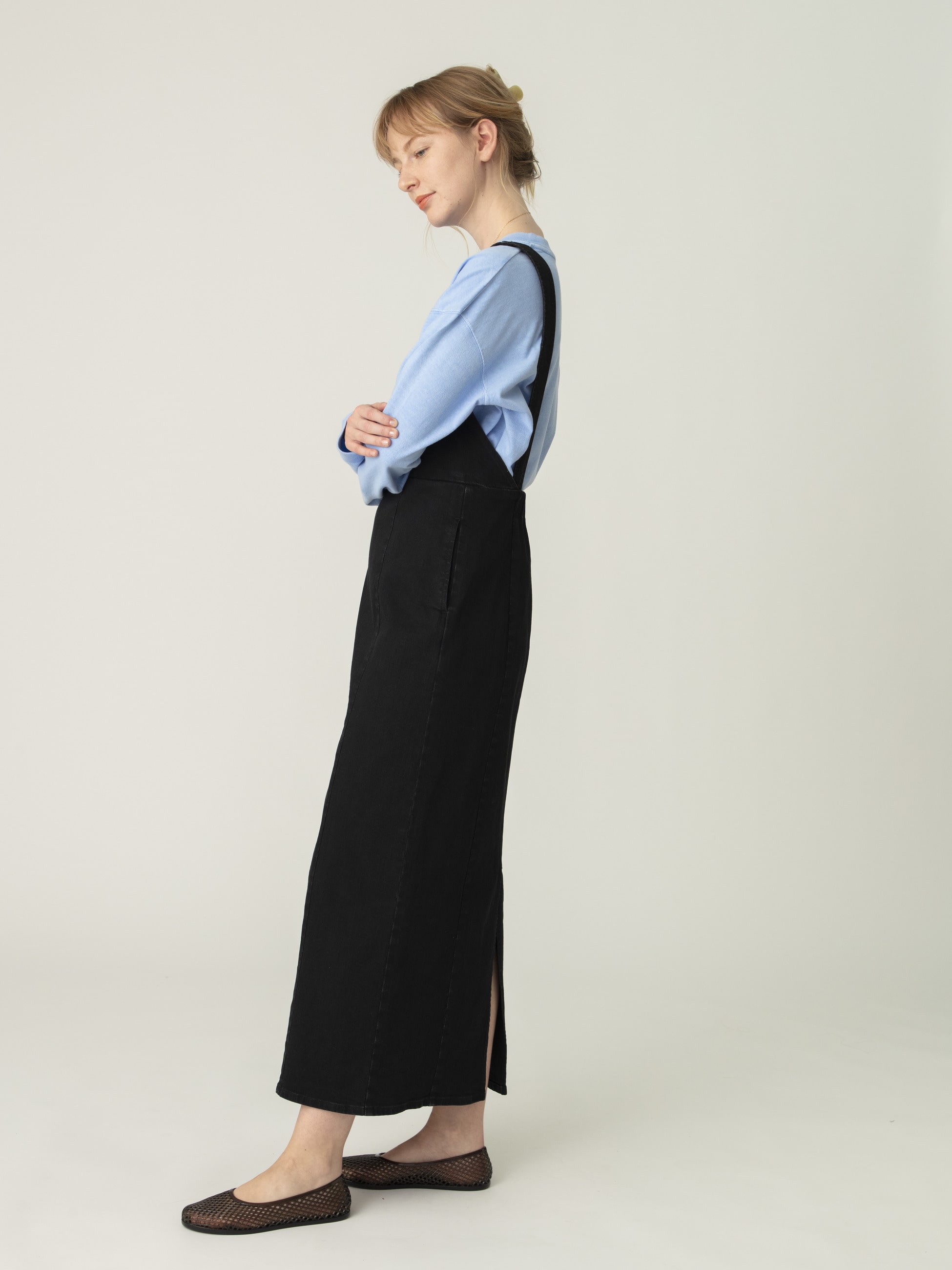 - すっきりとしたシルエットのエプロンドレスは、デニムのカジュアルな雰囲気と上品さのバランスが秀逸で、高めのウエスト位置がスタイルをより綺麗に見せてくれます。フィット感がありながらも、裾のスリットとストレッチの効いた生地が動きやすさをキープ。Tシャツやニット、スウェットなど、インナーを変えると長いシーズンでお楽しみいただけます。