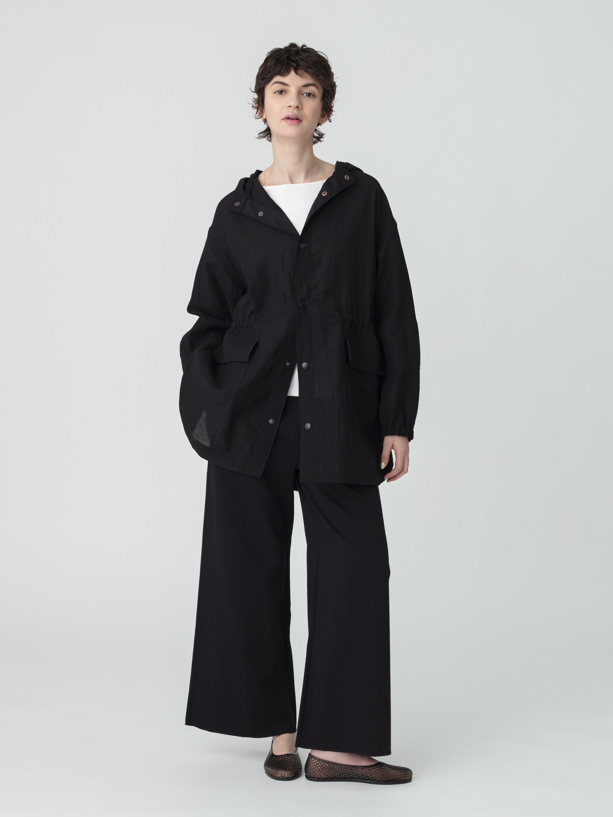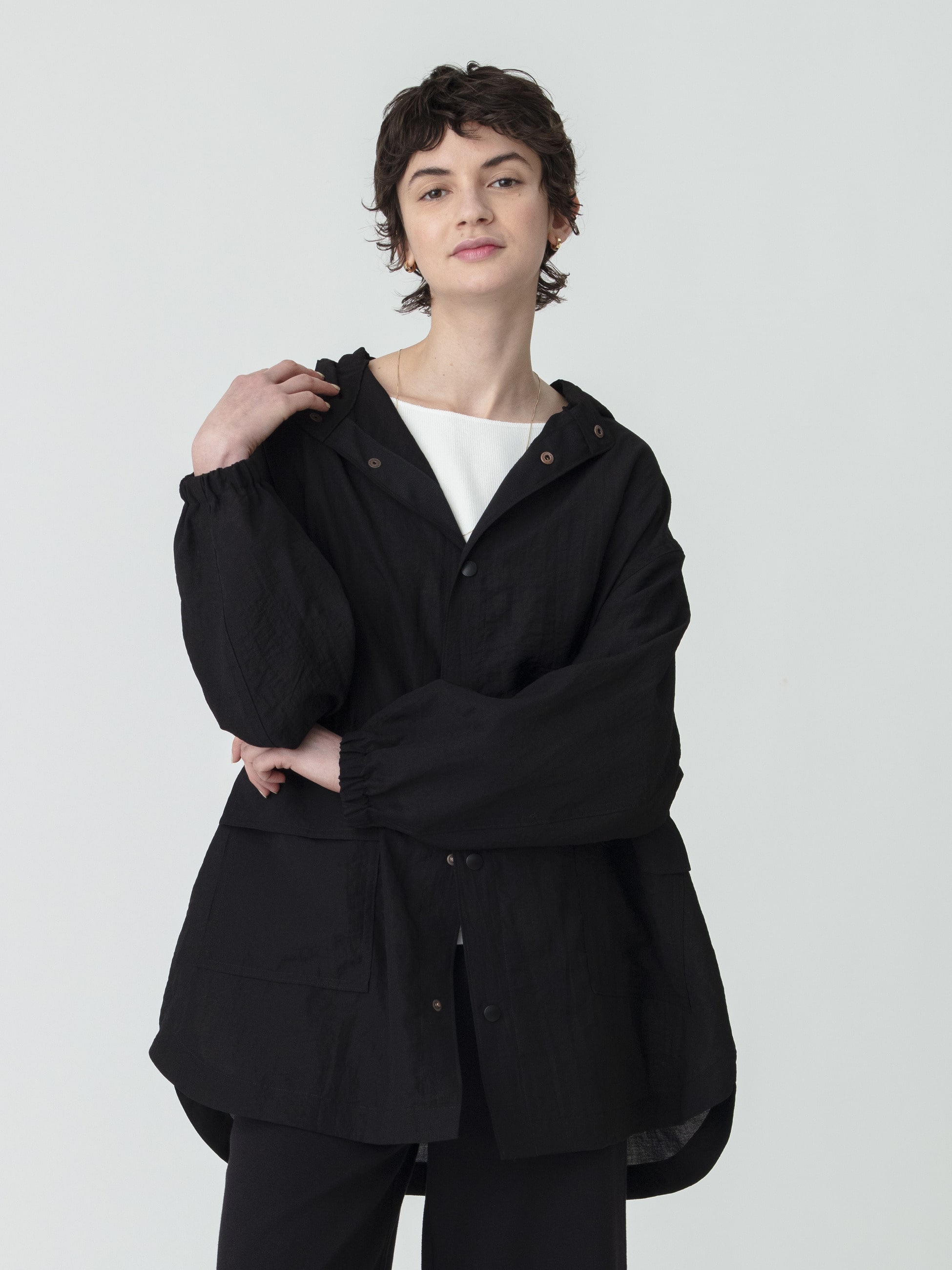 - ミリタリーコートのディティールを落とし込んだシアー素材のフーディージャケットです。軽やかな生地感が特徴で、暖かいシーズンはライトアウターとして、寒いシーズンはレイヤードしたスタイリングも様になるアイテムです。