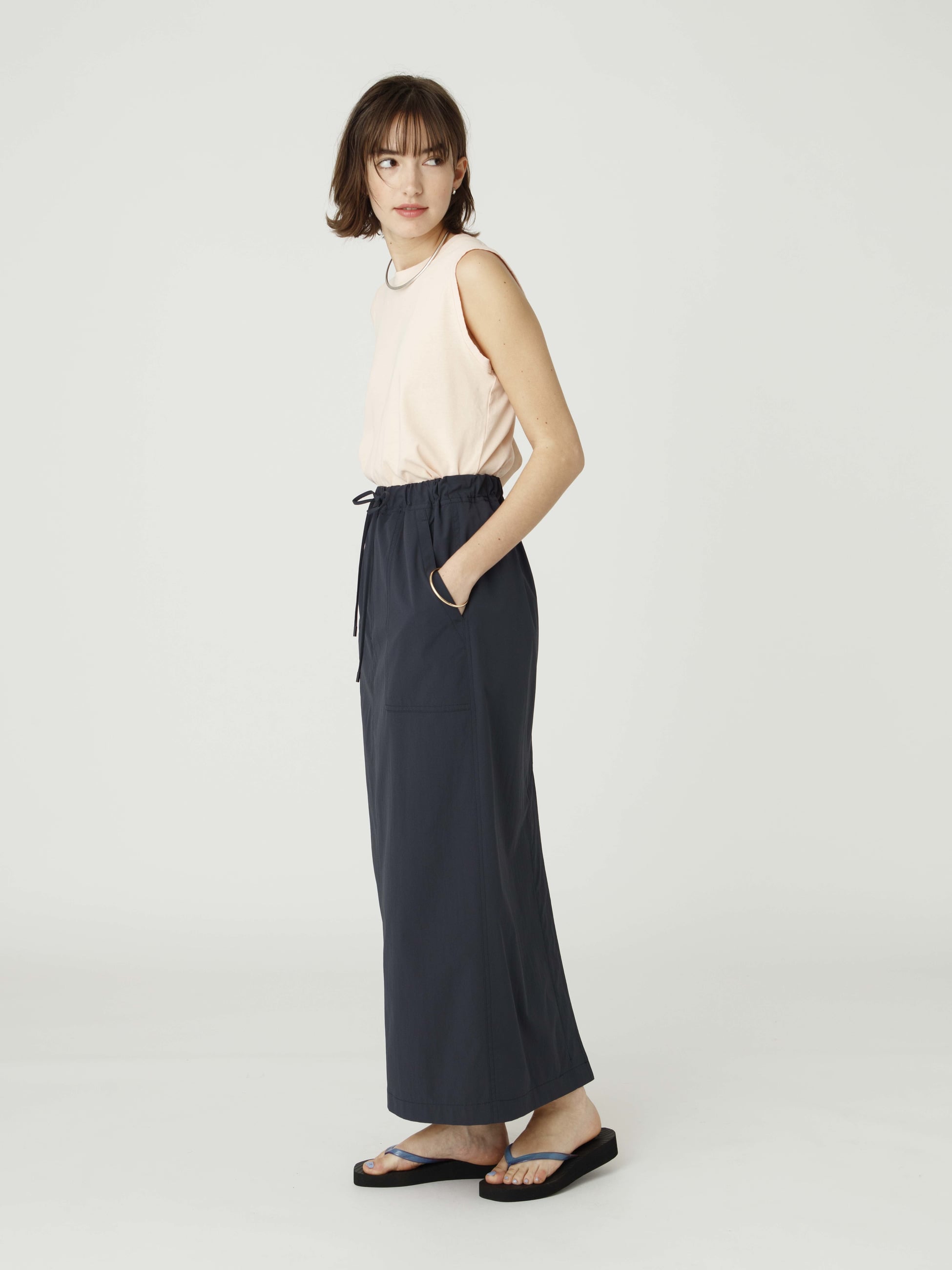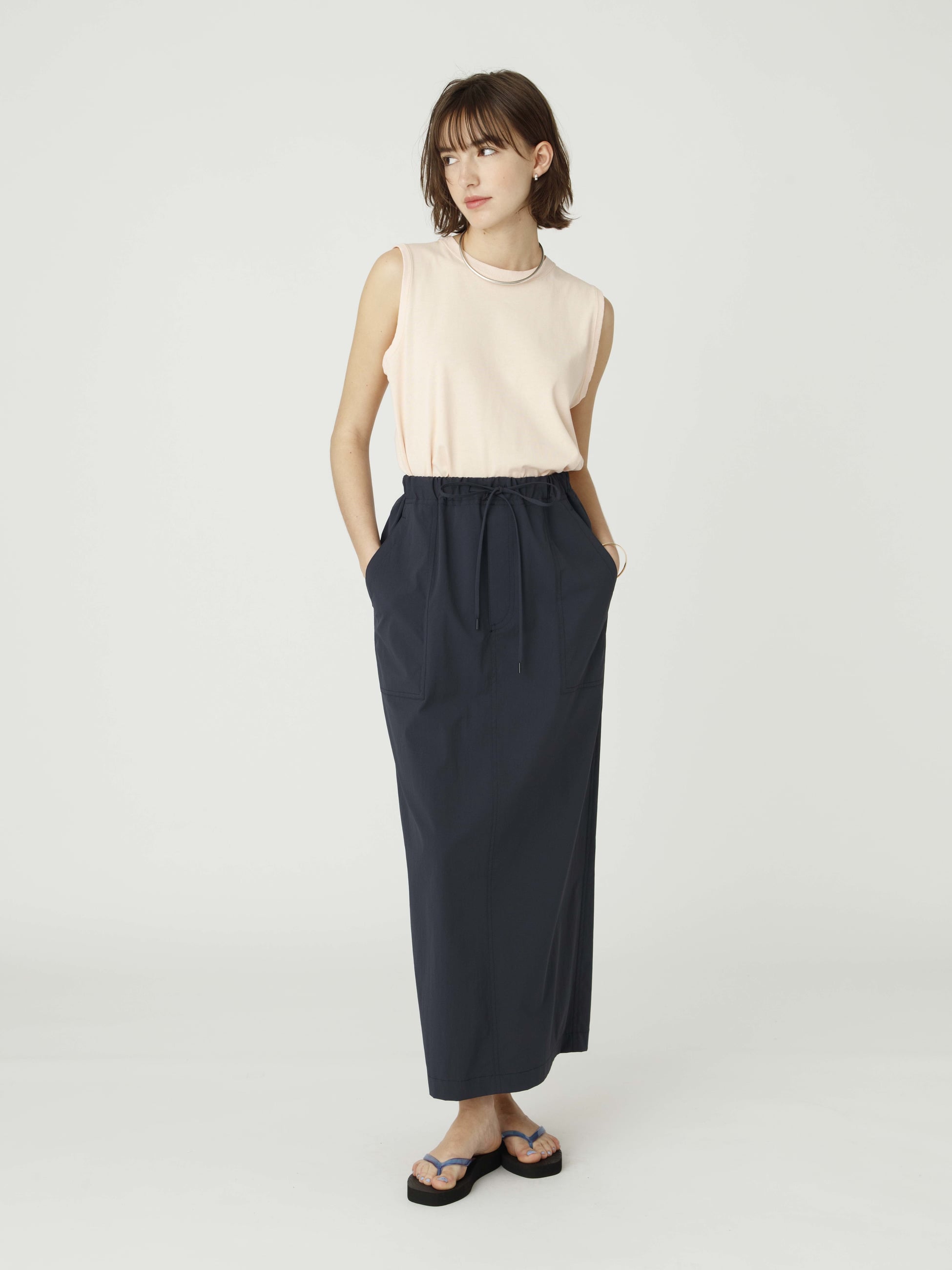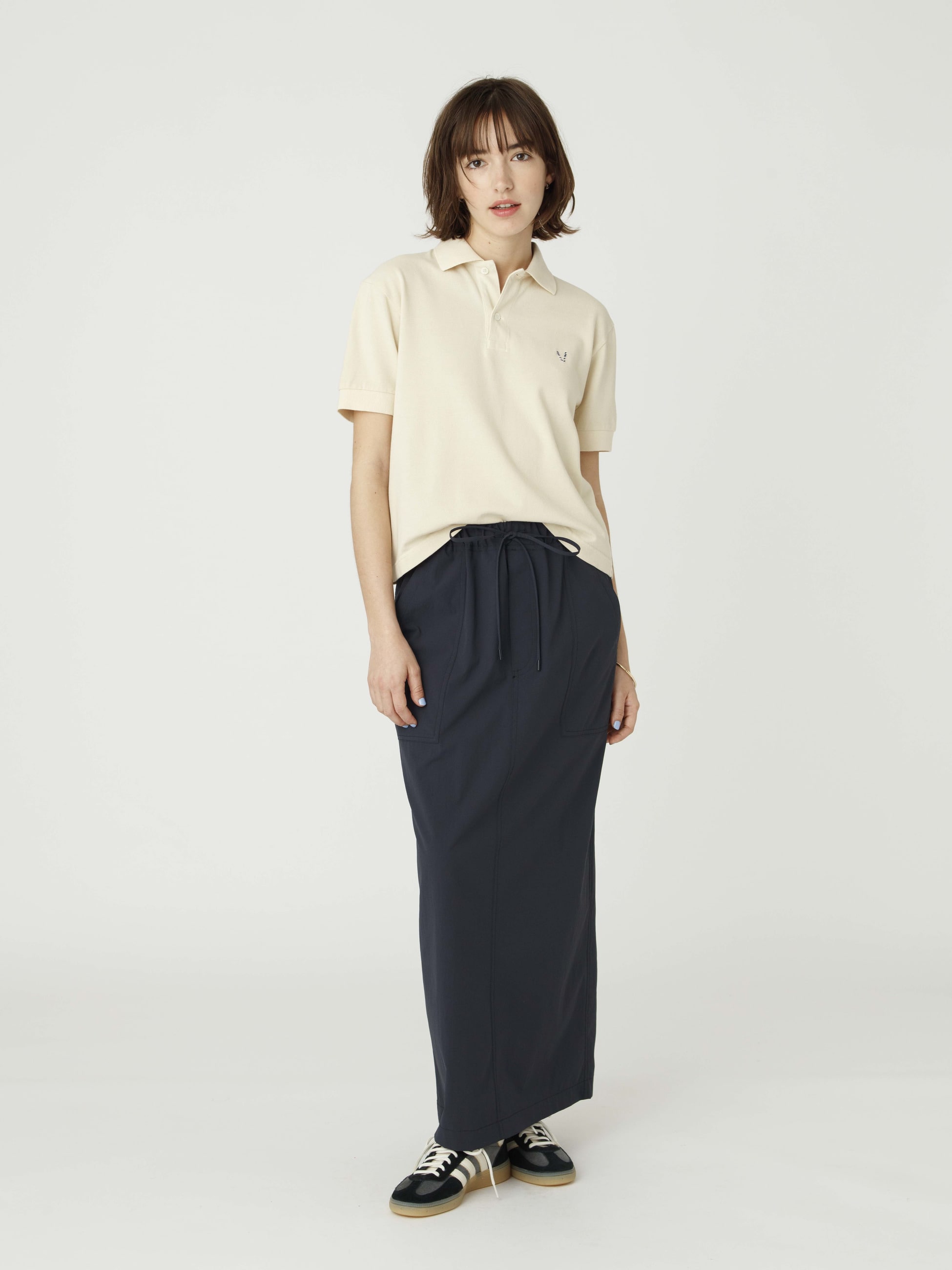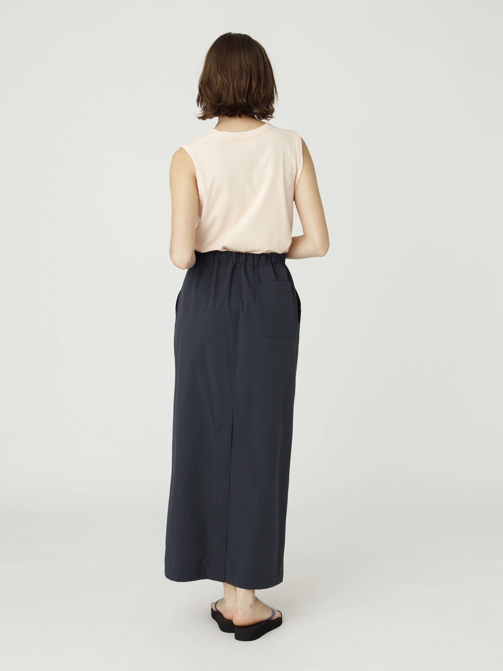 - 程よくストレッチの効いたタイプライター素材のスカートは、すっきりとした美しいシルエットに、アクティブなシーンにもマッチする動きやすさが特徴です。さらっと1枚で穿きやすく、深めに入れたバックスリットが抜け感を演出します。