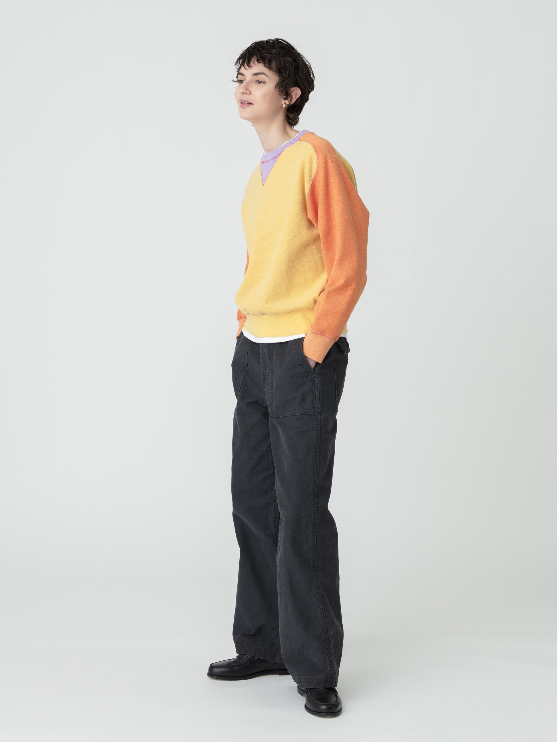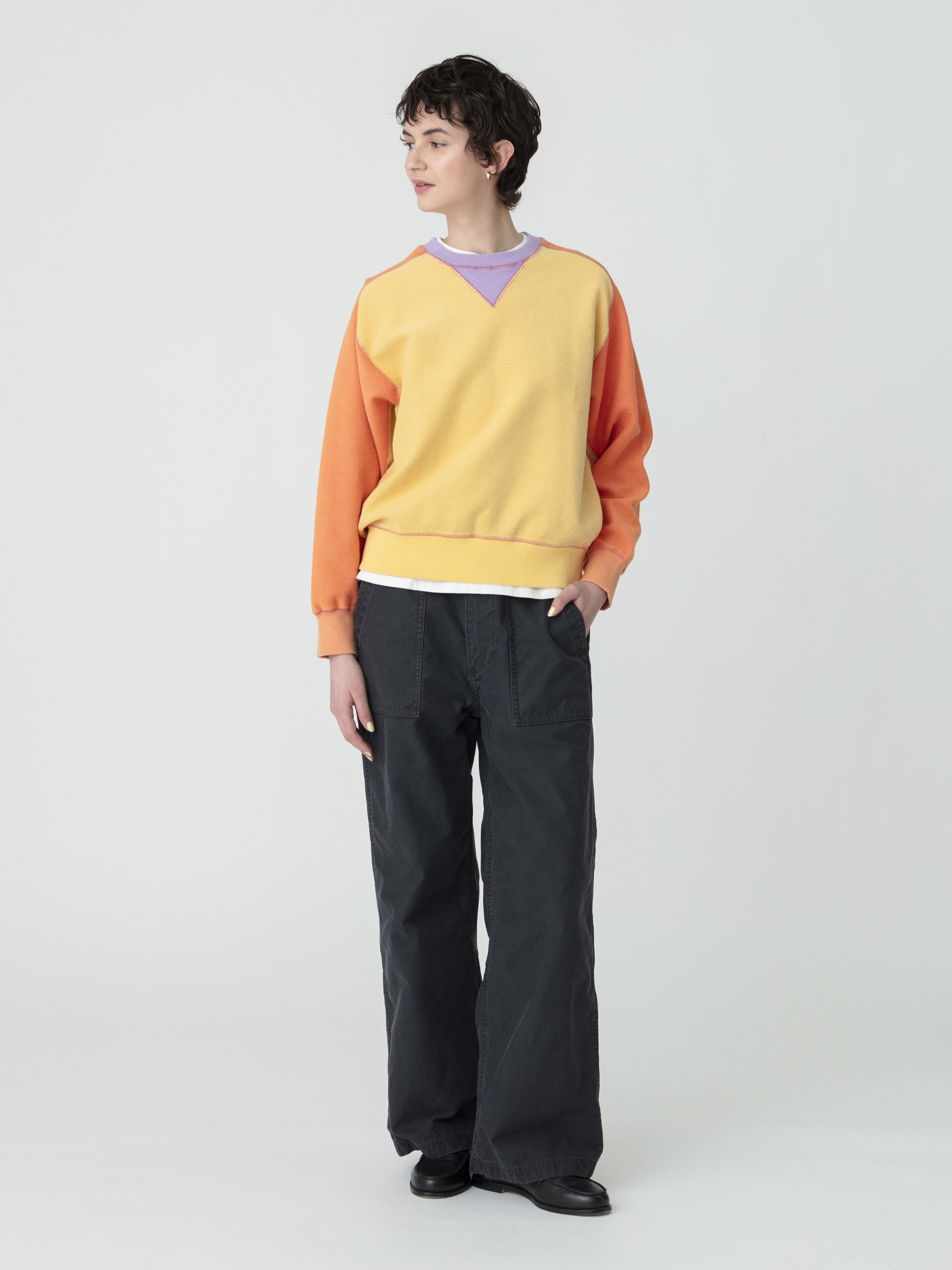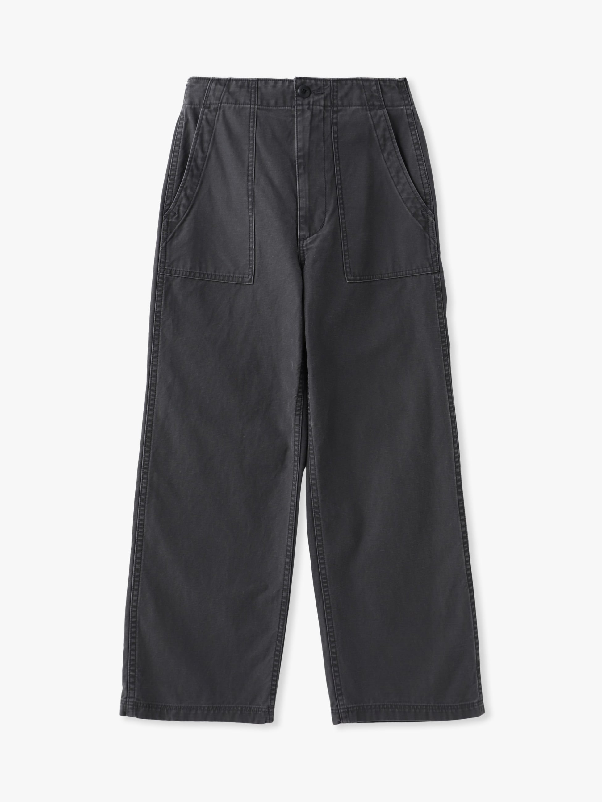 RHC ロンハーマンには欠かせないアイテムのひとつであるミリタリーパンツです。女性らしいシルエットを引き立てるパターンで仕立て、ストレスフリーで気負わずに穿けるよう、ウエストの後ろ側がゴム仕様なのも嬉しいポイント。オーガニックコットンを使用し、硫化染めとストーンバイオ加工で、経年したようなビンテージの風合いを表現した1本です。
