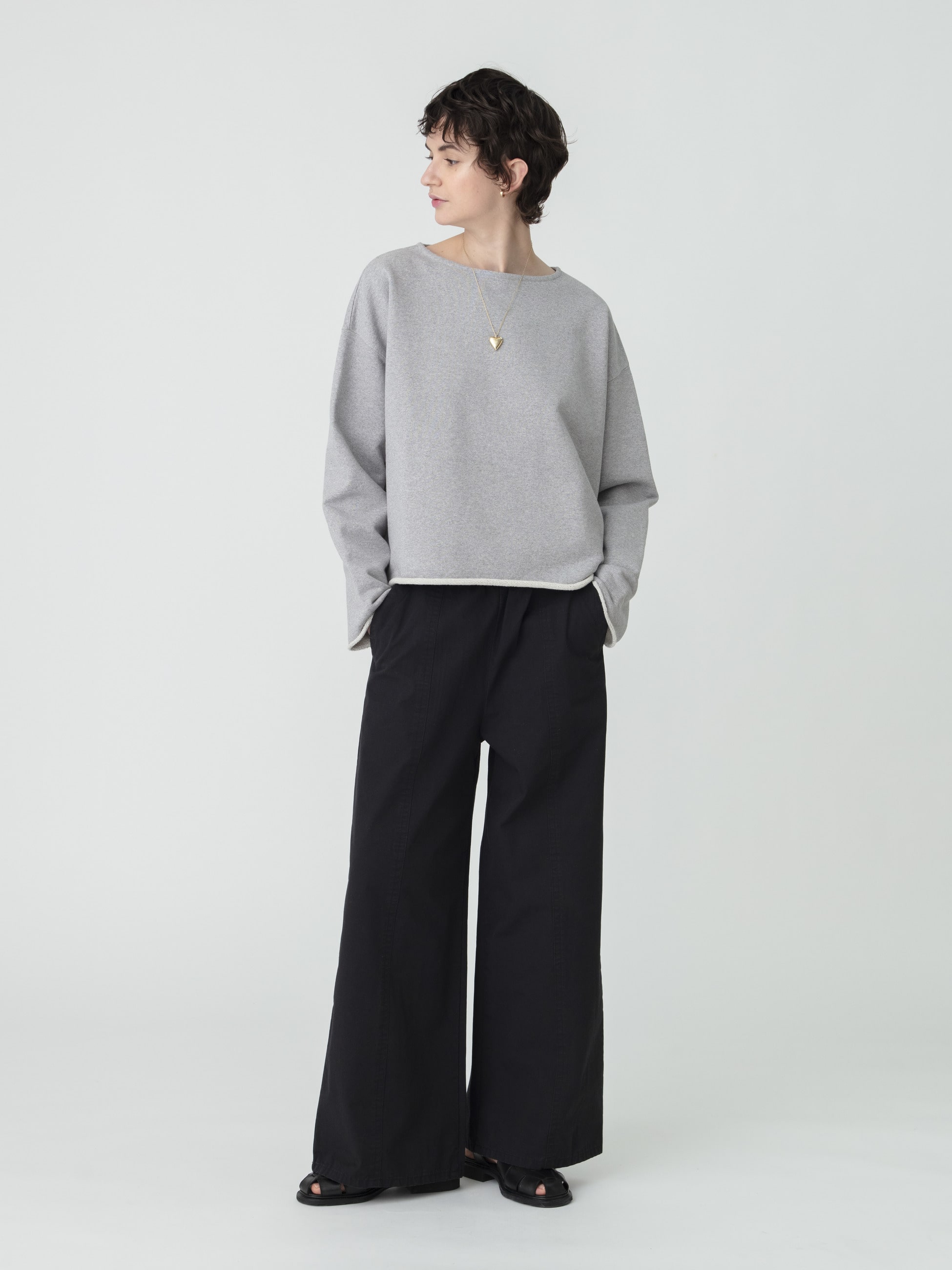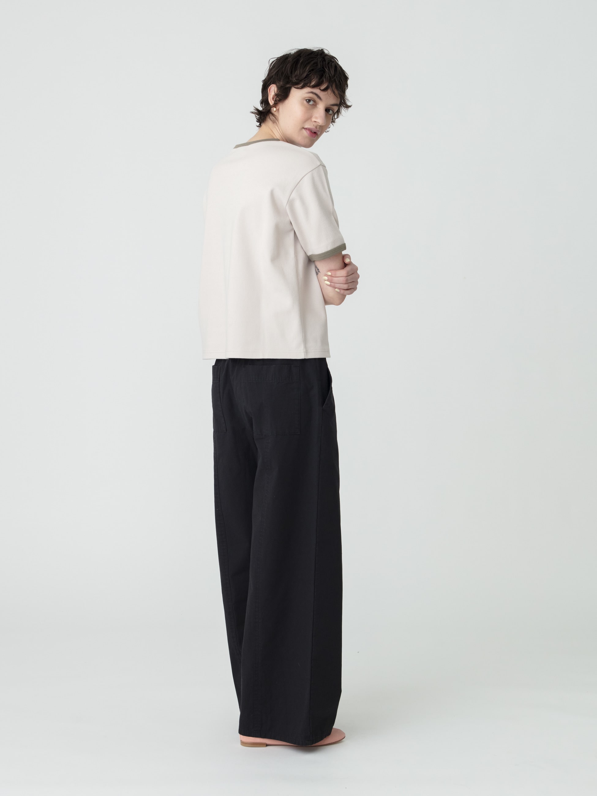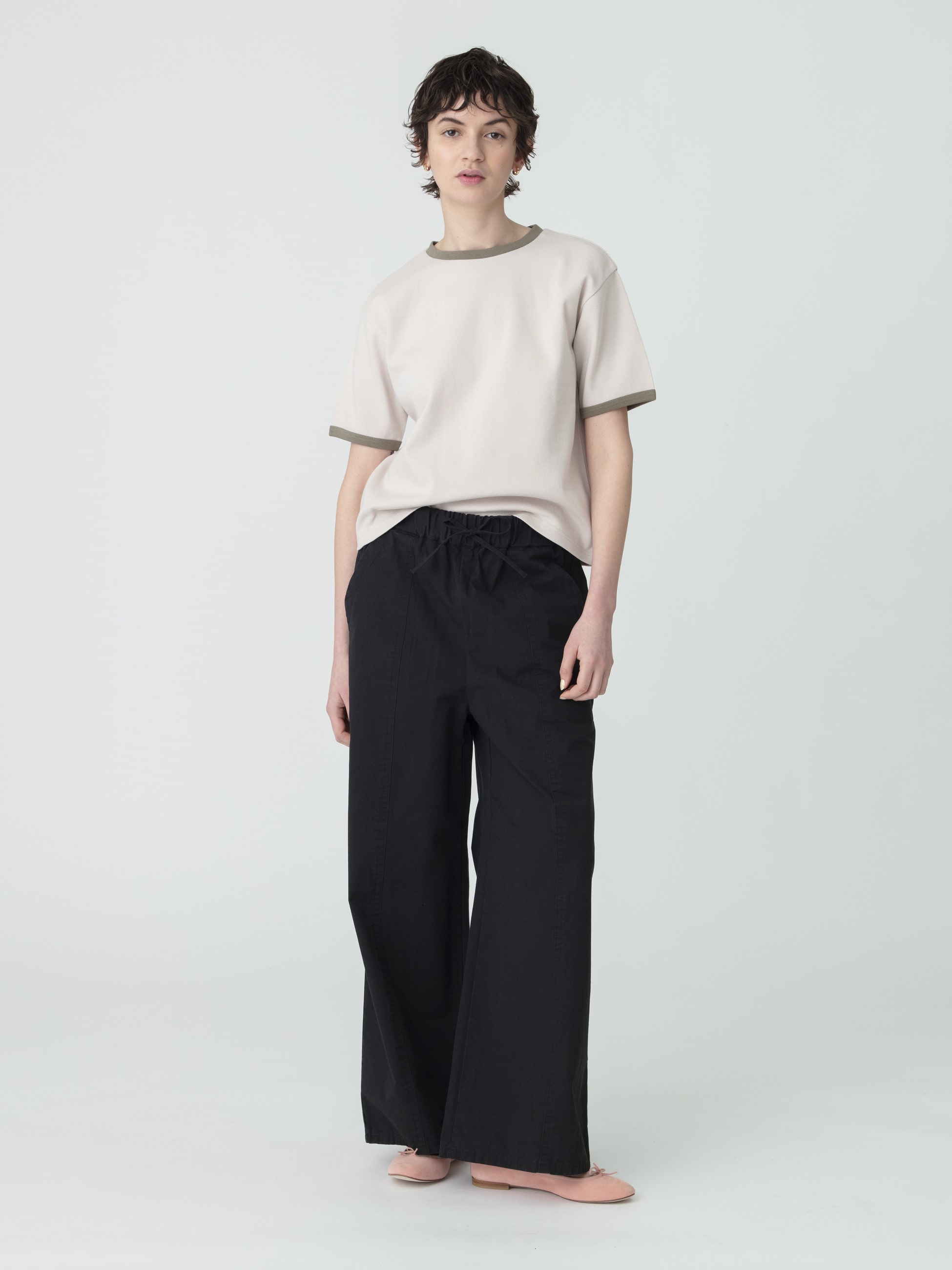 - 曲線的なカーヴィーなシルエットながら、カジュアルにも綺麗めにも寄りすぎず、どんなアイテムとも合わせやすいイージーパンツです。軽やかに穿いていただける生地感で、肌離れの良いルーズフィット。ウエストのドローストリングで腰位置の微調整が可能です。足元はサンダル、スニーカーどちらとも相性抜群で、幅広いスタイリングに活躍します。