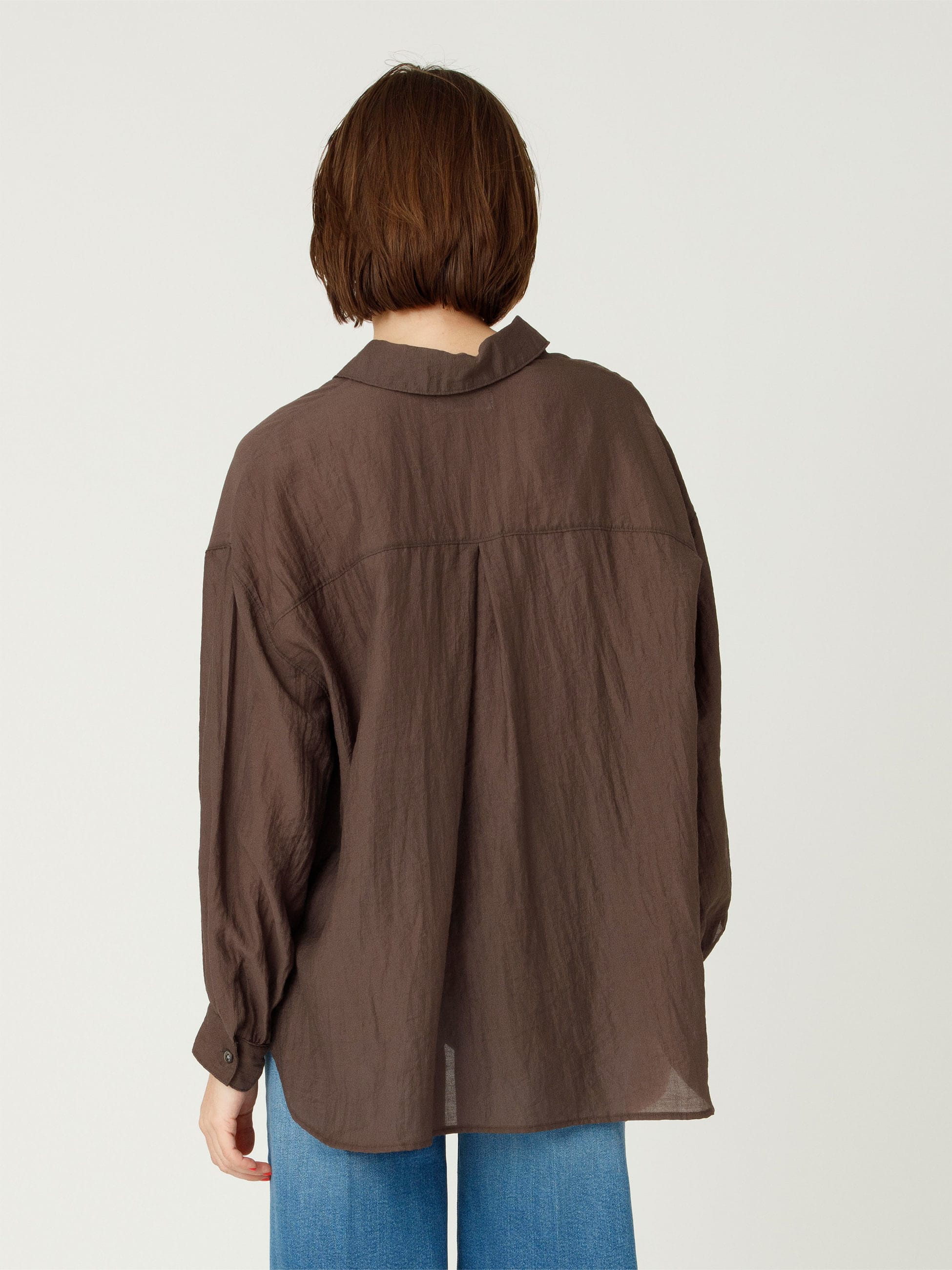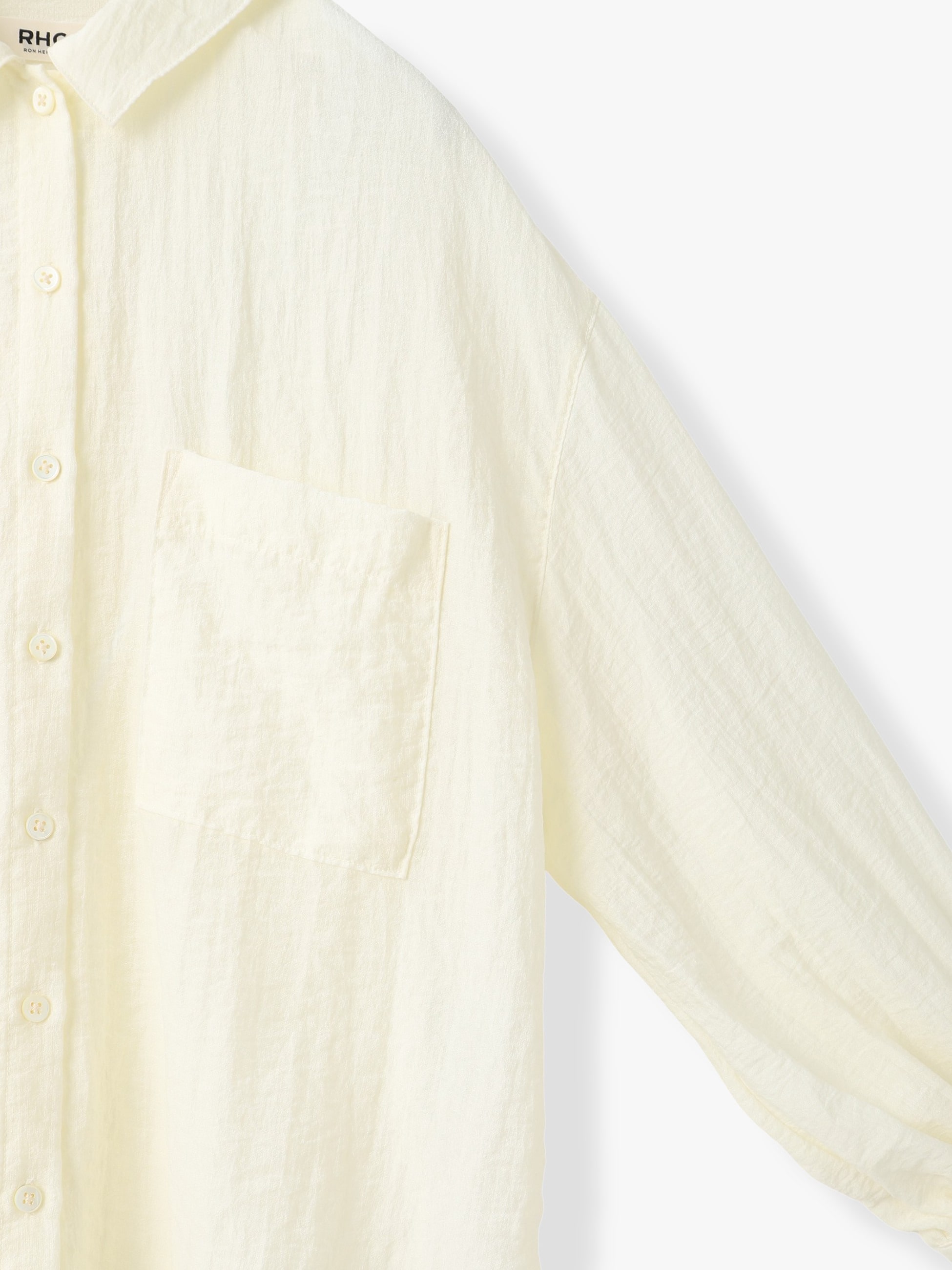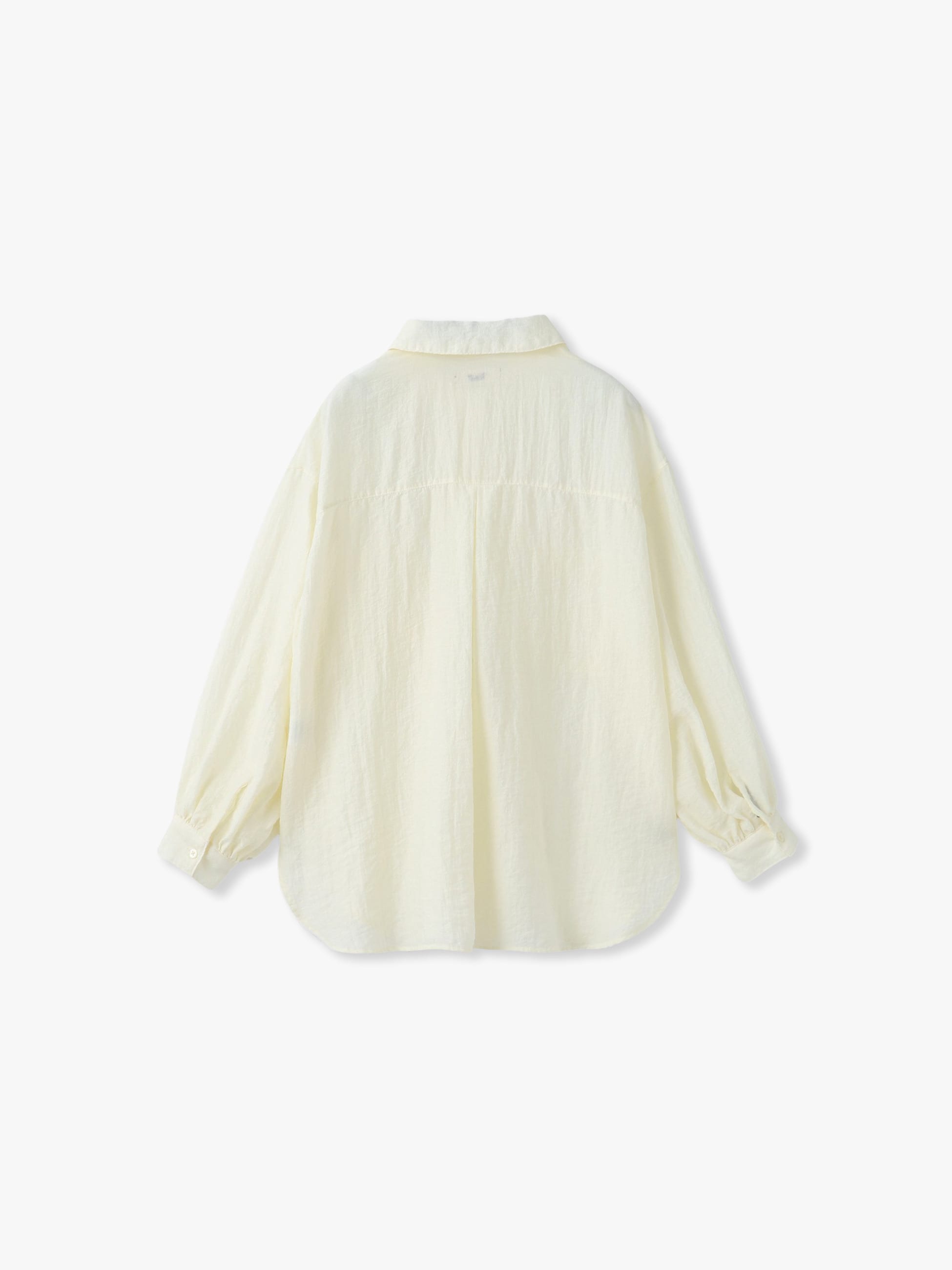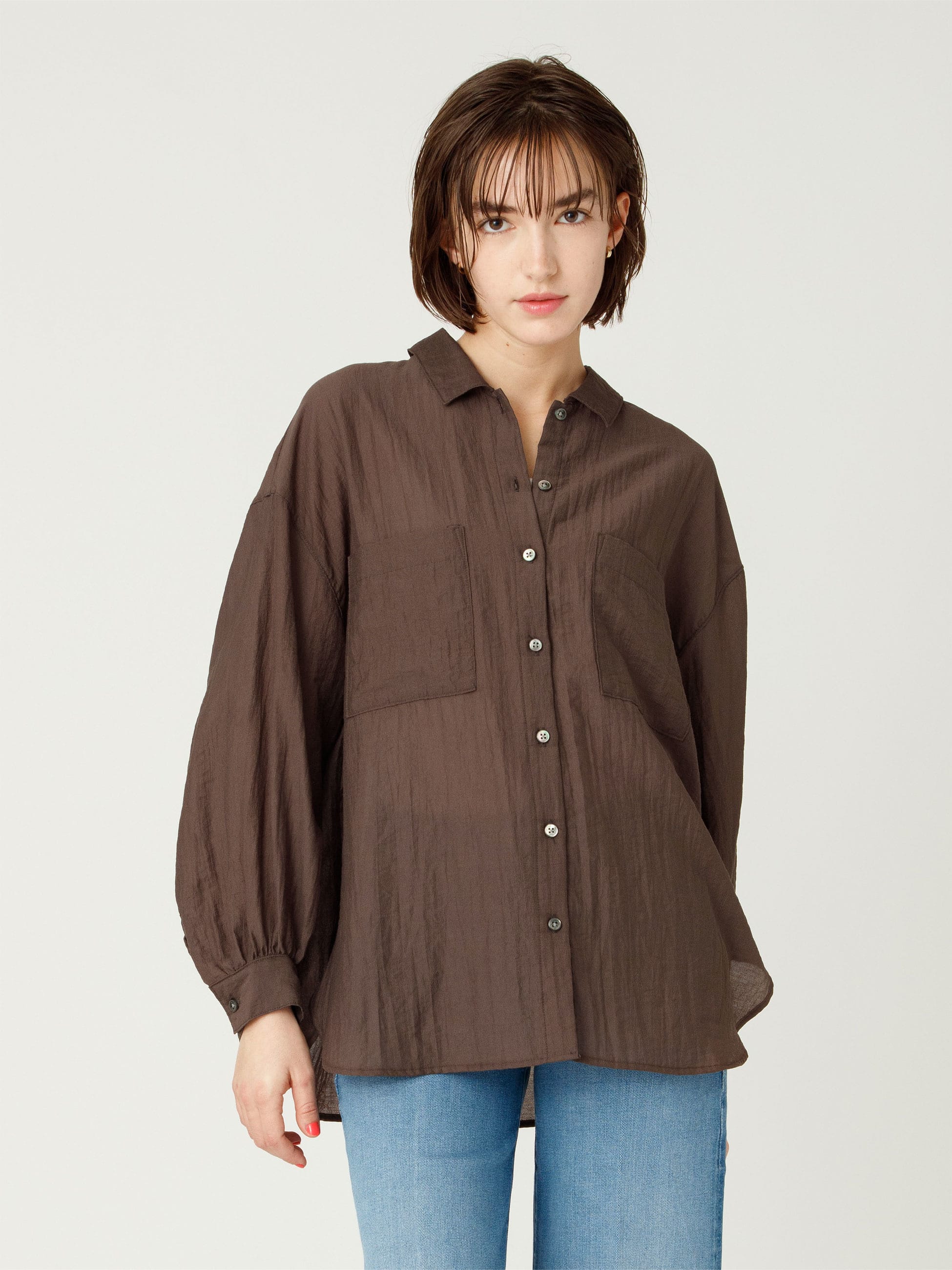 上品な透け感のあるシアーシャツは、オーバーサイズシルエットで、肌離れもよく、軽やかな着心地です。ナチュラルでヘルシーなアイボリーとブラウンの2色展開で、キャミソールやタンクトップの上からさっと羽織れ、日差しや冷房対策にもおすすめです。