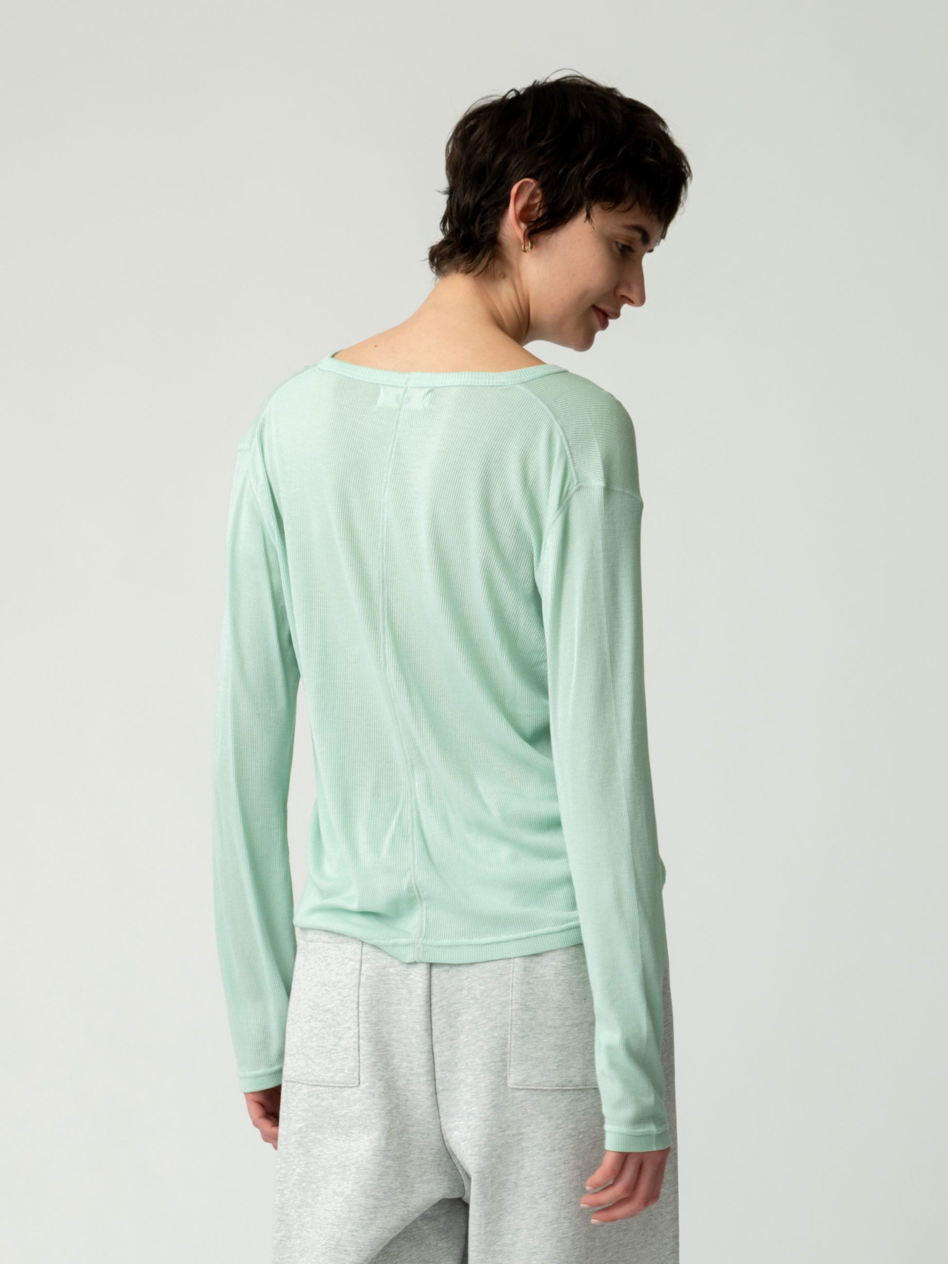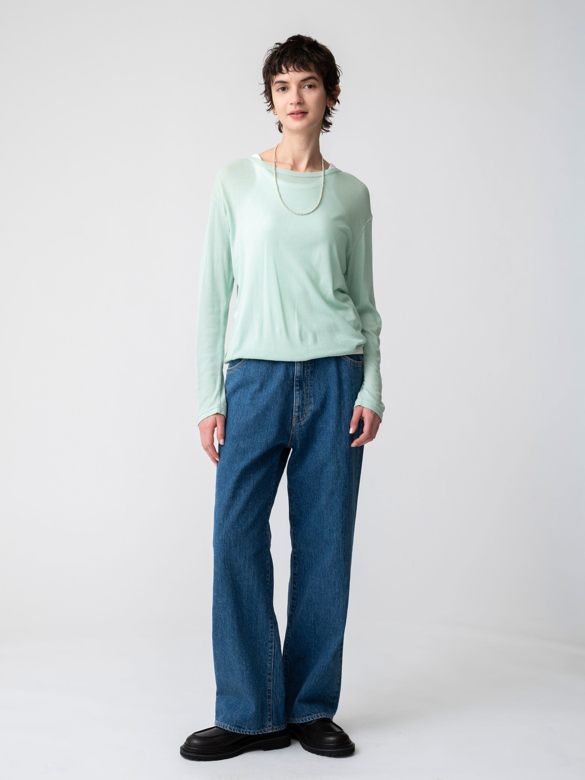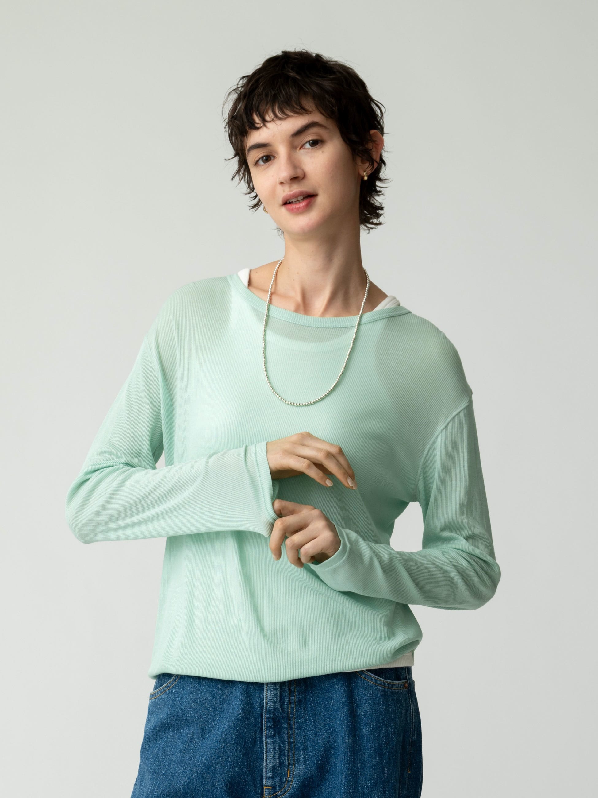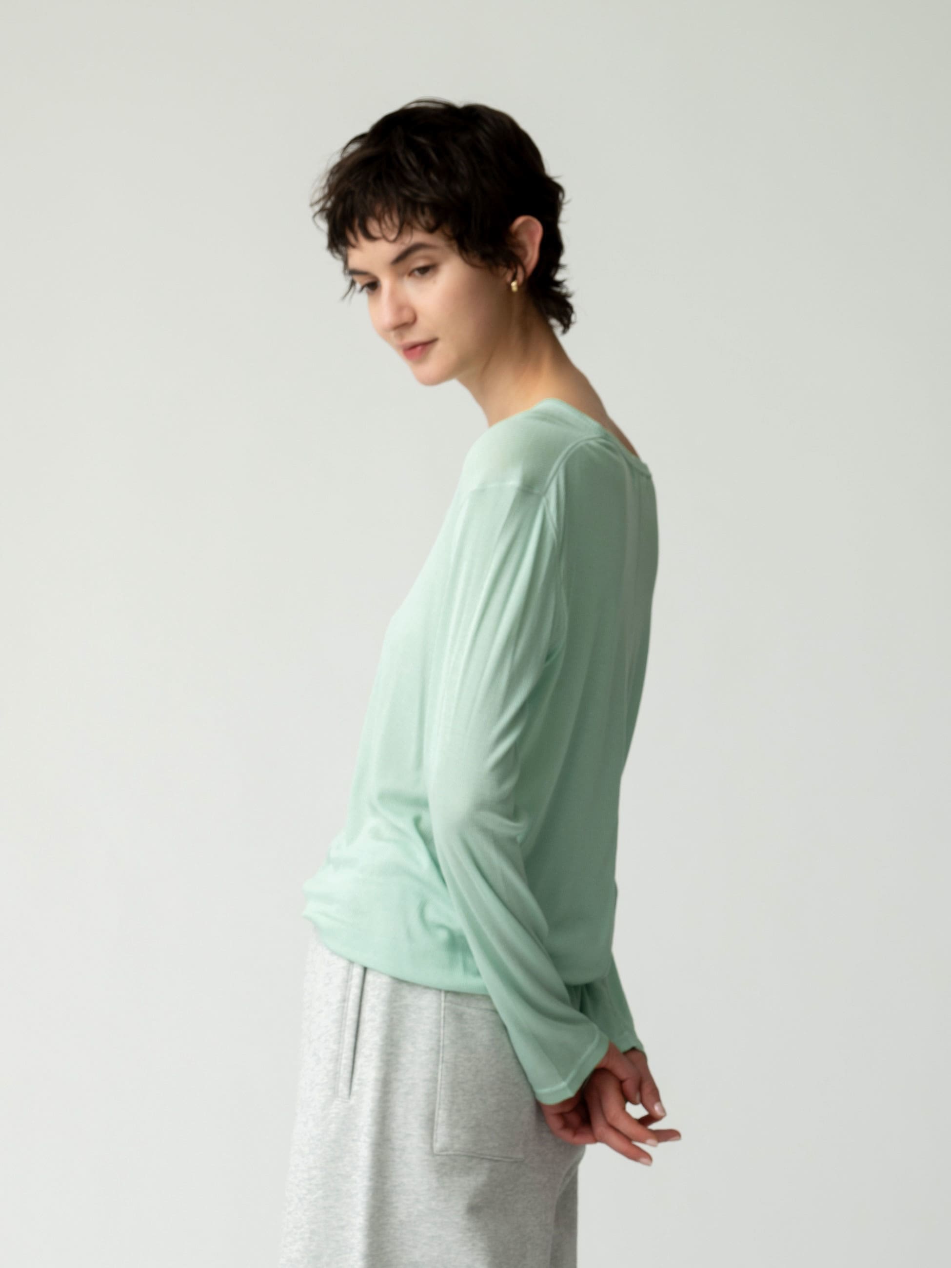 ナチュラルな透け感が春らしいプルオーバーは、ビスコースとコットンの混紡素材で仕立てた、やさしく滑らかな肌触りが心地よい一枚です。カラー違いの2枚を重ねたり、インナーとしてスウェットやニットの袖口から色を覗かせたり、あらゆるスタイルに着回しのきく万能アイテムです。