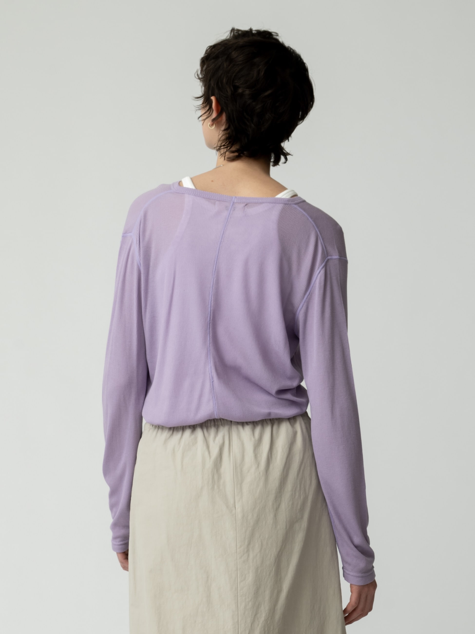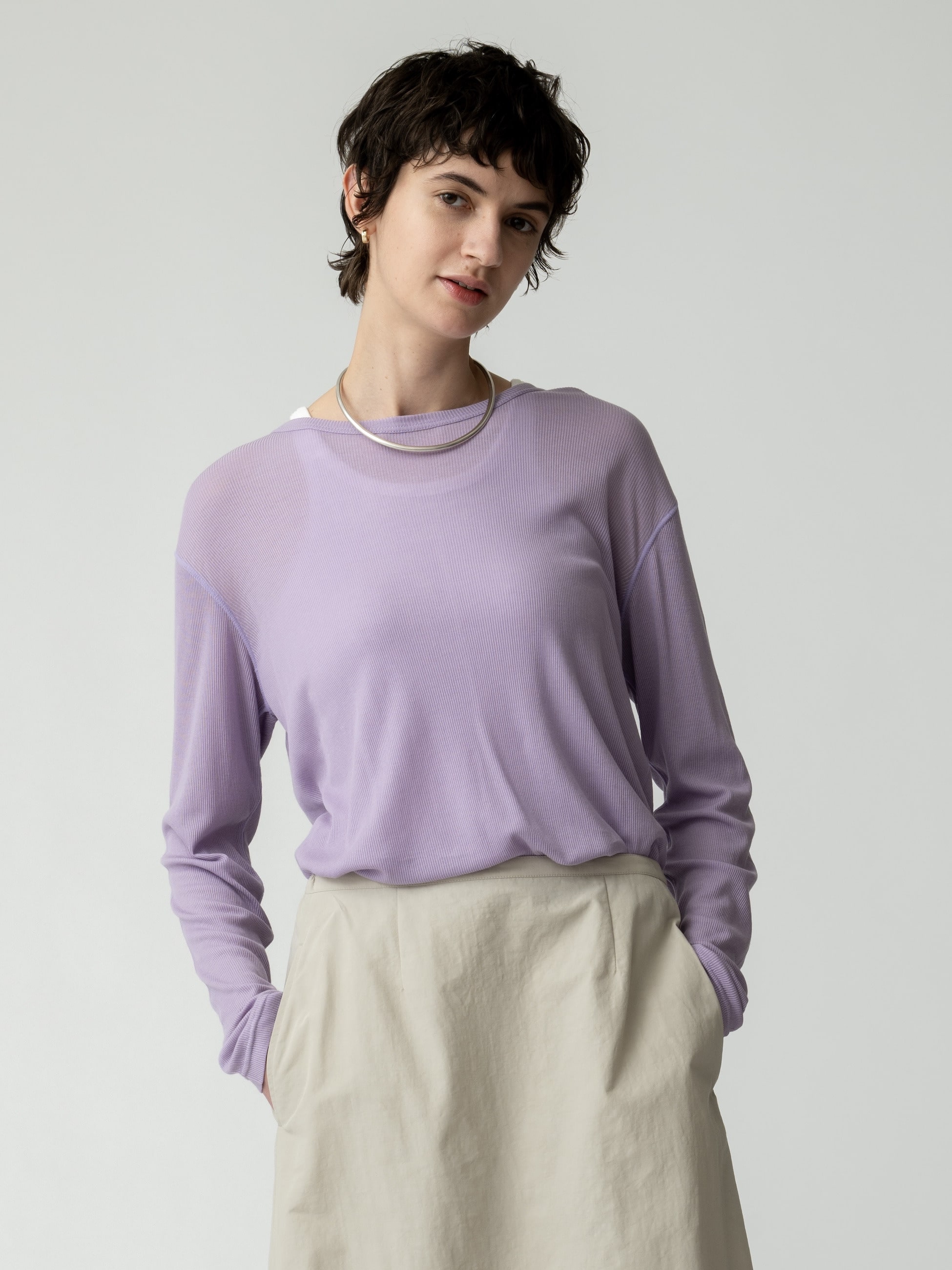 ナチュラルな透け感が春らしいプルオーバーは、ビスコースとコットンの混紡素材で仕立てた、やさしく滑らかな肌触りが心地よい一枚です。カラー違いの2枚を重ねたり、インナーとしてスウェットやニットの袖口から色を覗かせたり、あらゆるスタイルに着回しのきく万能アイテムです。