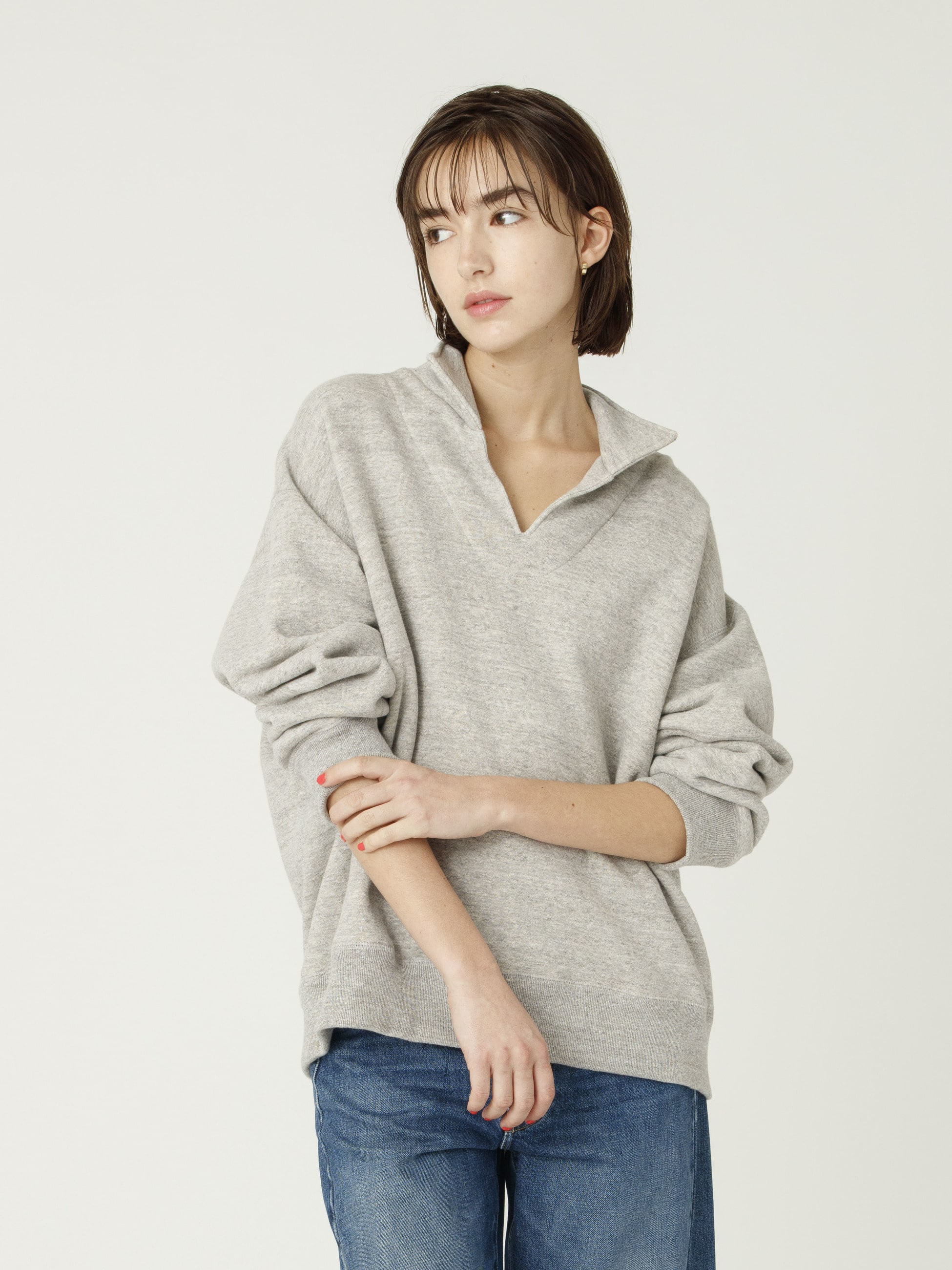 - 旧式の機械でじっくりと編みたてられた、ビンテージのような独特の風合いを感じる吊り裏毛のスウェットシリーズが登場です。スキッパーネックのプルオーバーは、首元に女性らしい抜け感を演出し、綺麗めなパンツを合わせてもサマになる1枚です。デイリーに着まわしても着崩れしにくい丈夫さも魅力のひとつです。同シリーズのベスト、パンツの展開もございます。