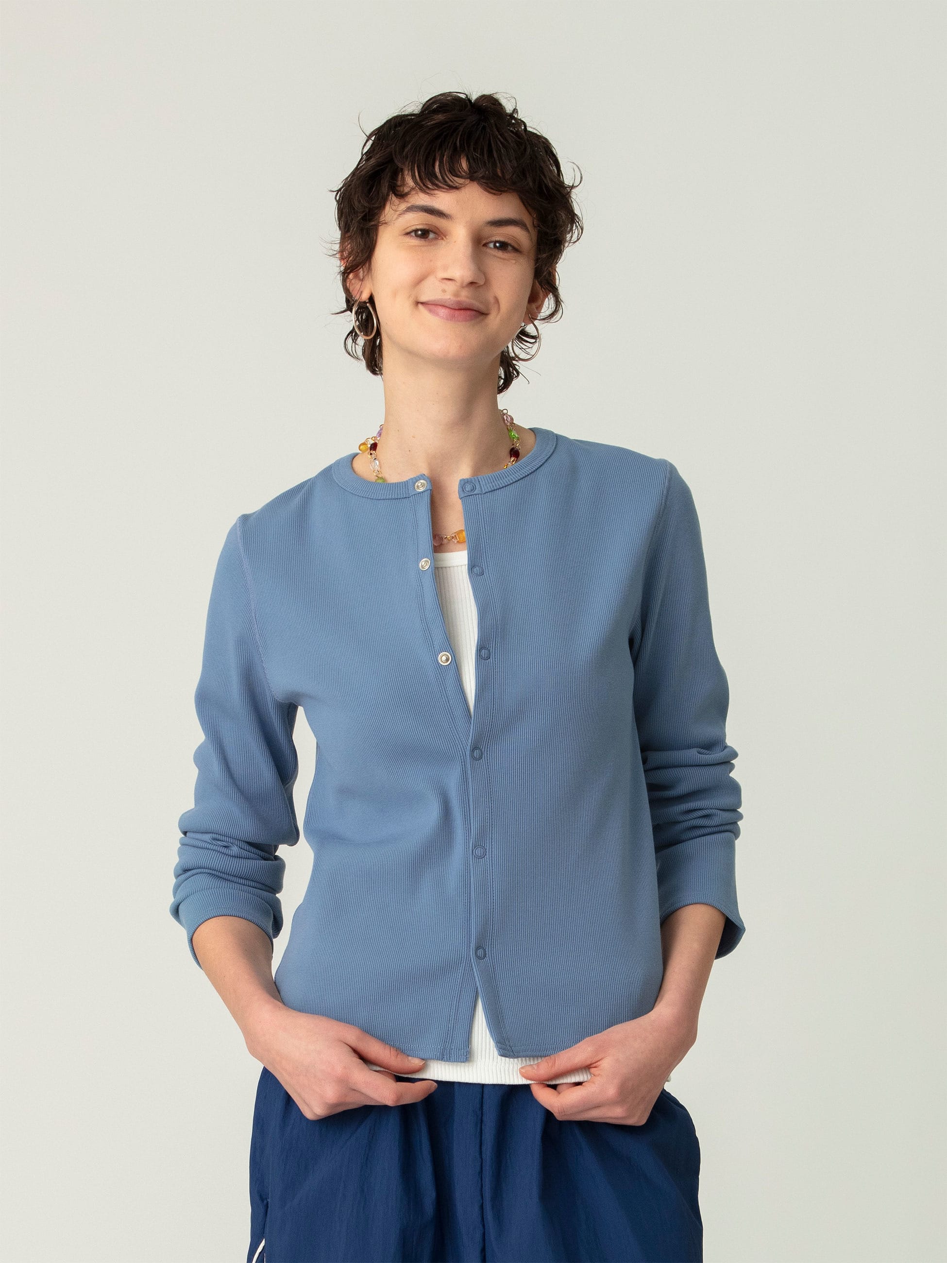 • リブ カーディガン(ホワイト/グリーン/ブルー) 詳細画像 blue