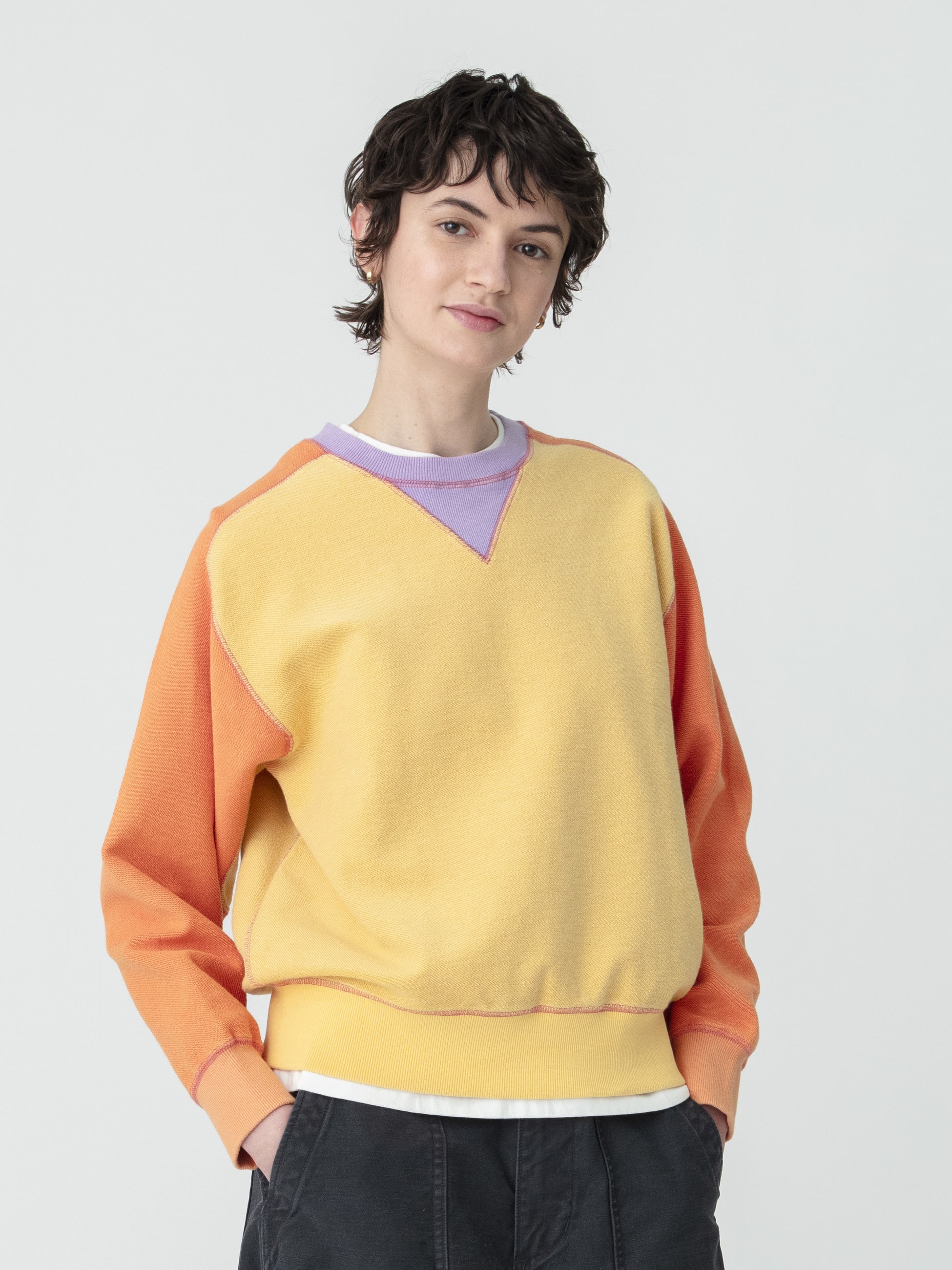 - 心躍るカラフルなクレイジーパターンが存在感抜群のスウェットトップスは、あえて裏毛のパイル地を表に配し、ユニークで表情豊かな1枚です。コットンを100%使用し、着心地も良く、シンプルになりがちなスウェットスタイルに、アクセントを添えてくれます。