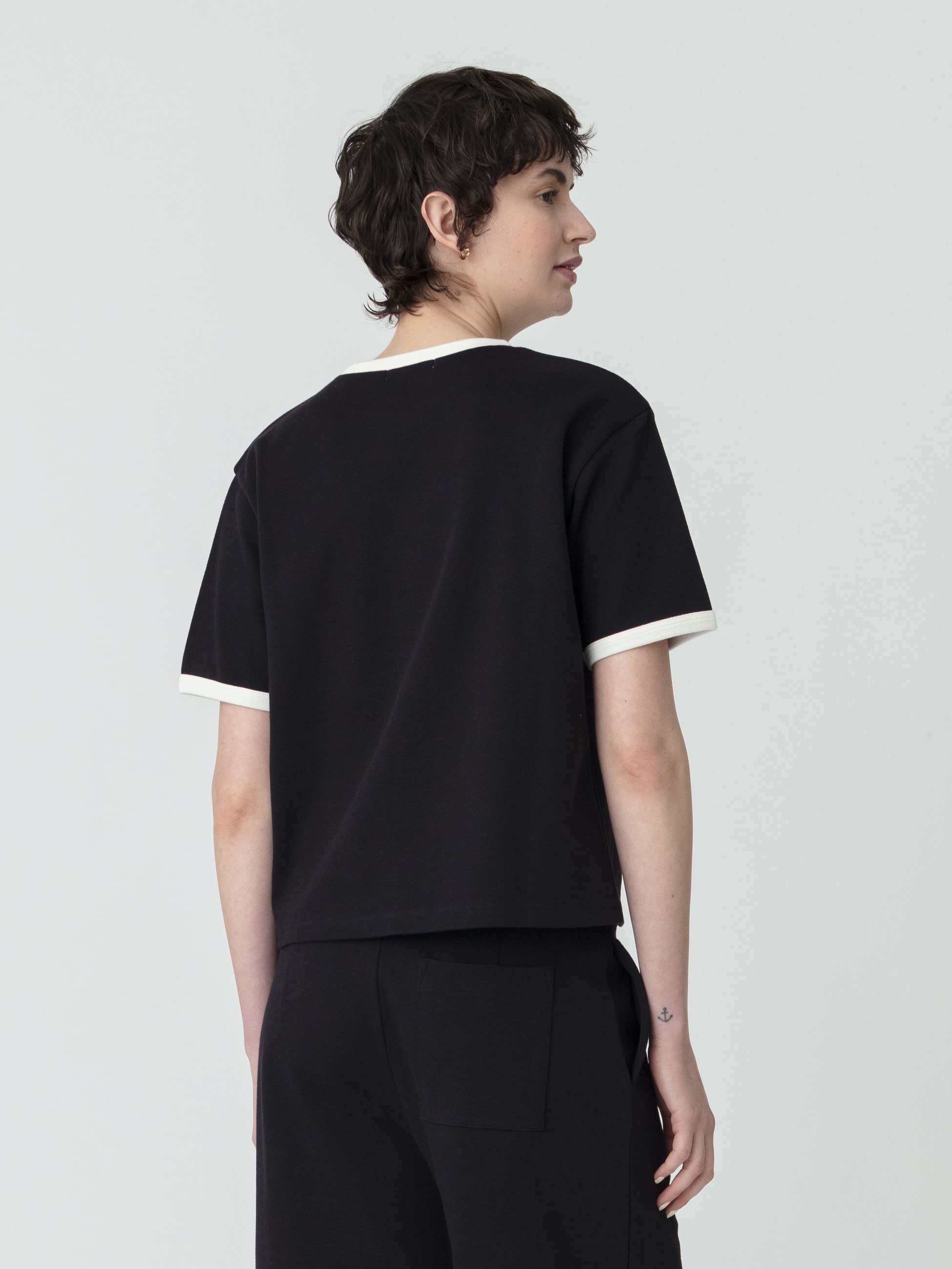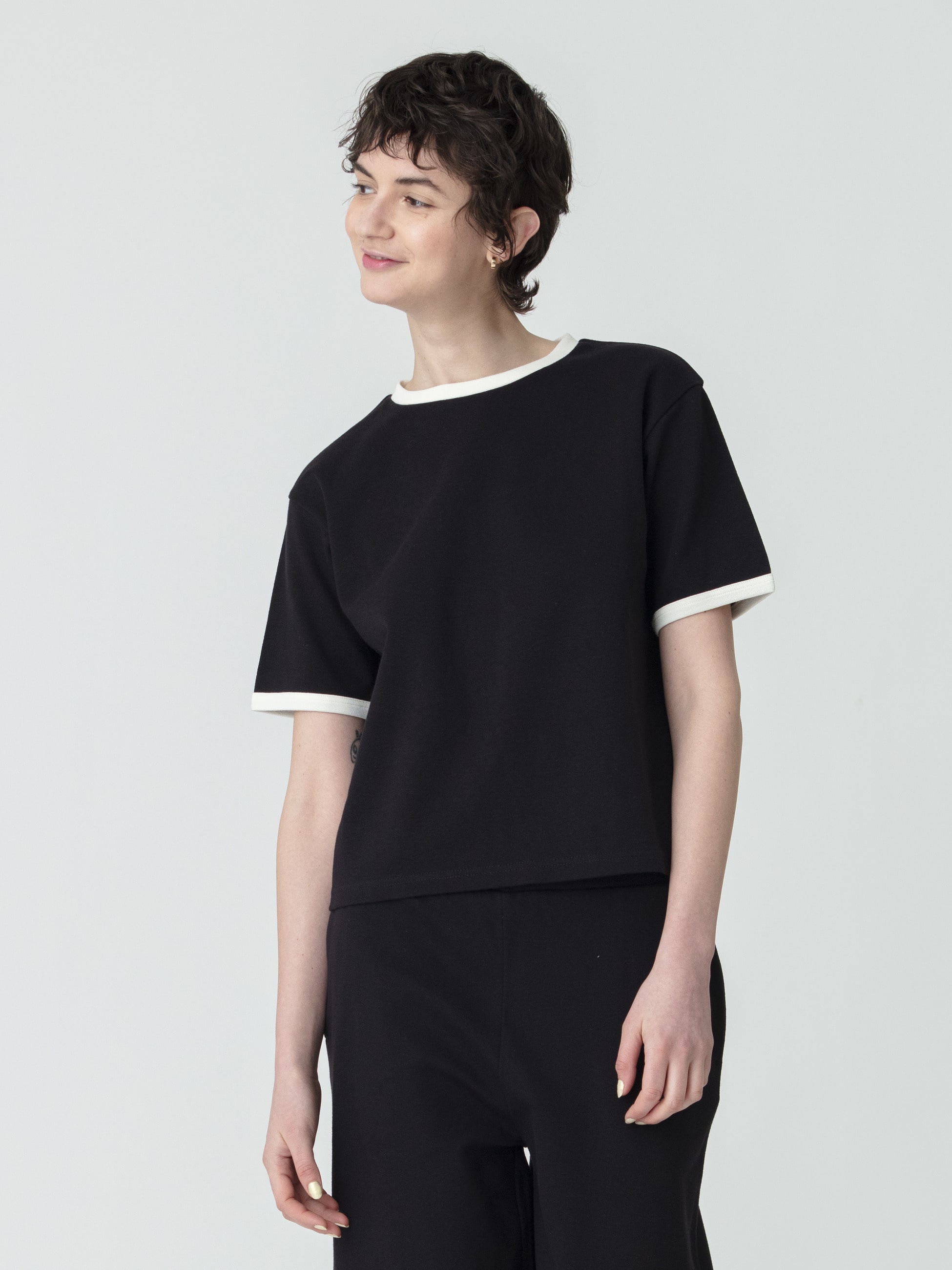 - ナチュラルなカラーのリンガーティーシャツは、コットンのさらっとした肌触りが心地よく、肌離れが良いマットな質感で、安心して着用いただける1枚。同シリーズのイージーワイドパンツとセットアップで、リラックス感のある着こなしも素敵です。トウモロコシやサトウキビなど、身の回りの植物から抽出されたデンプンを原料としたPLA(ポリ乳酸)を使用した、サスティナブルな素材で作られています。