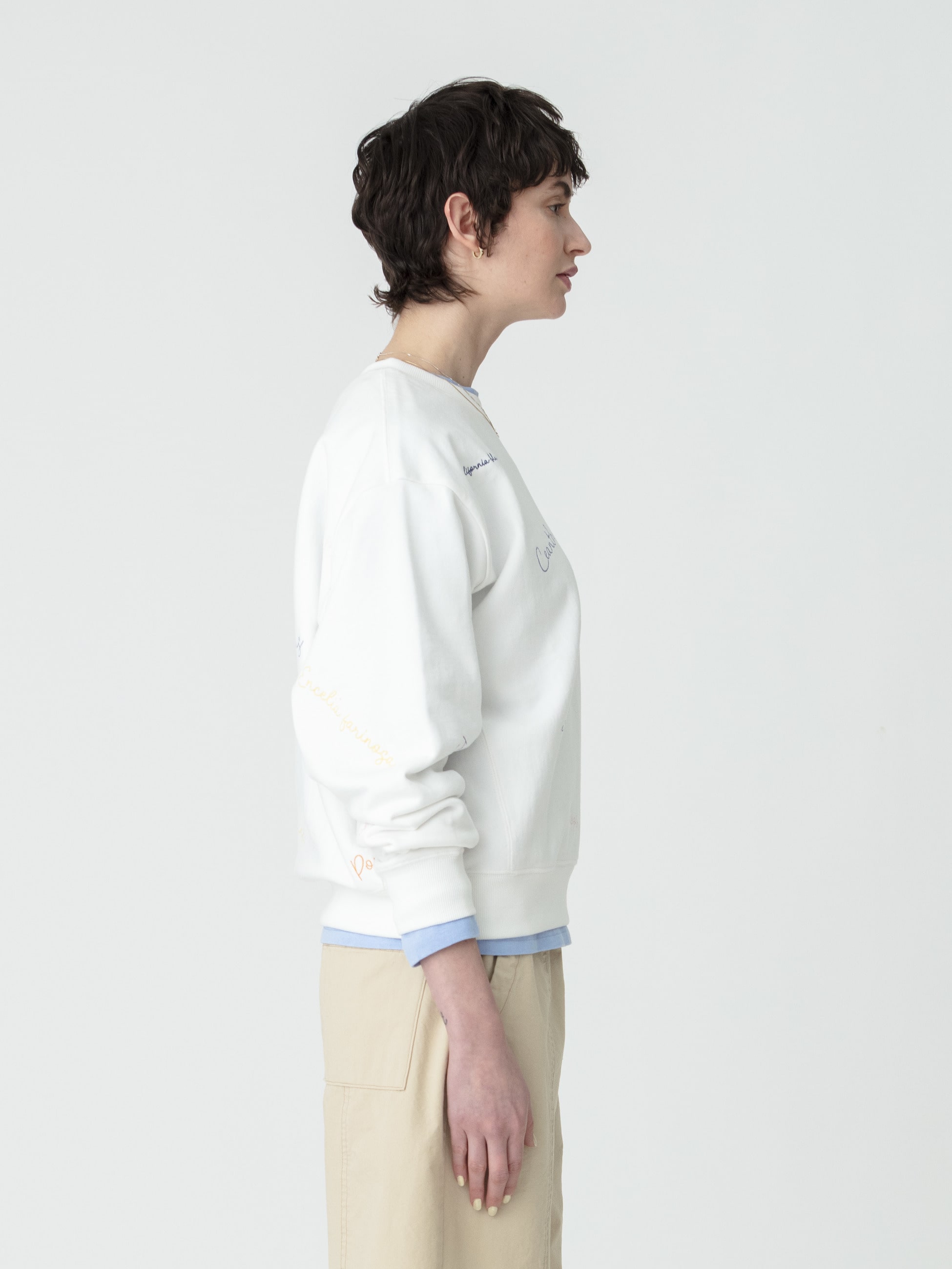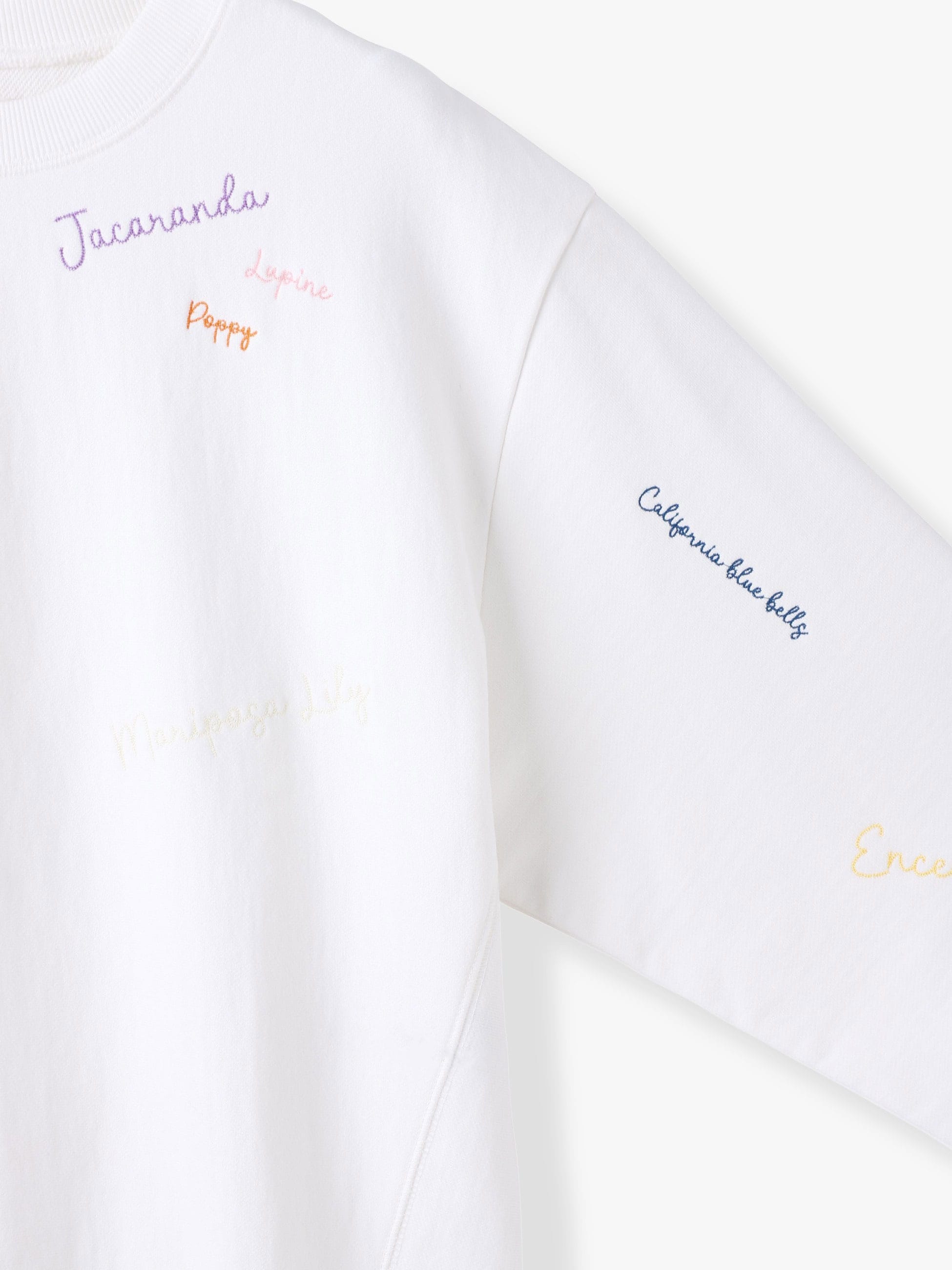 白地にカラフルな刺繍をあしらったスウェットプルオーバーは、カリフォルニアに生息する7種類のお花の名前とそれぞれが持つ色で刺繍を施しています。ややゆったりとしたシルエットで、カラーインナーをレイヤードしても様になり、RHC ロンハーマンらしいスタイリングをお楽しみいただけます。