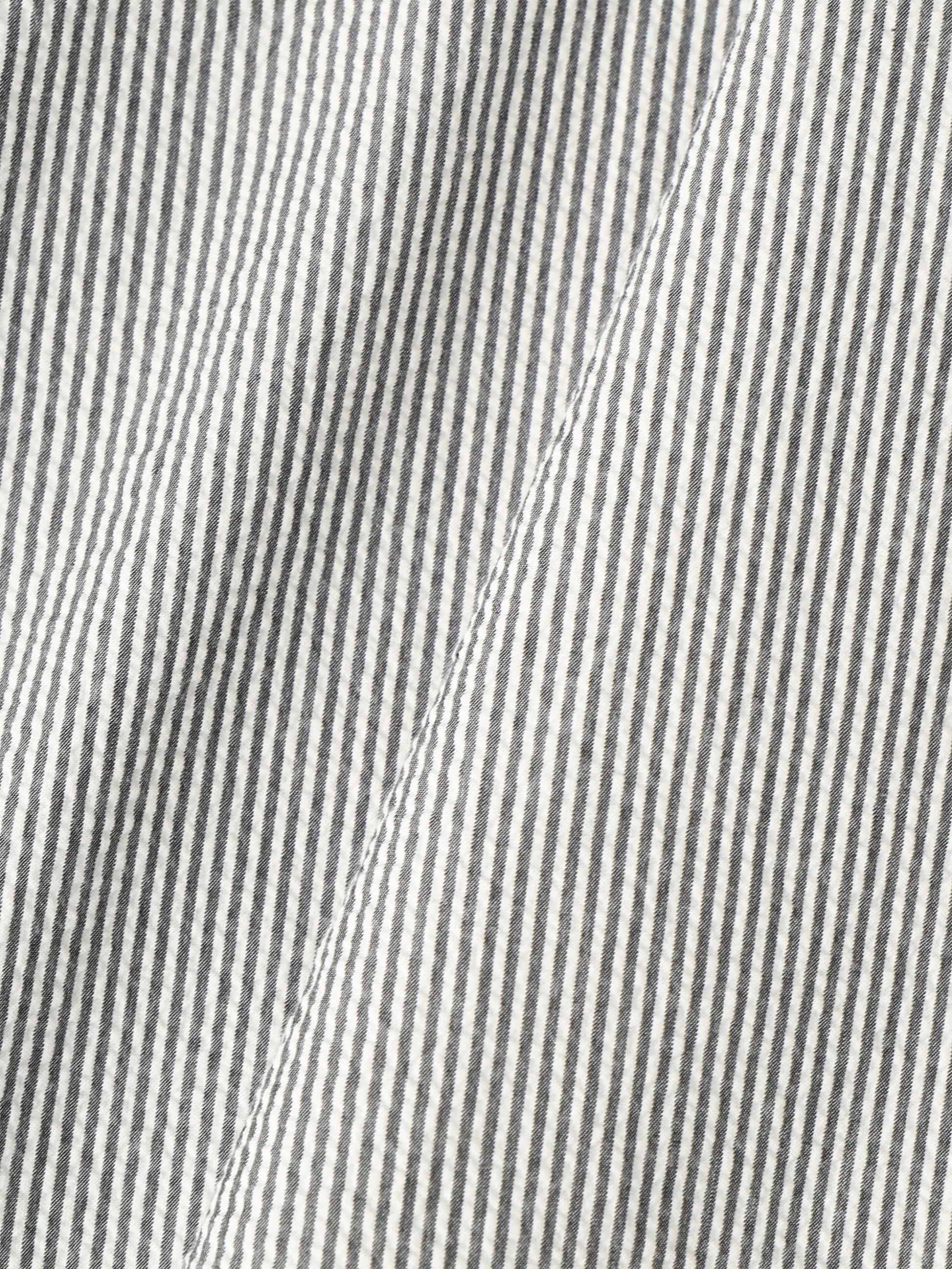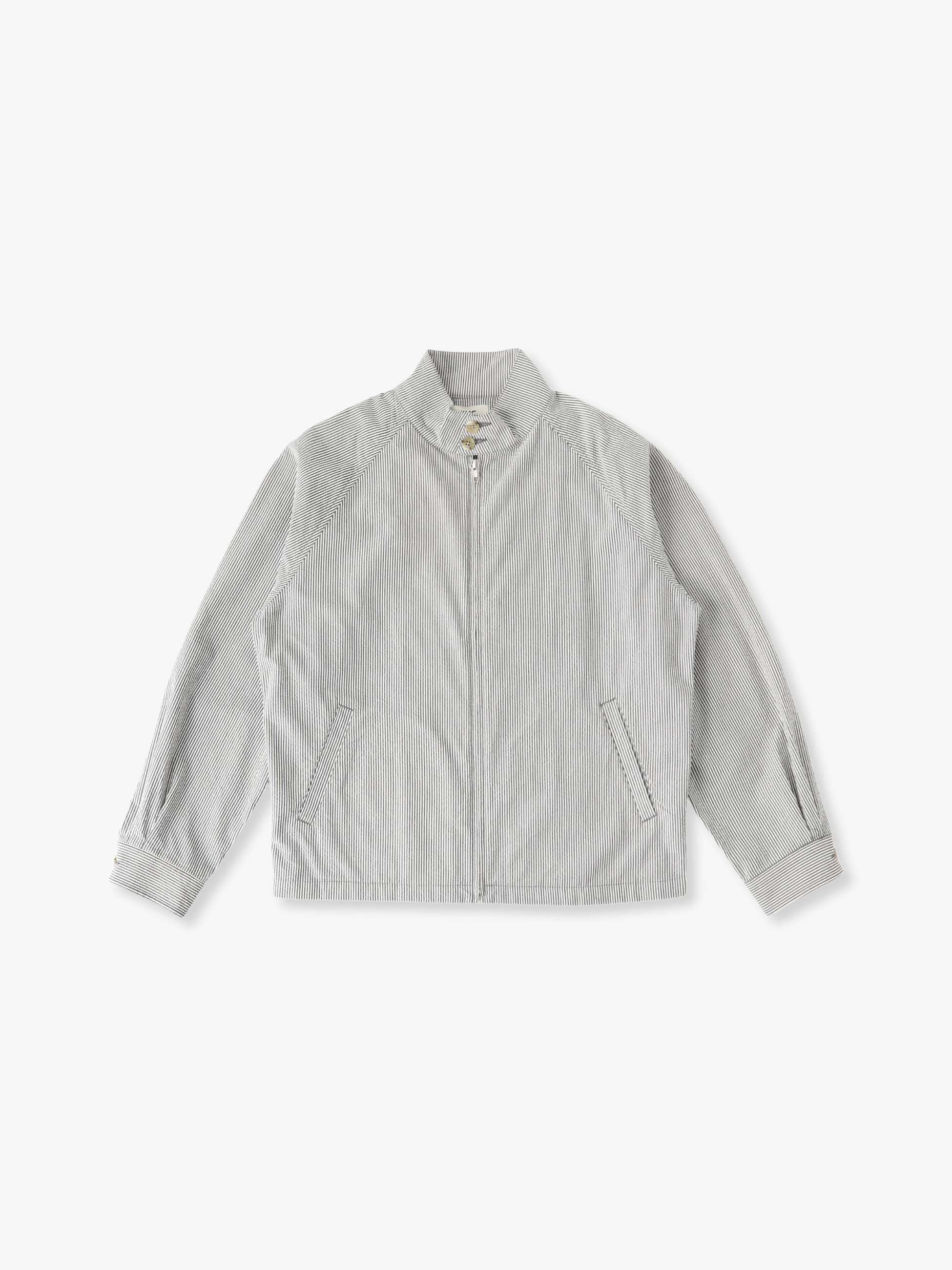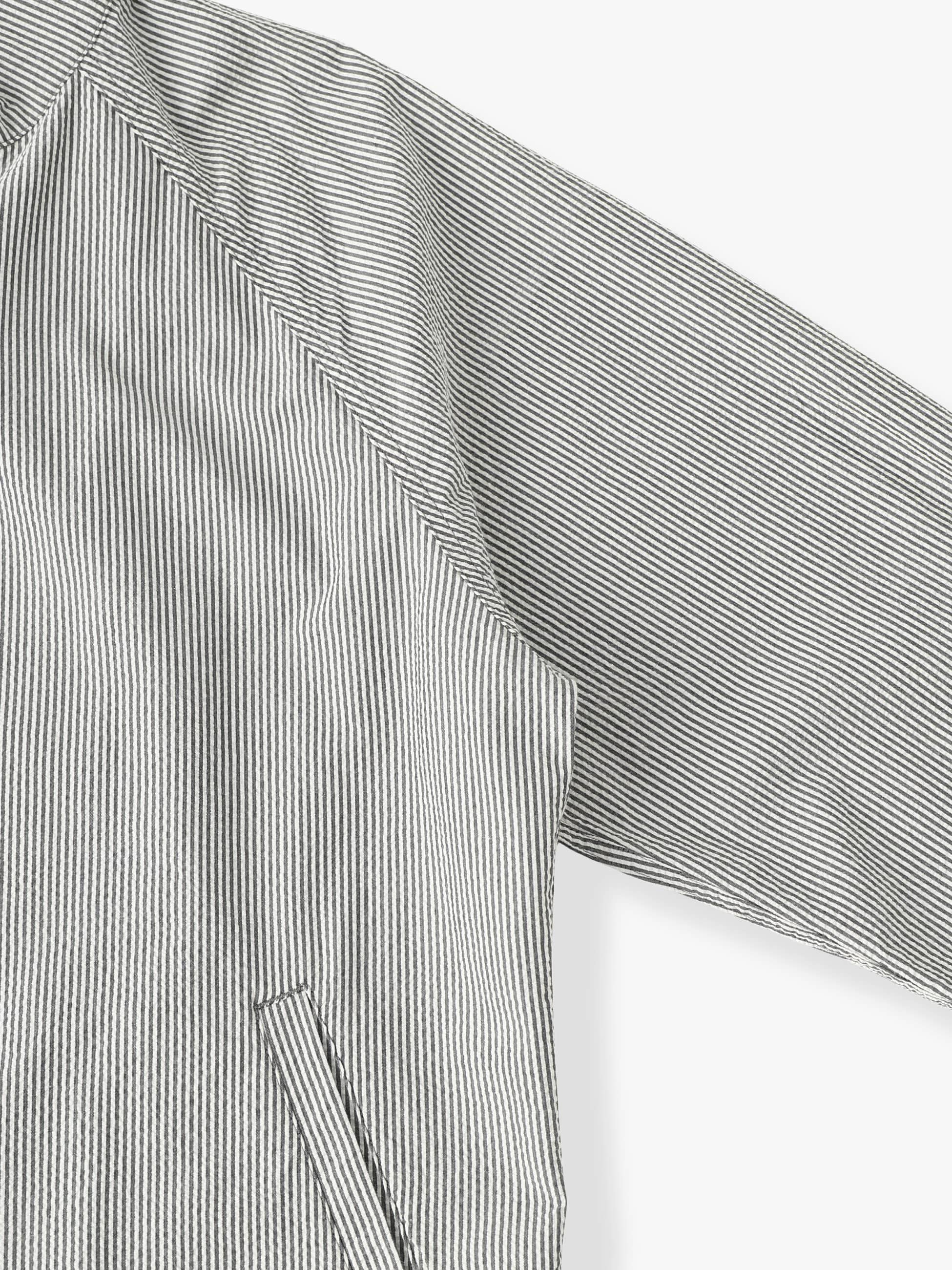- シアサッカー素材を使用したブルゾンは、優れた通気性と速乾性による清涼感のある着心地が特徴です。また、スタンドカラー仕様のミニマルなデザインや程よくゆったりとしたフィットは、様々なコーディネートに合わせやすく、汎用性の高い一着です。