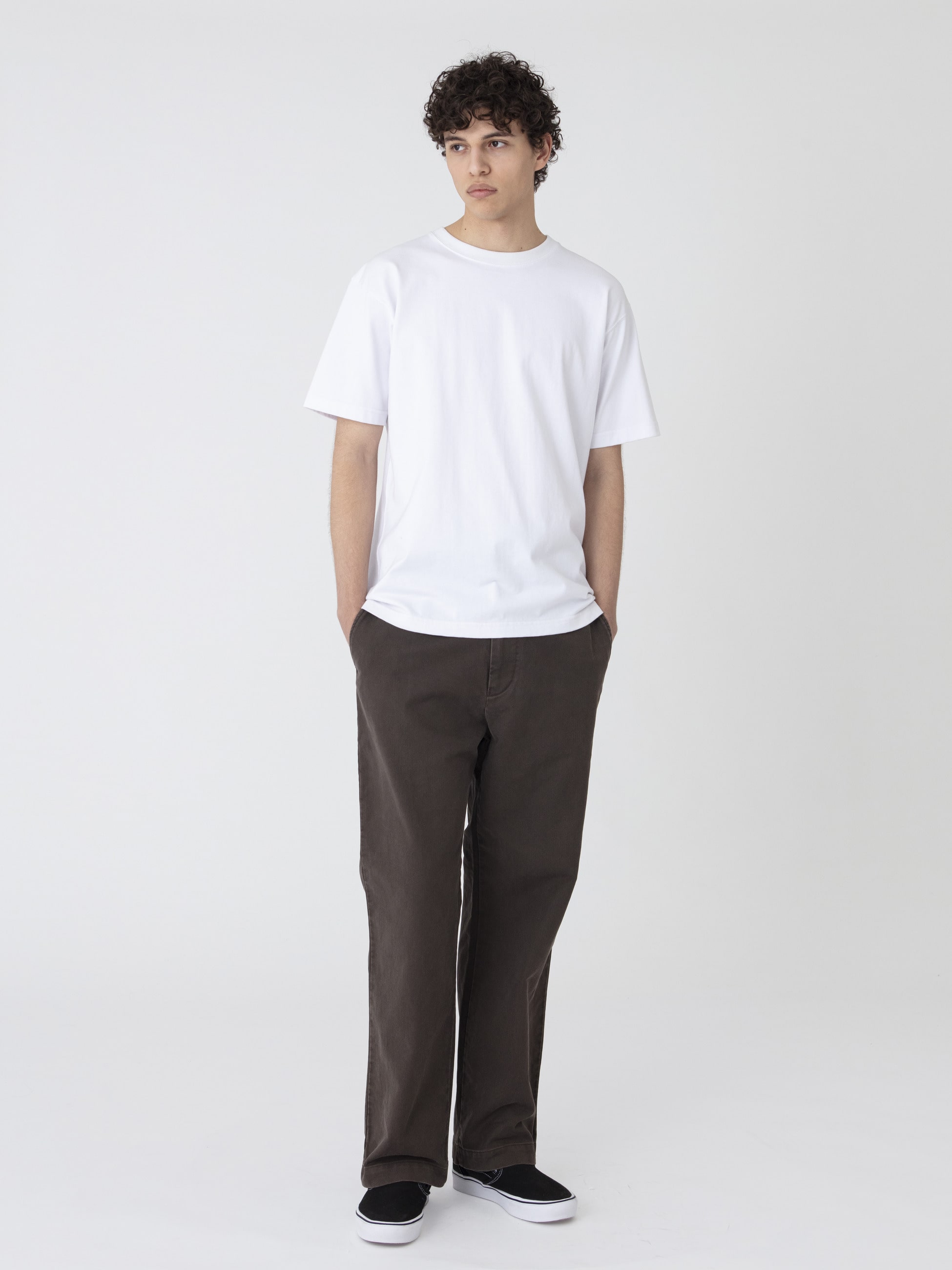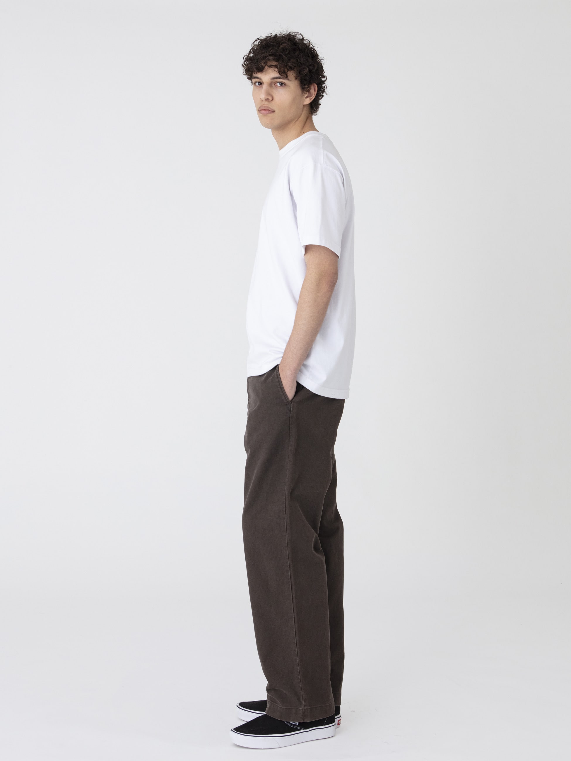 ミリタリージャーマンクロス素材を使用したパンツは、生地本来の畝と硫化染め加工によるヴィンテージのような風合いが特徴です。また、着回ししやすいベーシックなデザインとウォッシュ加工を施した柔らかな肌触りも魅力のひとつ。すっきりとしたレギュラーフィットは、様々なコーディネートに合わせやすく汎用性の高い一着です。