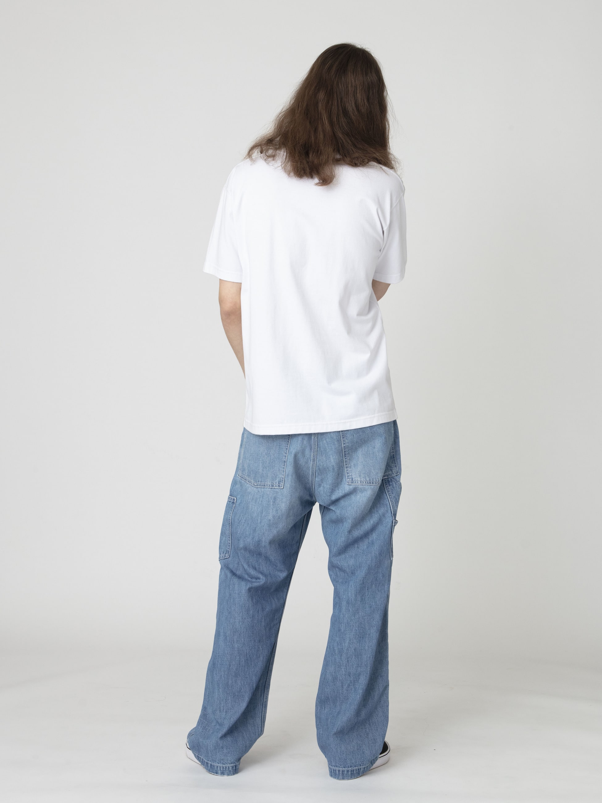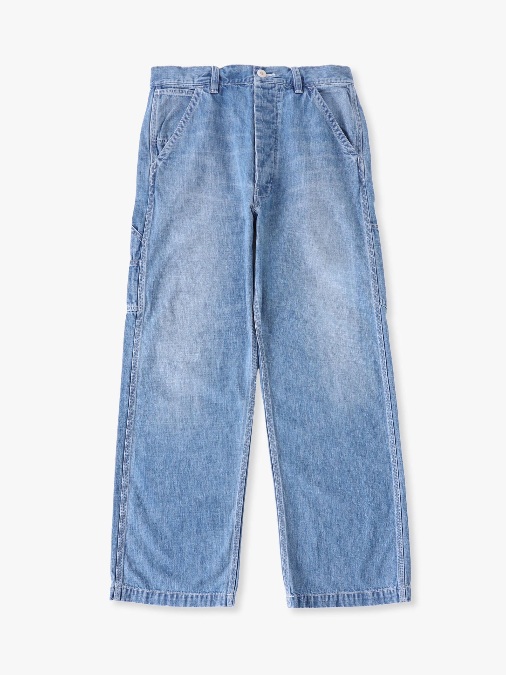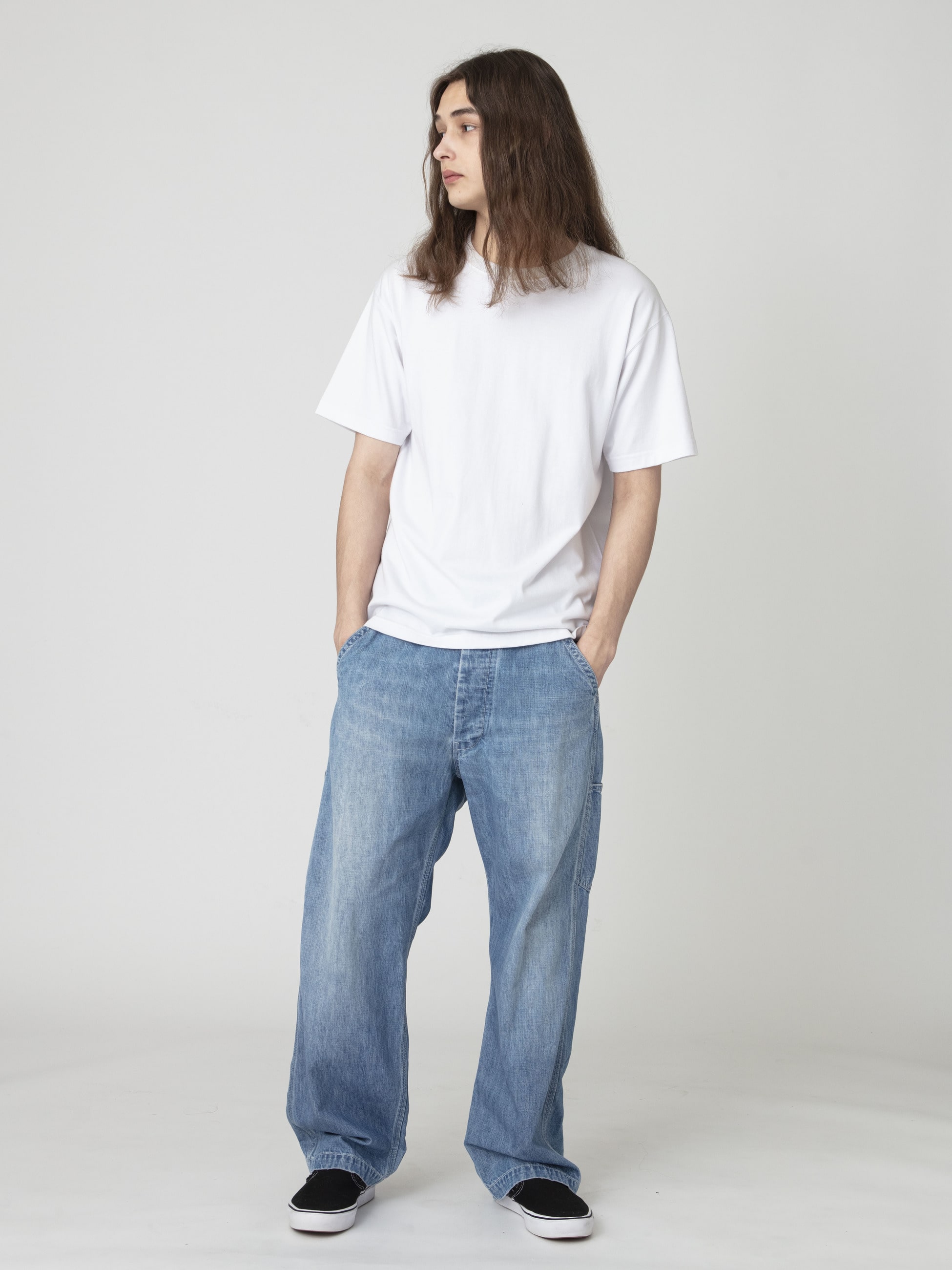 - 10オンスのミリタリーデニムを使用したデニムパンツ。太ももから膝周りにかけてかすり加工を施した、ヴィンテージのようなフェードした表情が特徴です。また、ライトオンスによる軽やかな着心地もポイント。ゆったりとしたワイドストレートフィットは、シンプルなコーディネートに取り入れやすく、汎用性の高い一着です。