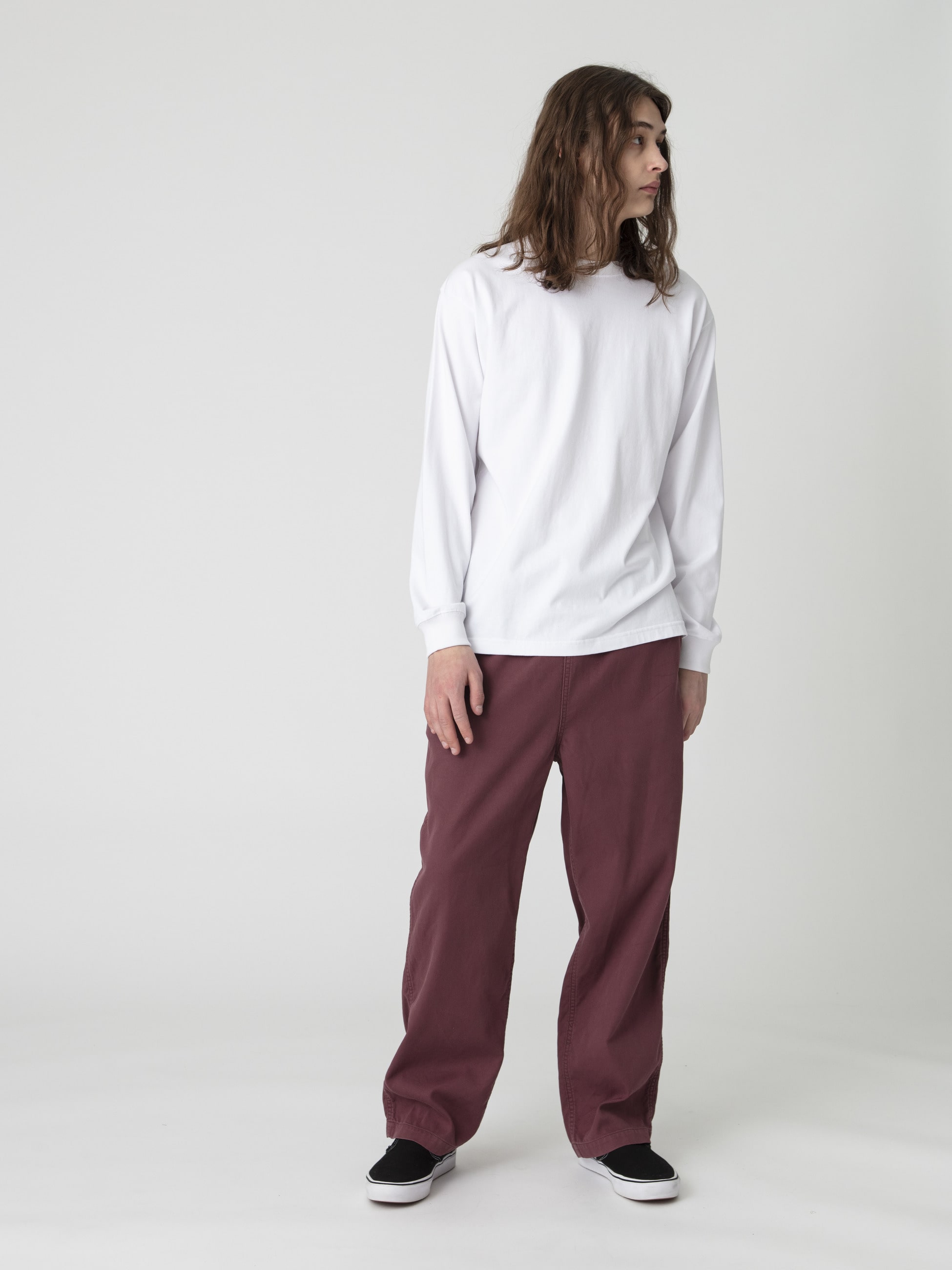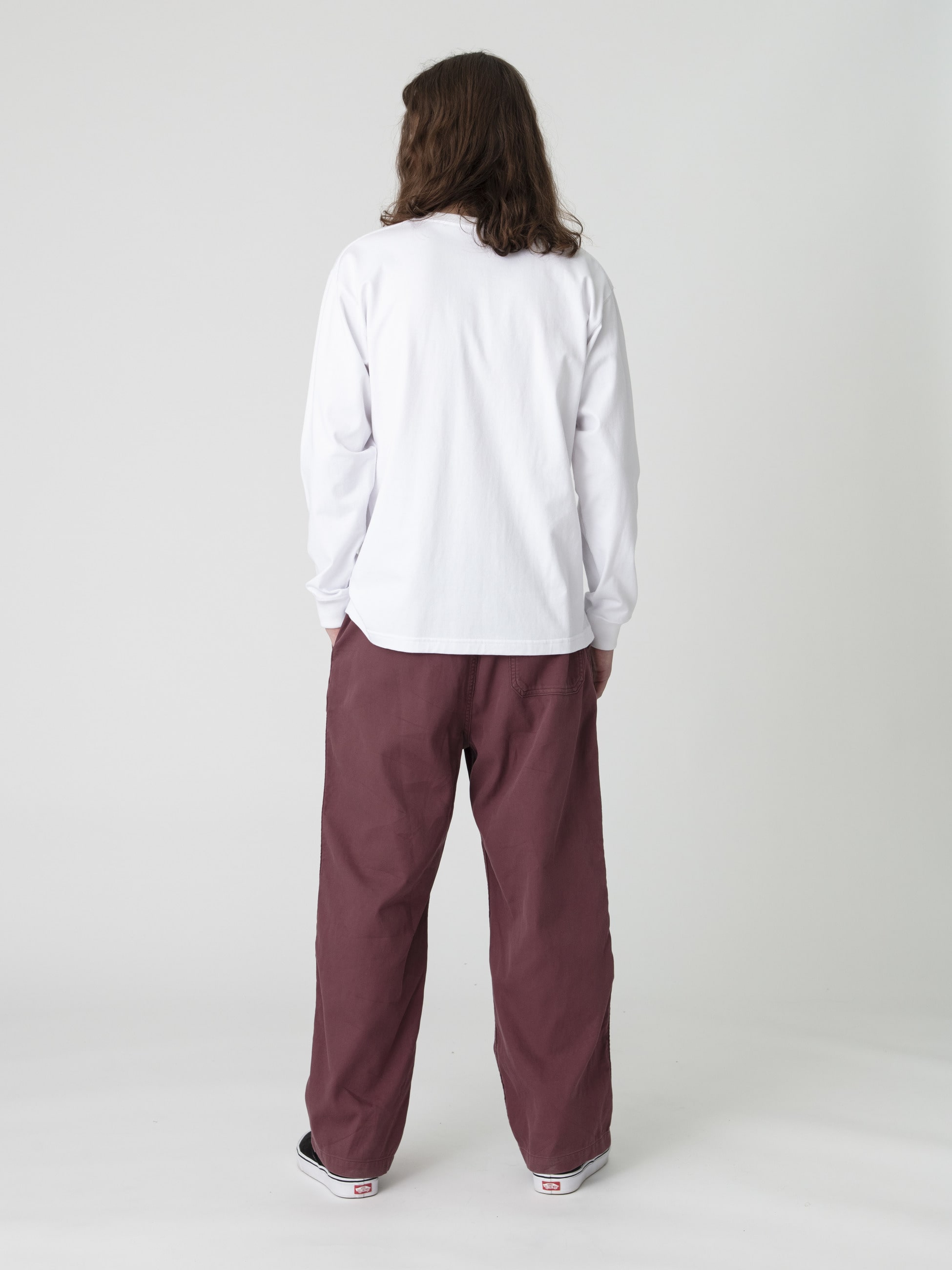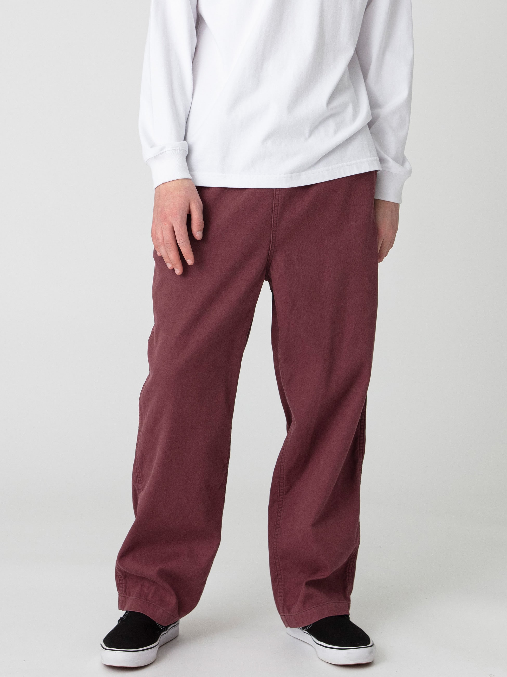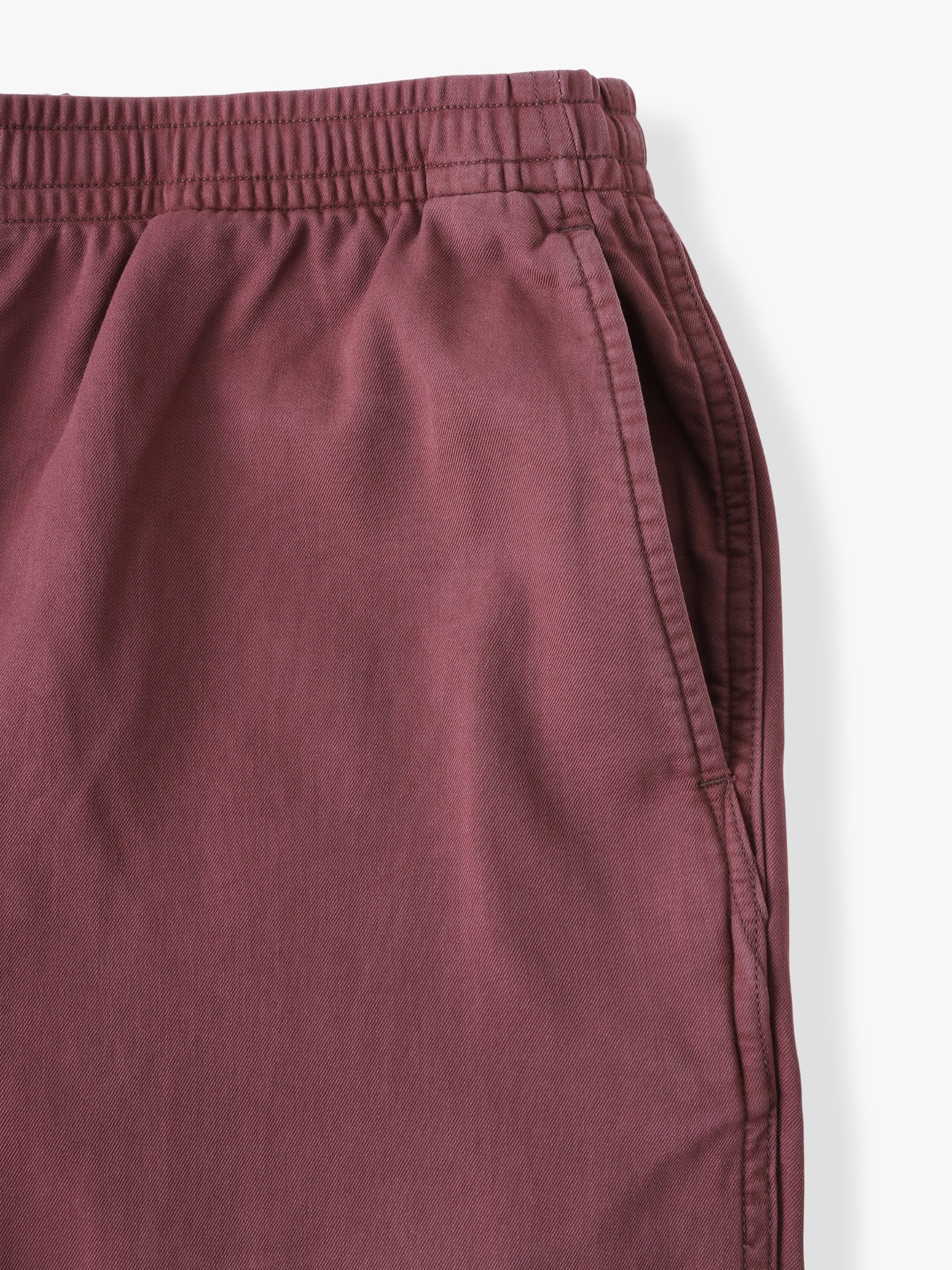 - 2重織りツイル素材を使用したパンツは、微起毛加工と硫化染め加工を施したヴィンテージのようなフェードしたカラーリングが特徴です。また、細番手糸を2重織りにした柔らかな肌触りとソフトな風合いも魅力のひとつ。上品な落ち感とゆったりとしたフィットは、気温の高い時季でも活躍する一着です。