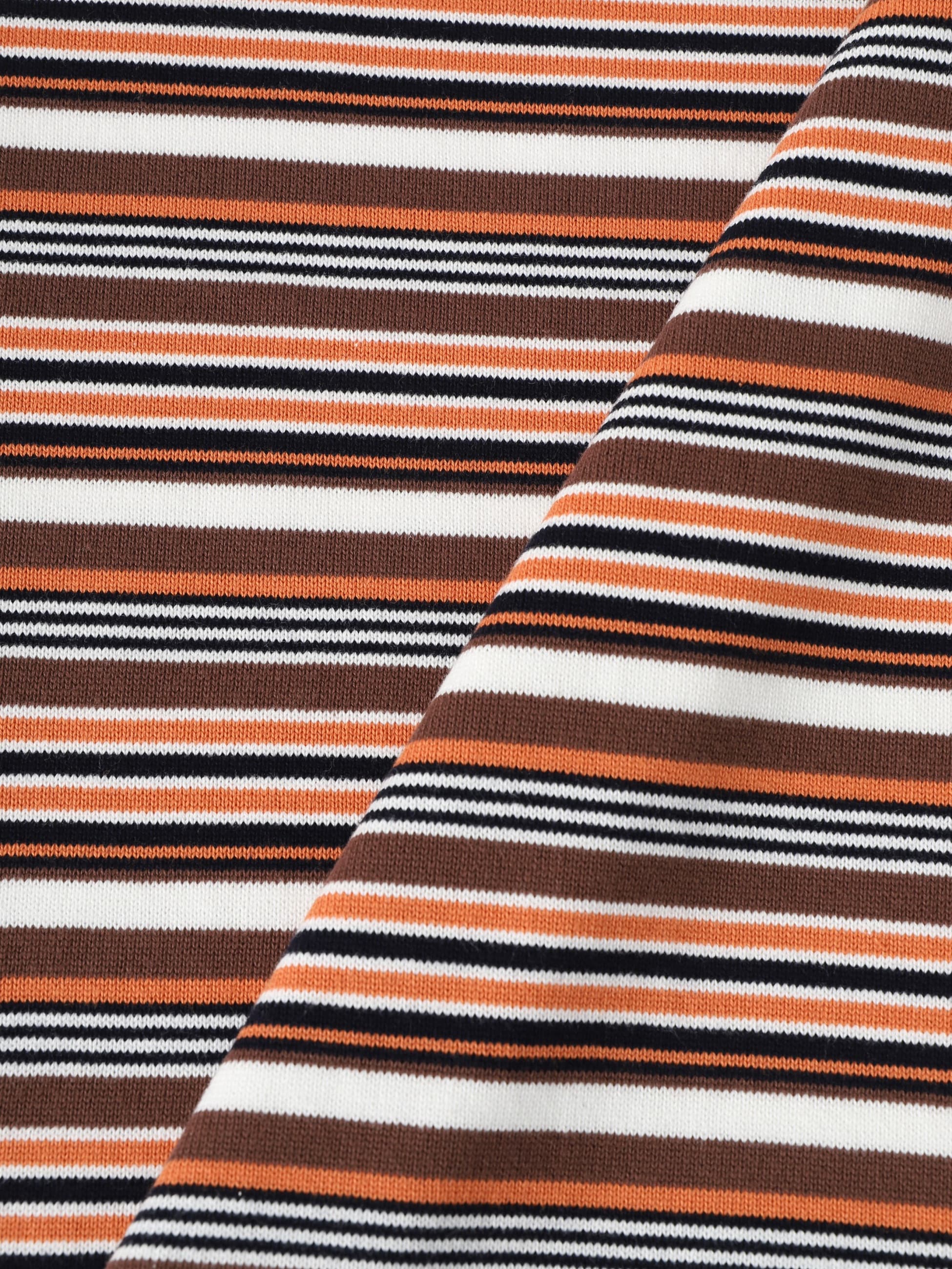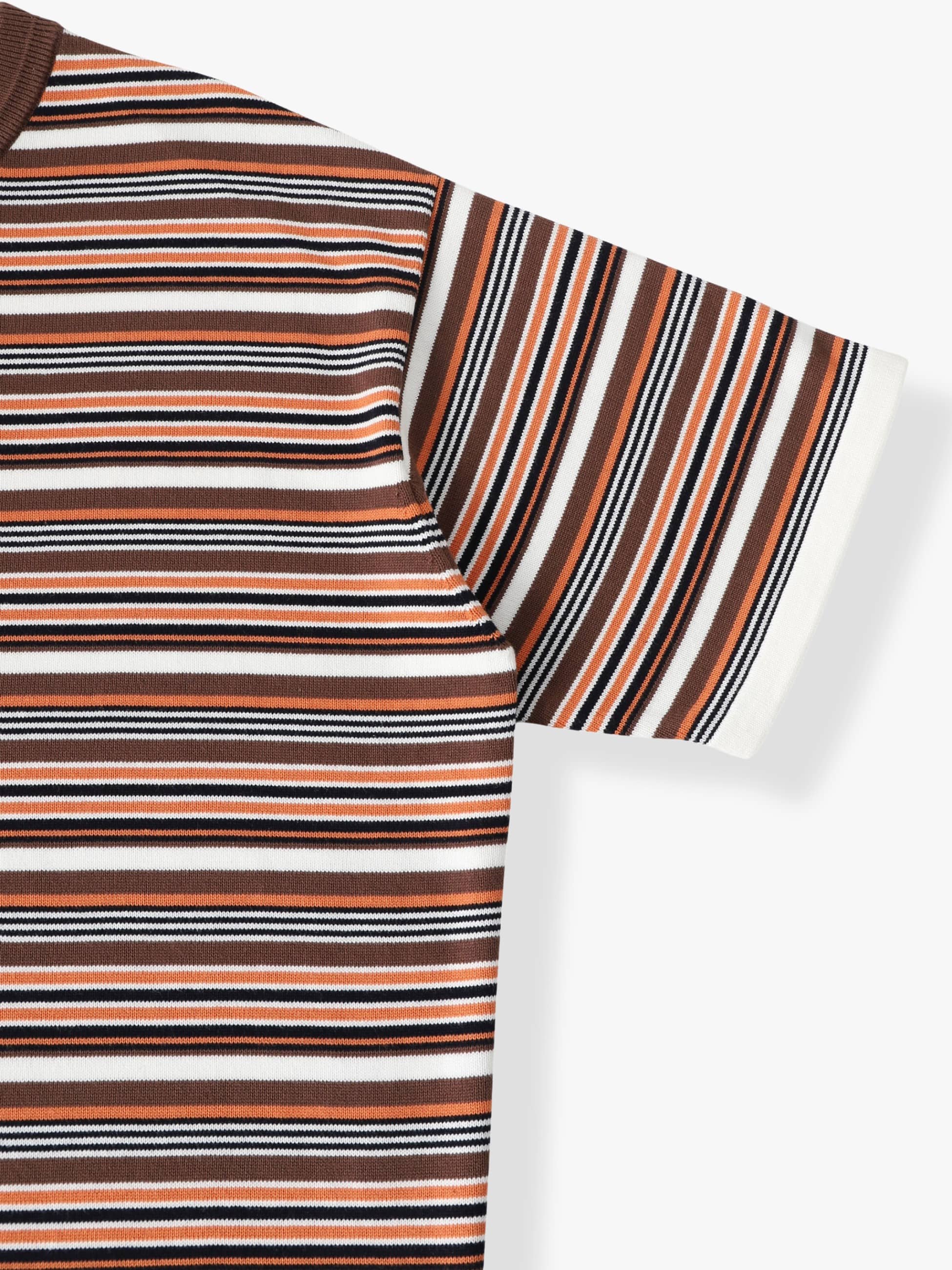 - コーマコットンを使用した程よく肉厚な編地のニットTシャツ。さらっとした柔らかな肌触りとニット特有の上品さが特徴です。また、着回ししやいベーシックカラーとbrownカラーはレトロなサーフィンムービーをインスパイアした、オリジナルボーダーによる配色もポイント。ゆったりとしたフィットは、デイリーユースしやすい一着です。