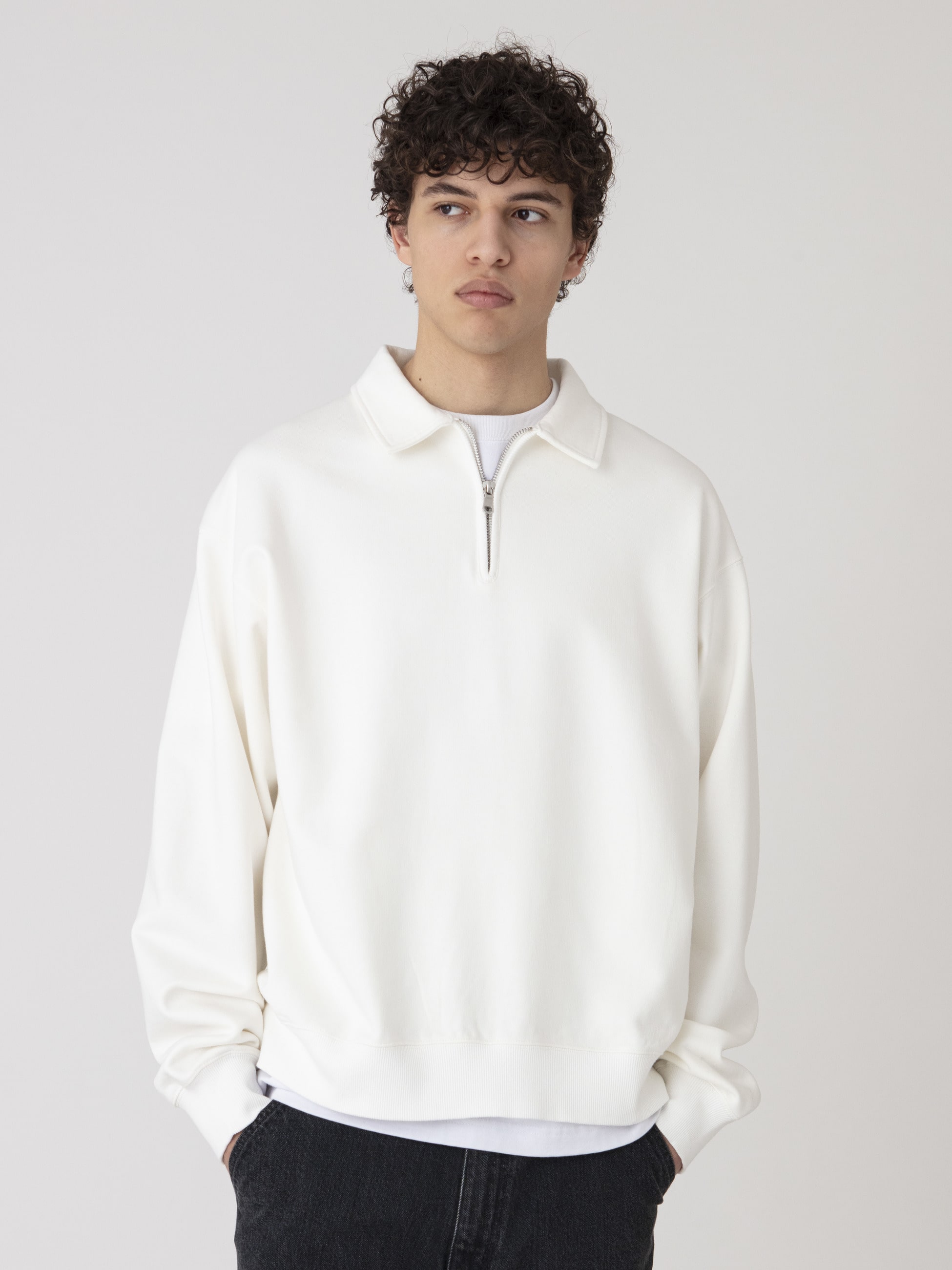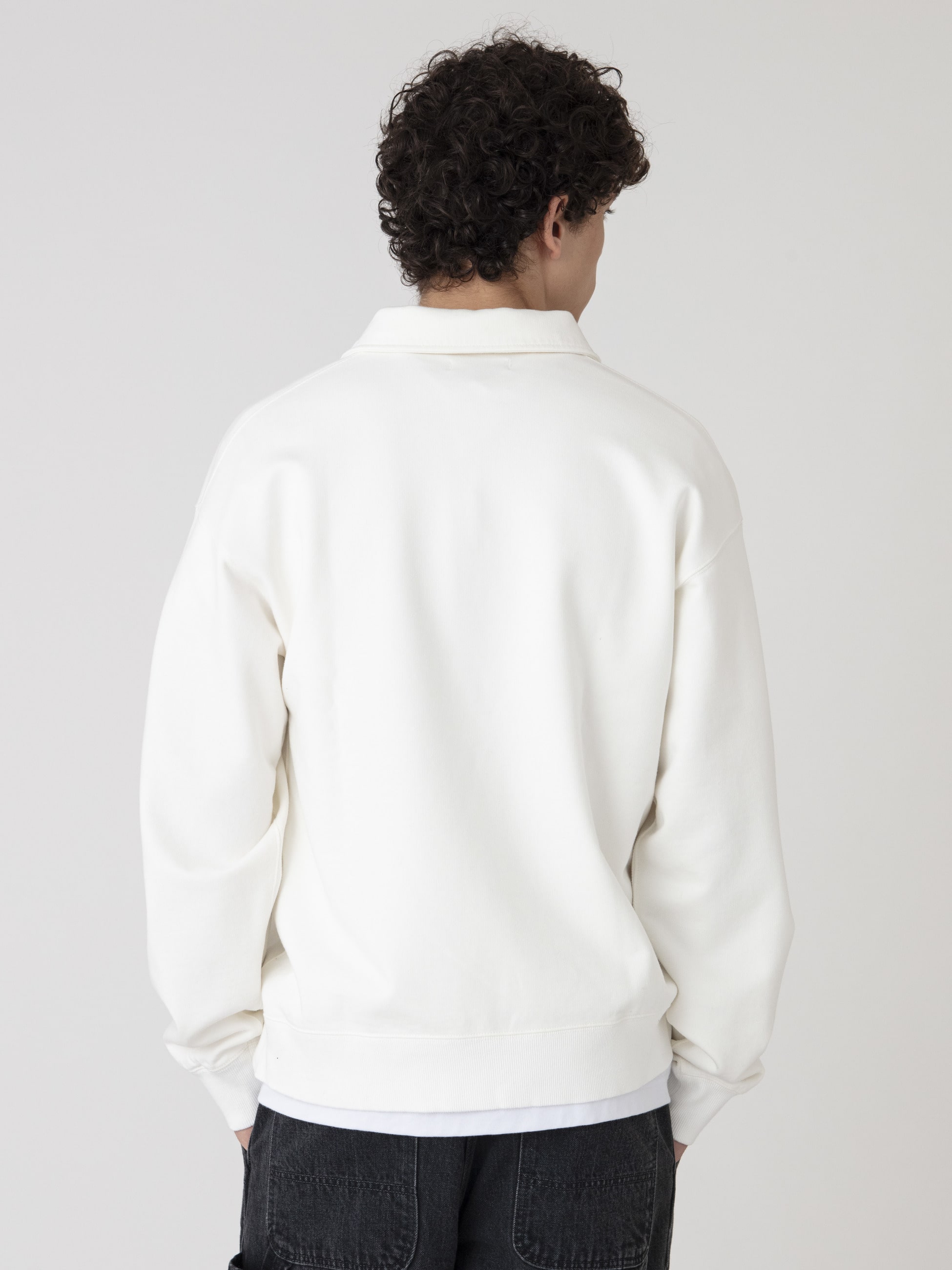 - コンパクトな目面の裏毛素材を使用したスウェットプルオーバー。特殊なシルケット加工を施すことで生まれる、毛羽が少なく滑らかな肌触りが特徴です。また、様々な時季で活躍する程よく薄手の生地は、柔らかく軽やかな着心地を実現しています。身幅にゆとりのあるゆったりとしたフィットは、デイリーユースしやすい一着です。