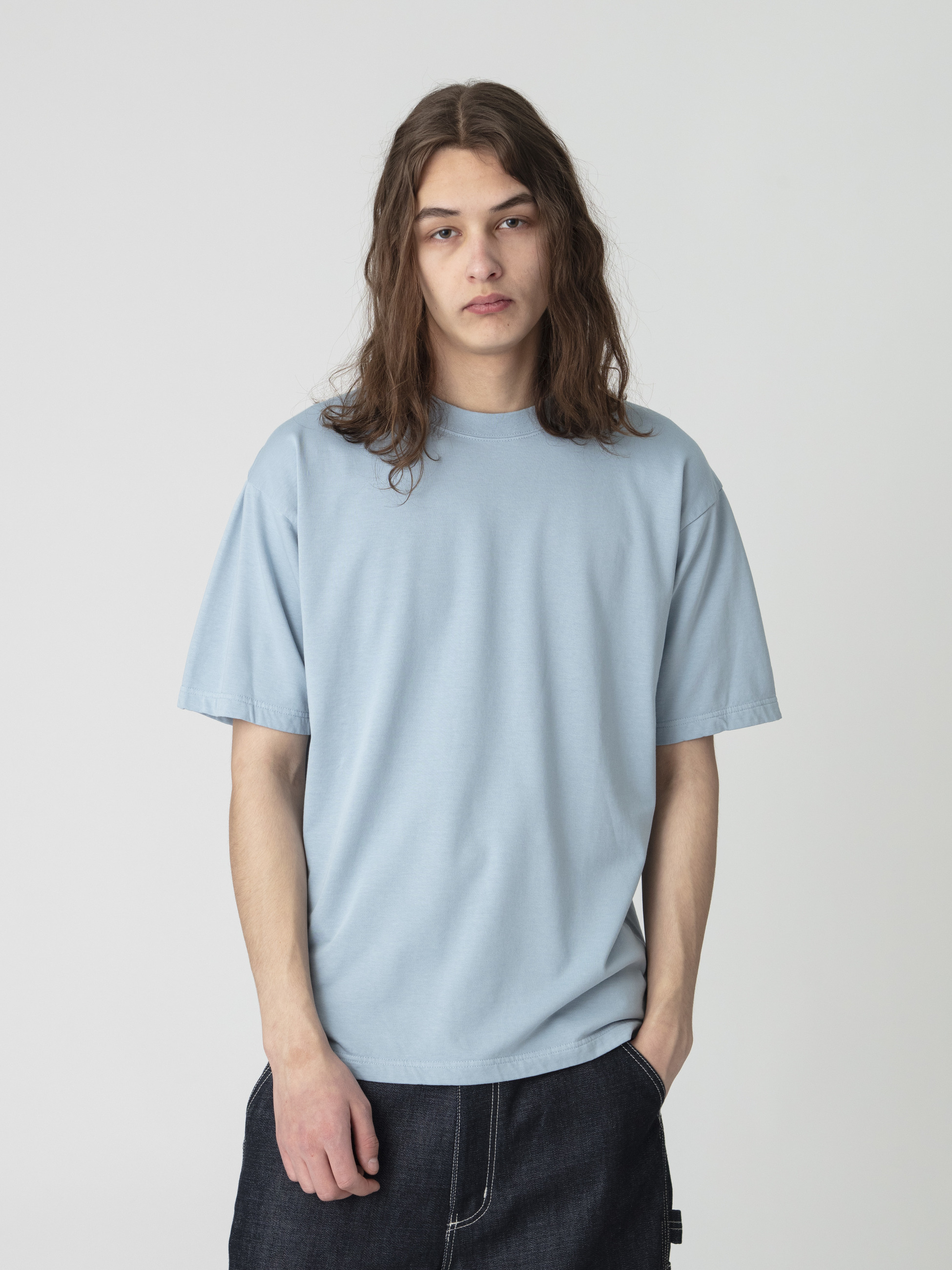 - 程よく厚みのあるミニ裏毛素材のTシャツは、柔らかな肌触りと裏地のミニ裏毛素材による肌あたりの良さが特徴です。また、ベーシックカラーとペールトーンのカラー展開による着回しのしやすさもポイント。ゆったりとしたフィットは、デイリーユースしやすい一着です。
