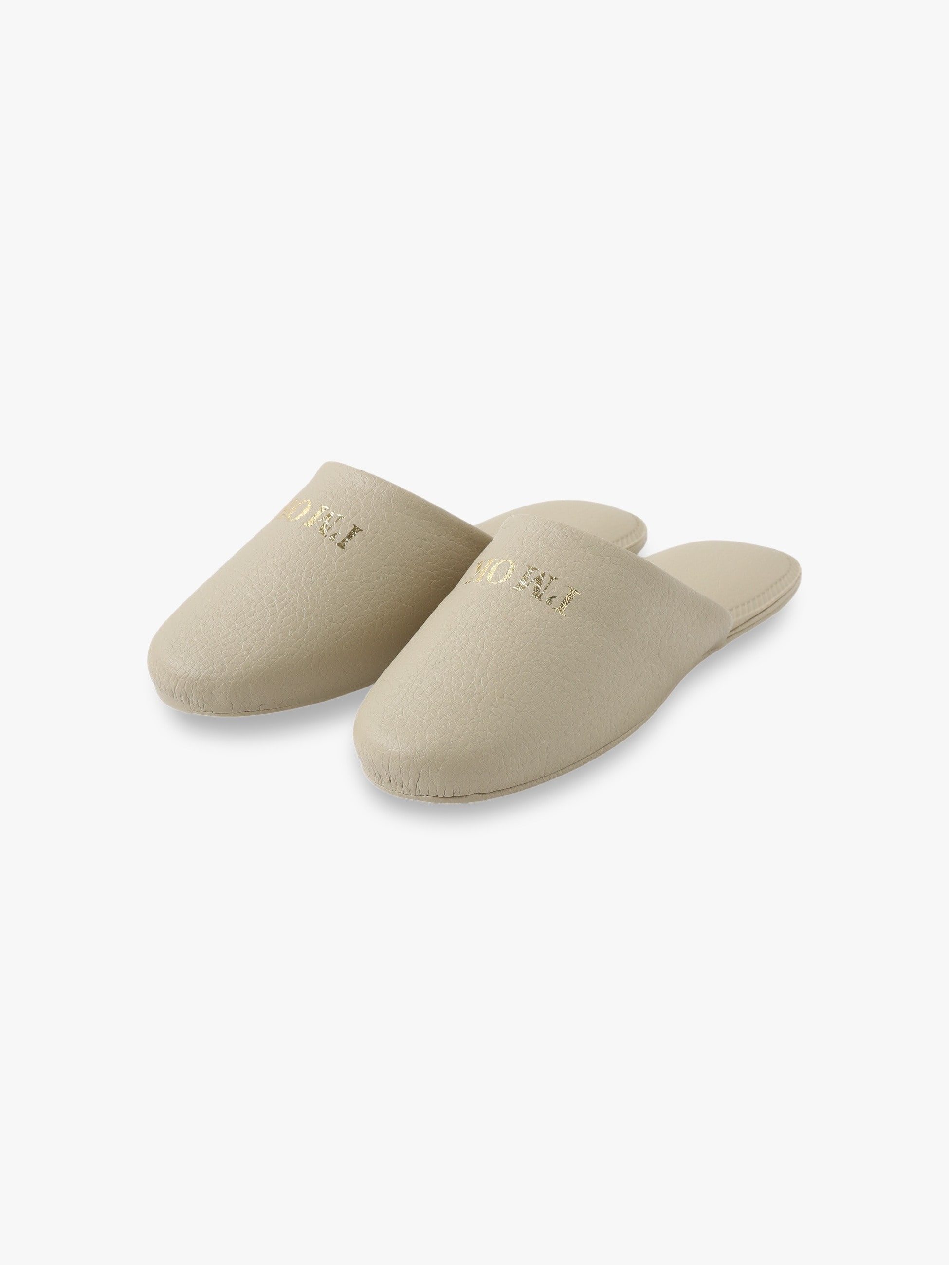 - どこか懐かしく親しみを感じるデザインのI'M OKオリジナルのスリッパは、東京の下町で古くからスリッパを作り続けているメーカーで製作しています。ロゴは機械を使って金の箔を抜き、フォントはあえて古くから使い続けているものをそのまま使用しています。今の時代にもぴったりな抗菌仕様も嬉しいポイント。男女問わず使用できるフリーサイズなので、ゲスト用としてもおすすめです。Size:Free(全長約26㎝)