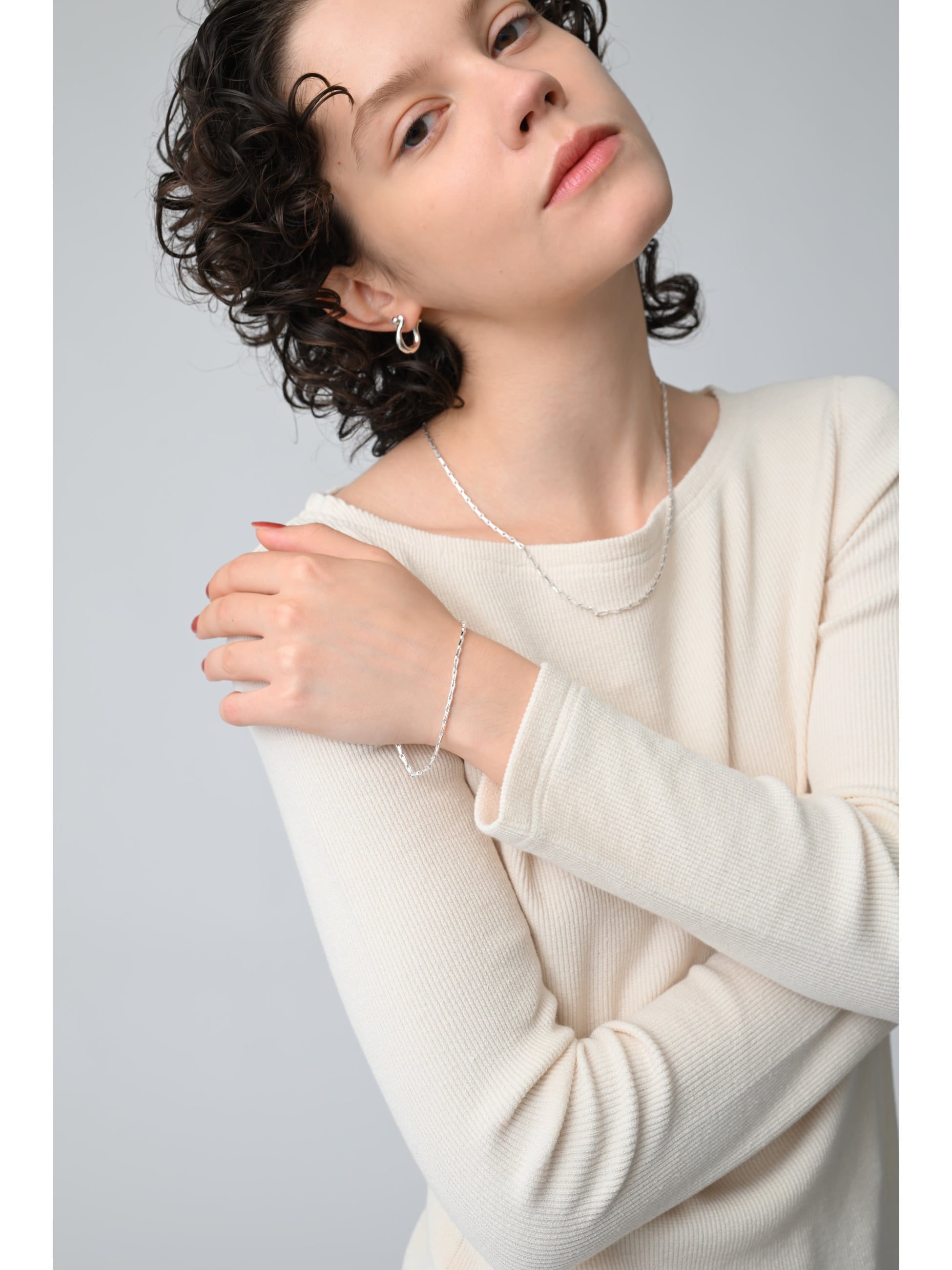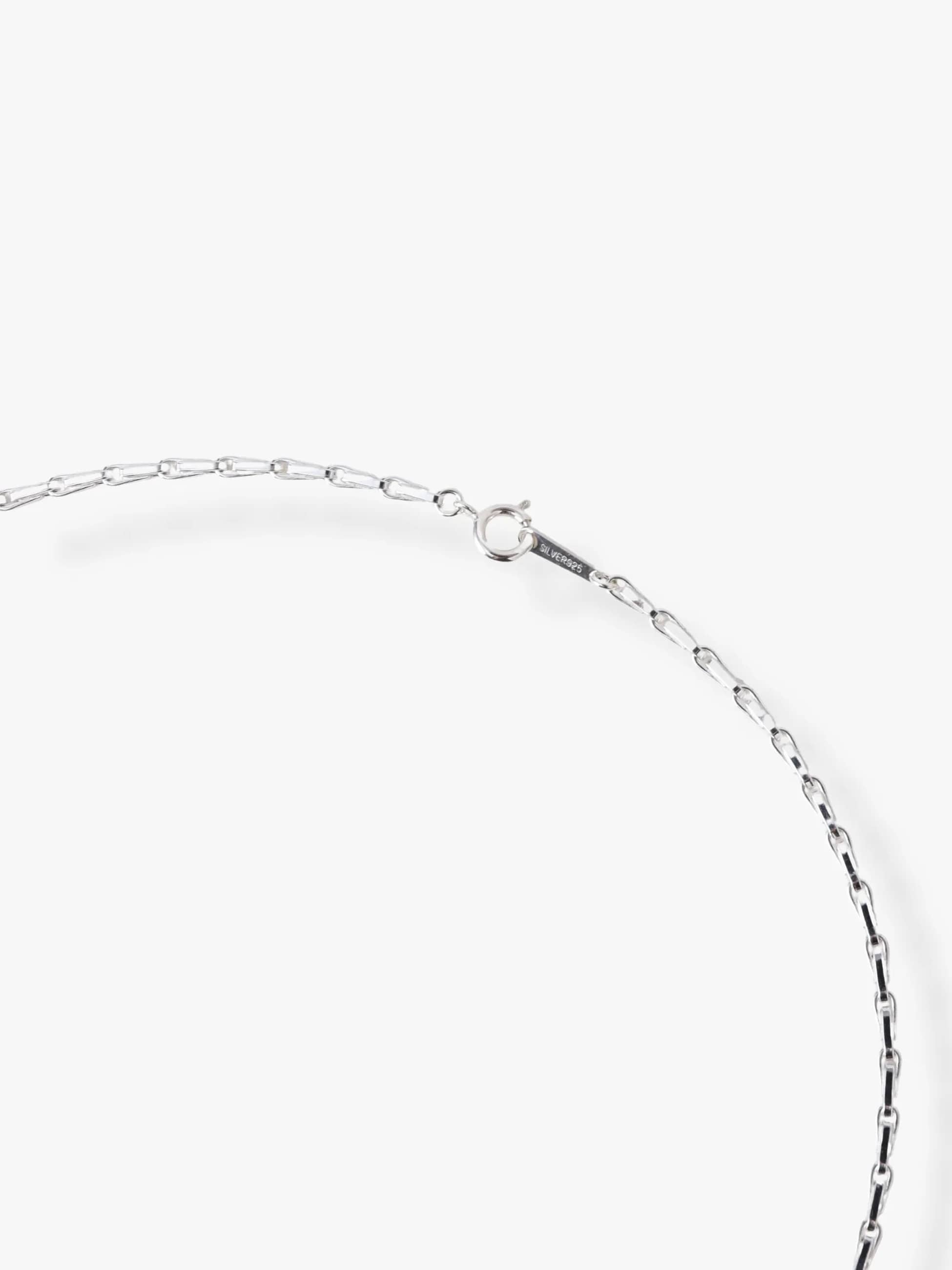 大麦の粒を思わせる美しいフォルムが特徴のチェーンネックレス。シンプルながら程よい存在感があり、単体で着けても重ね付けしてもコーディネートのポイントになります。襟付きシャツやスウェットなど、さまざまなスタイルに自然に馴染むデザインで、日常の装いにさりげなく上品さをプラス。程よい重みとシャープな輝きがスタイルを引き締め、ギフトとしても喜ばれる、洗練されたネックレスです。