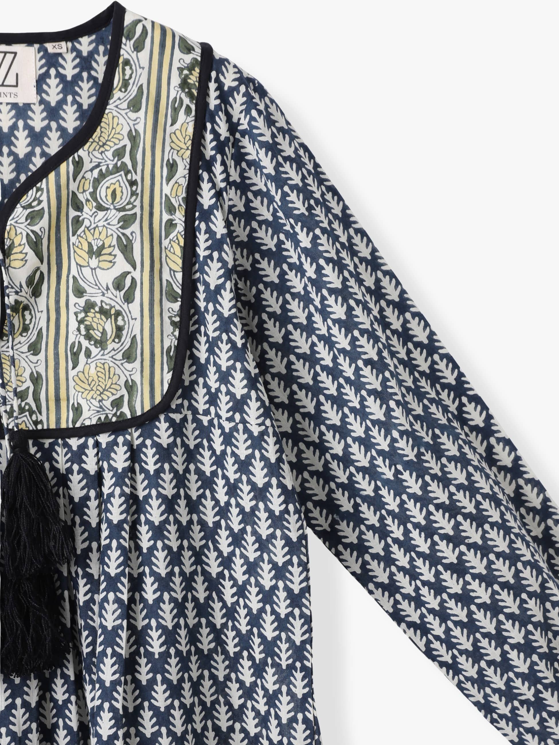 SZ BLOCKPRINTSで毎シーズン人気のKittyドレスは、大胆な柄切り替えが遊び心たっぷりで、華やかなプリントが女性らしさを演出します。SZ BLOCKPRINTSらしいオリエンタルな雰囲気が堪能できるデザインで、デイリーユースはもちろん、リゾートやビーチスタイルにもおすすめです。
