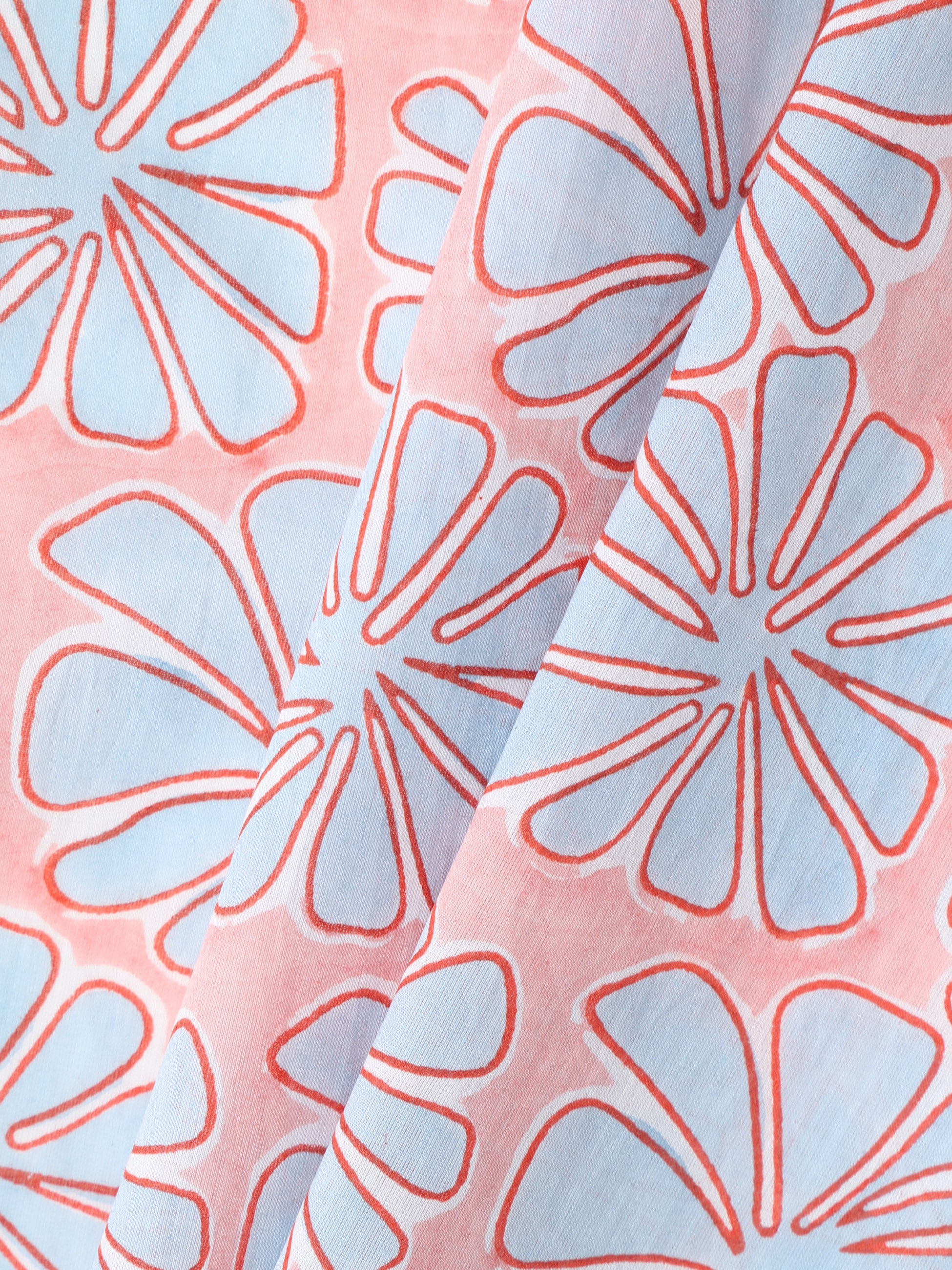 この製品は、インド綿にハンドプリントをほどこしているため、1点1点プリントの表情に個体差があり、生地に多少織りキズや汚れ、プリントのかすれ、にじみ、色むらなどがみられます。
