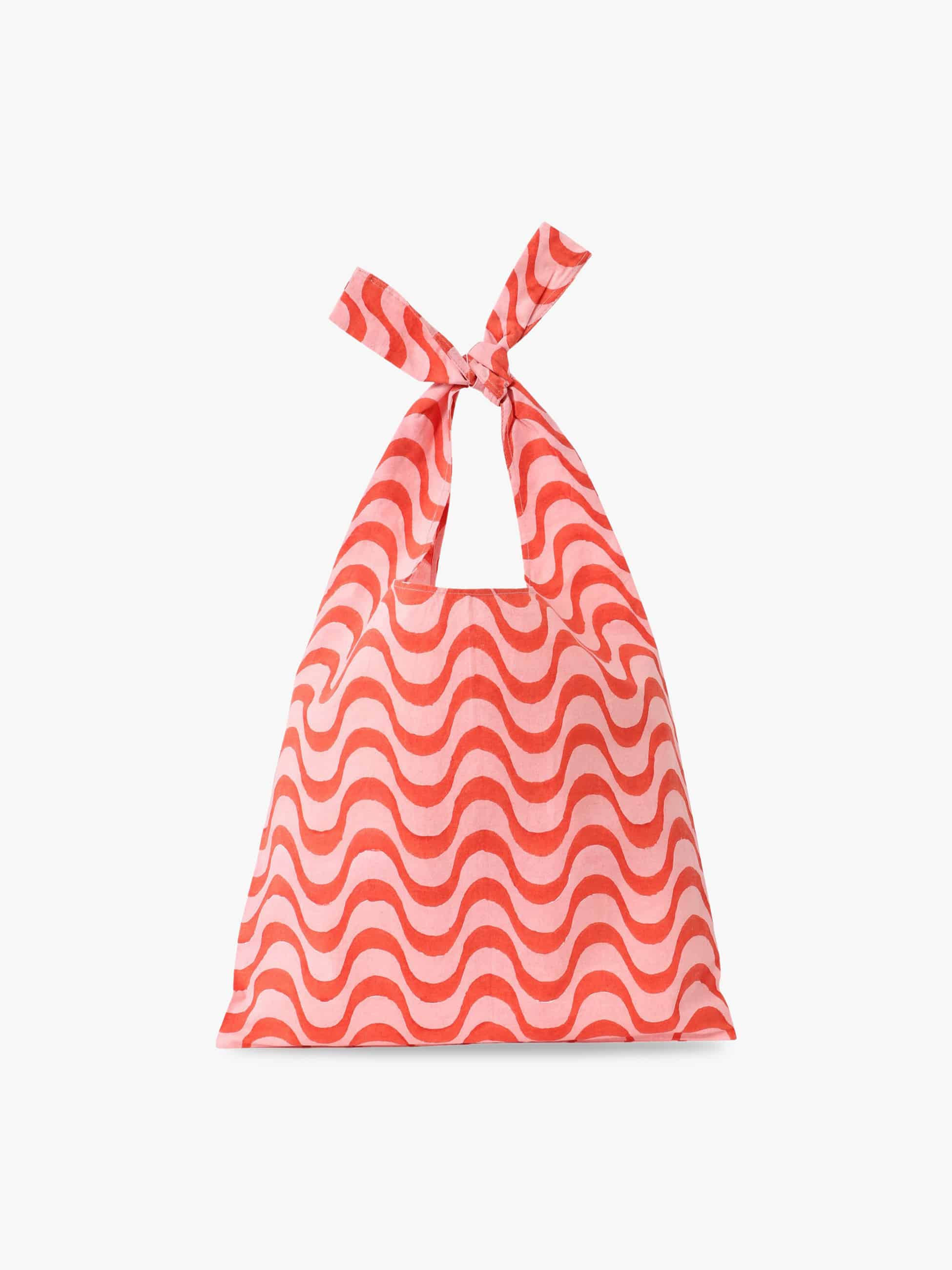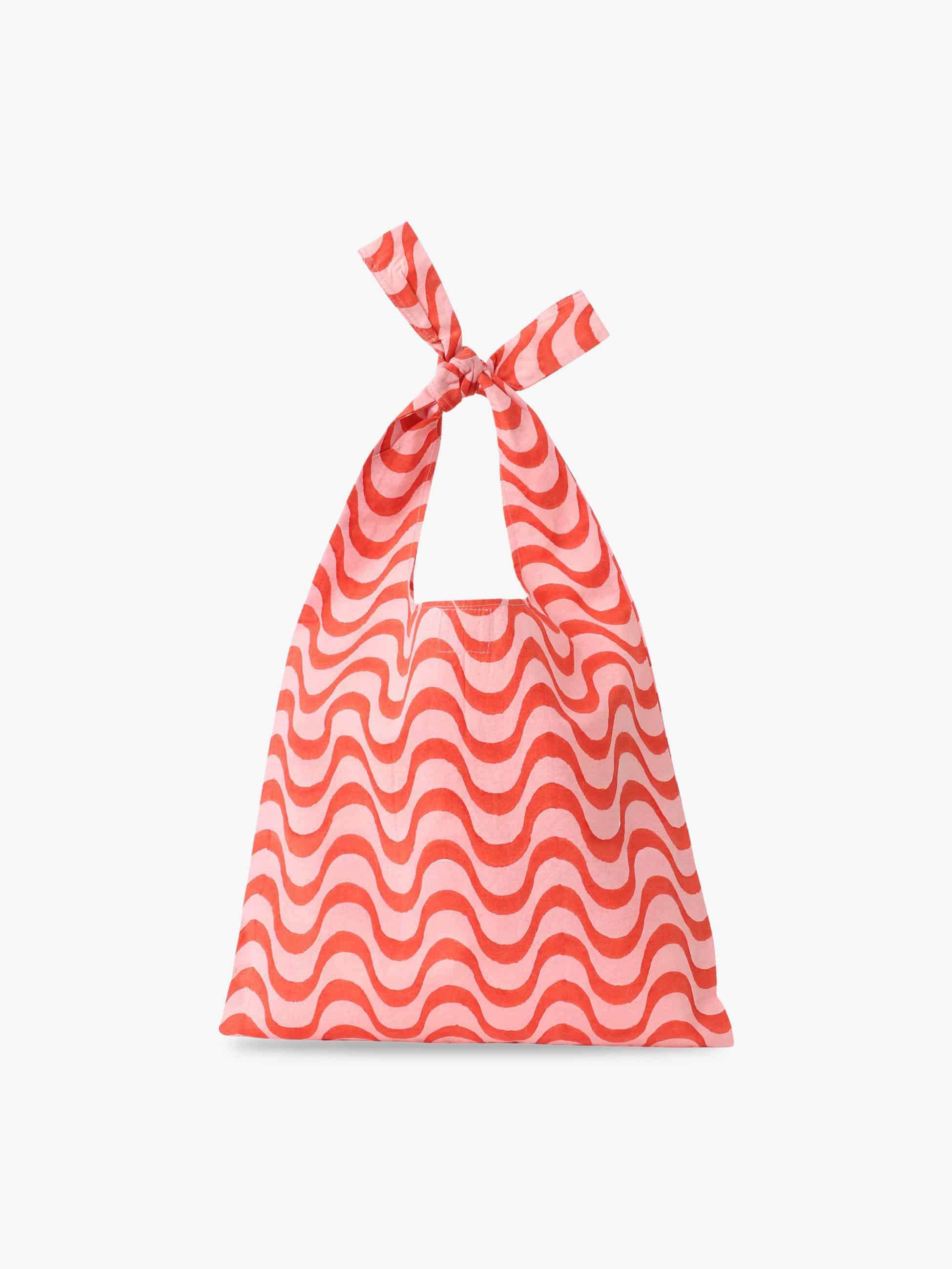 - ウェイビープリントがコーディネートのアクセントになるノットバッグです。シンプルな装いにも馴染みやすく、コンパクトながら必要な荷物をしっかりと収納することができます。日常使いに取り入れやすいデザインに仕上げています。