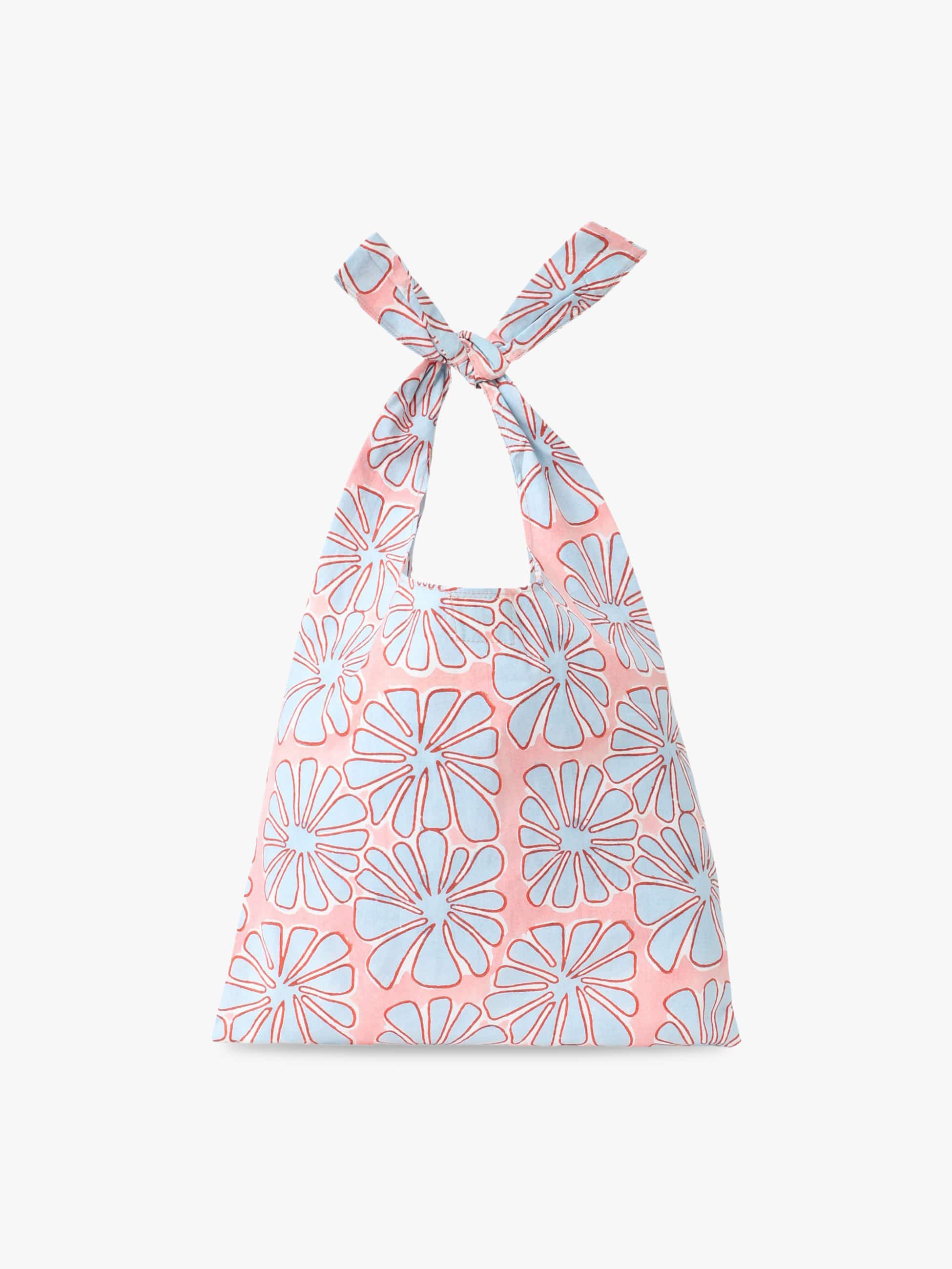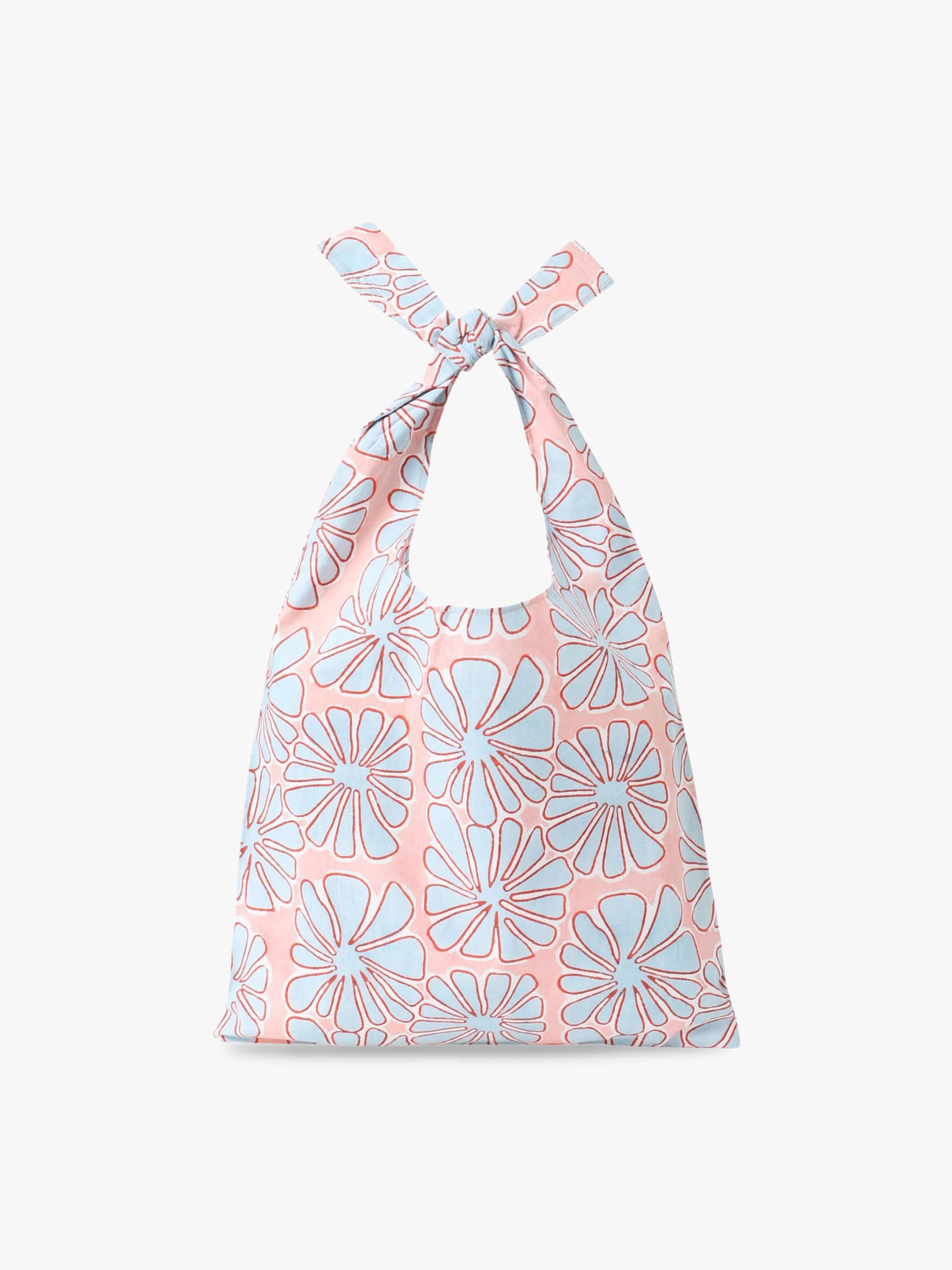 トロピカルプリントが印象的なノットバッグです。結び目のデザインがアクセントになり、コーディネートにさりげないポイントを添えます。軽やかな素材感で持ちやすく、必要な荷物をしっかりと収納ができるサイズです。日常使いからお出かけまで幅広いシーンで便利にお使いいただけます。