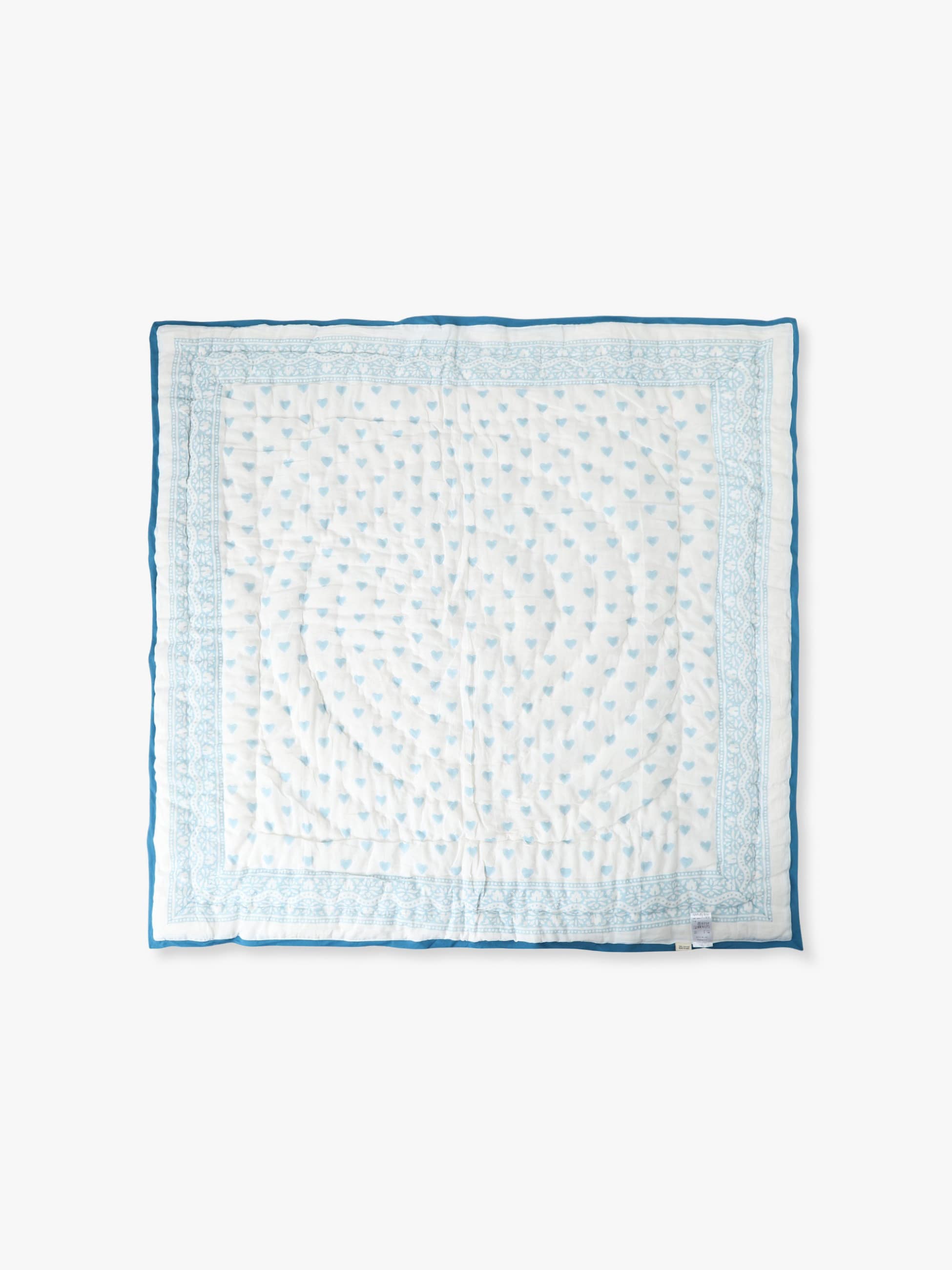 華やかなフラワーモチーフとキュートなハートプリントを楽しめるリバーシブルデザインのベビーブランケットです。やわらかく中綿入りのふんわりとしたコットン素材で、快適な使い心地に仕上げています。ベビーのお昼寝やリラックスタイムのひざ掛けとして、インテリアのアクセントとしても幅広くお使いいただけます。